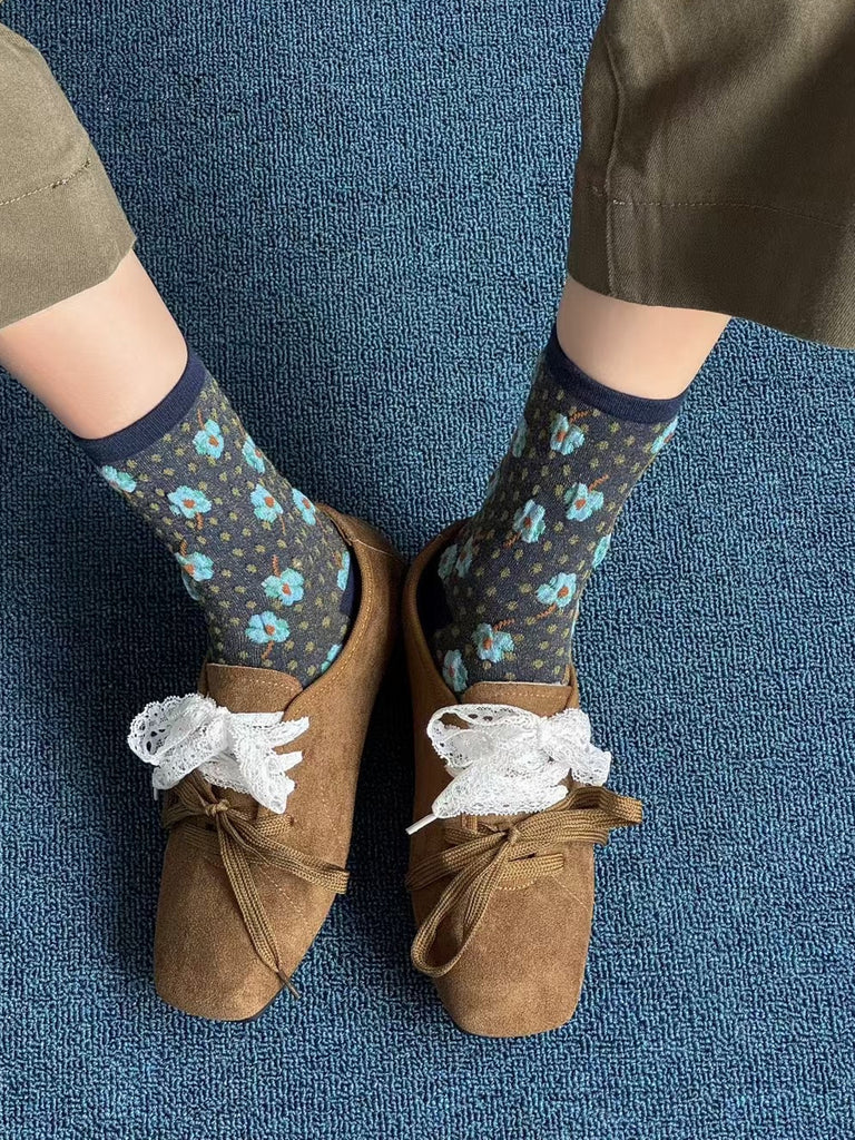 5 זוגות גרבי כותנה פרחוניים אומנותיים לנשים בסגנון סתיו