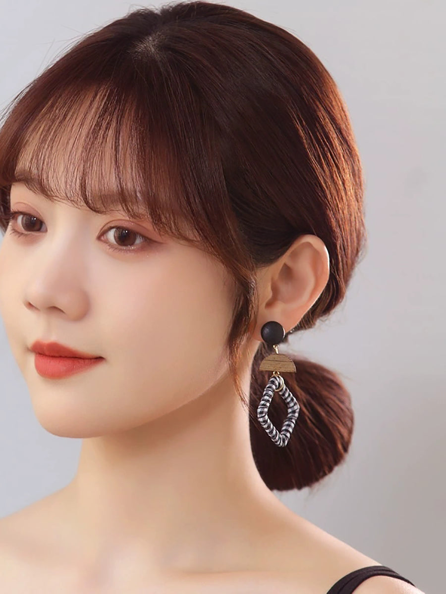 עגילי כסף מרובעים מבד עץ אתני לנשים מכסף 925