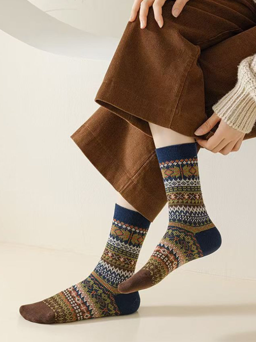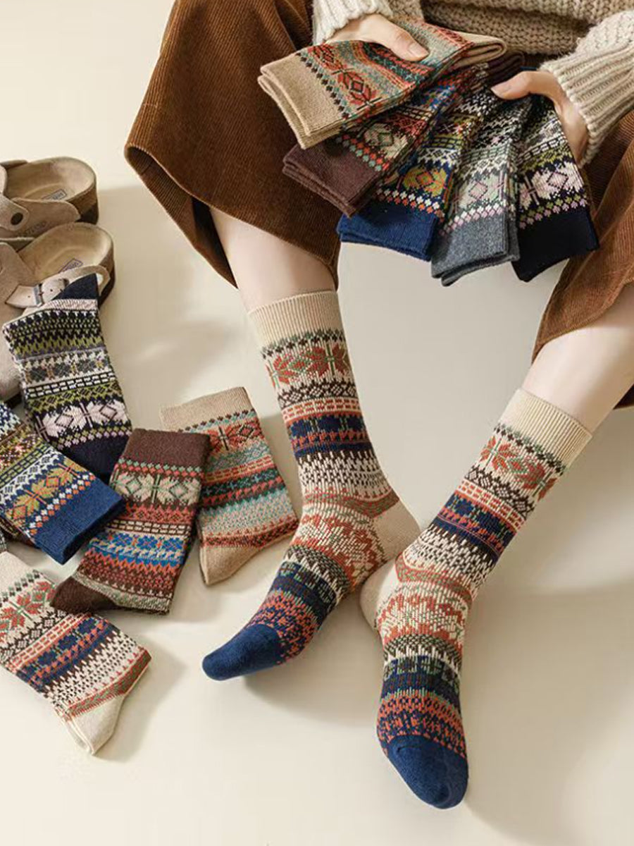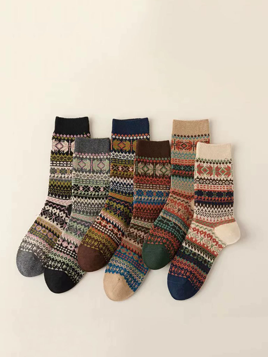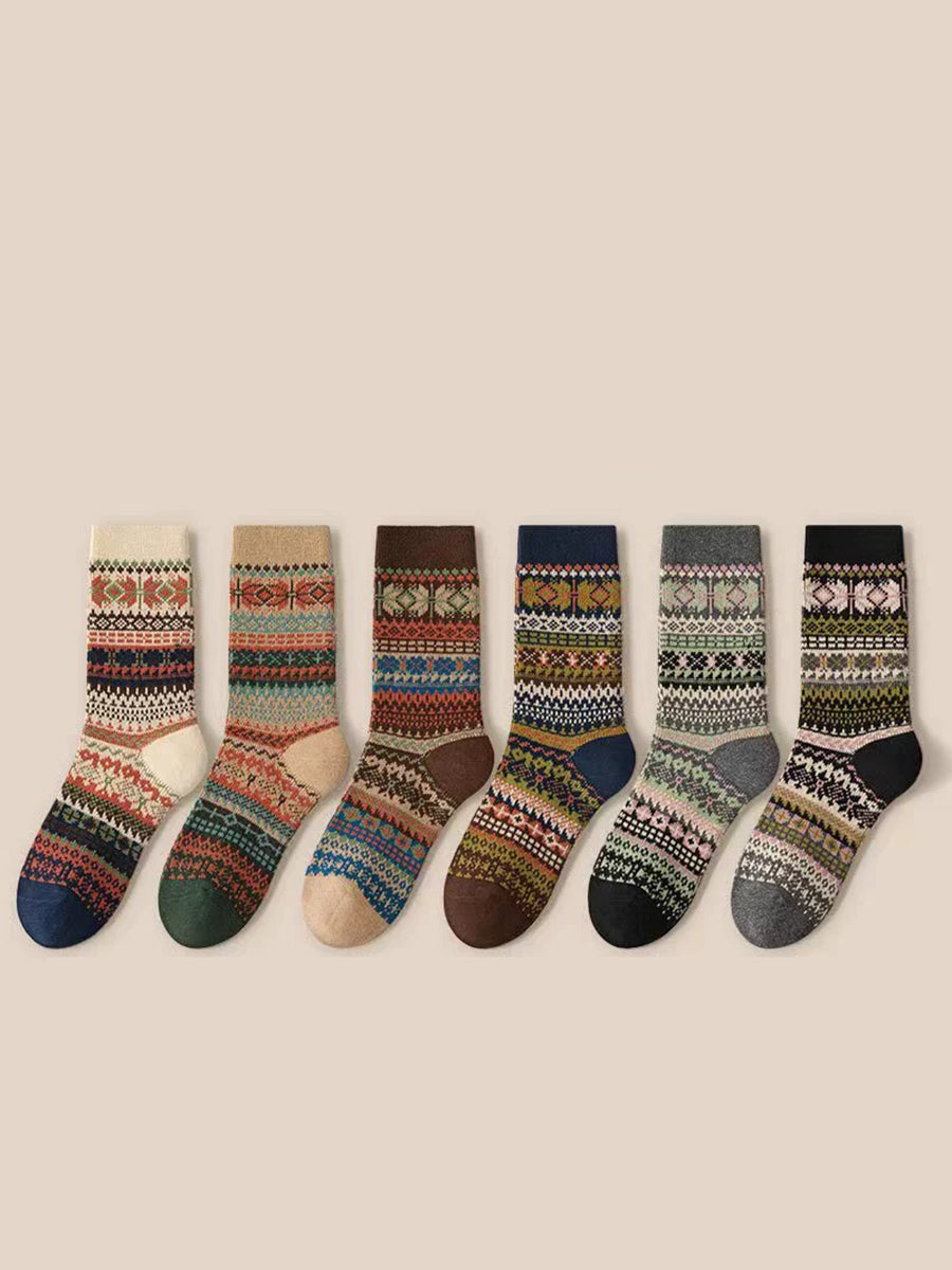6 זוגות גרבי כותנה וינטג' לנשים עם פסים חורפיים