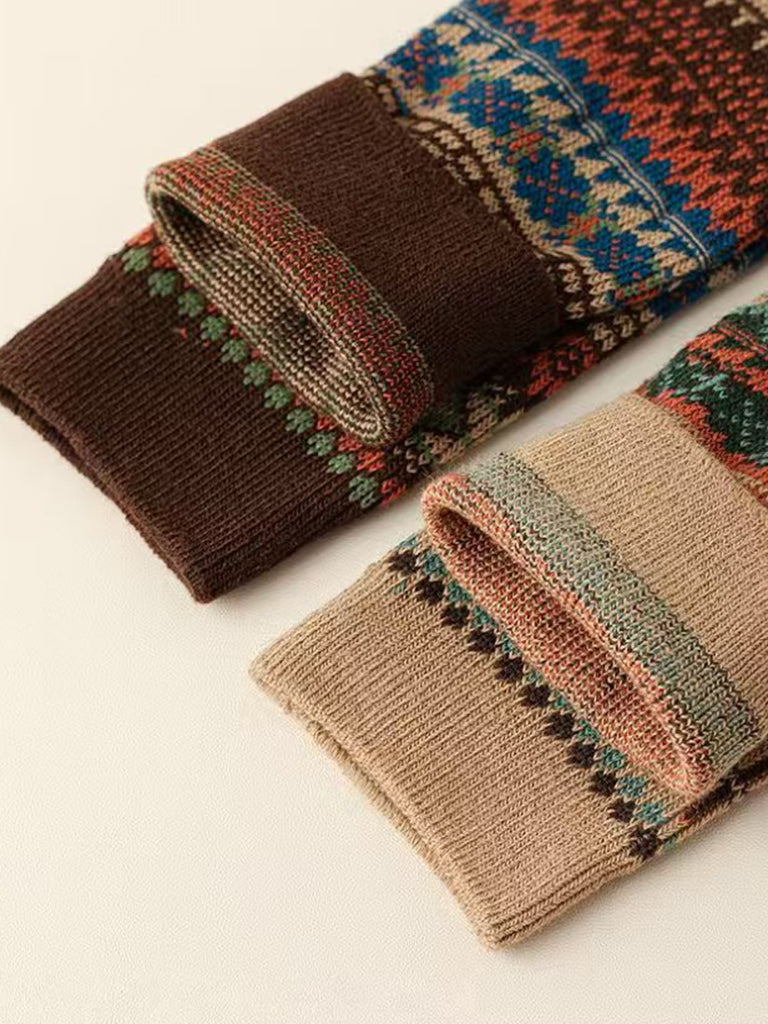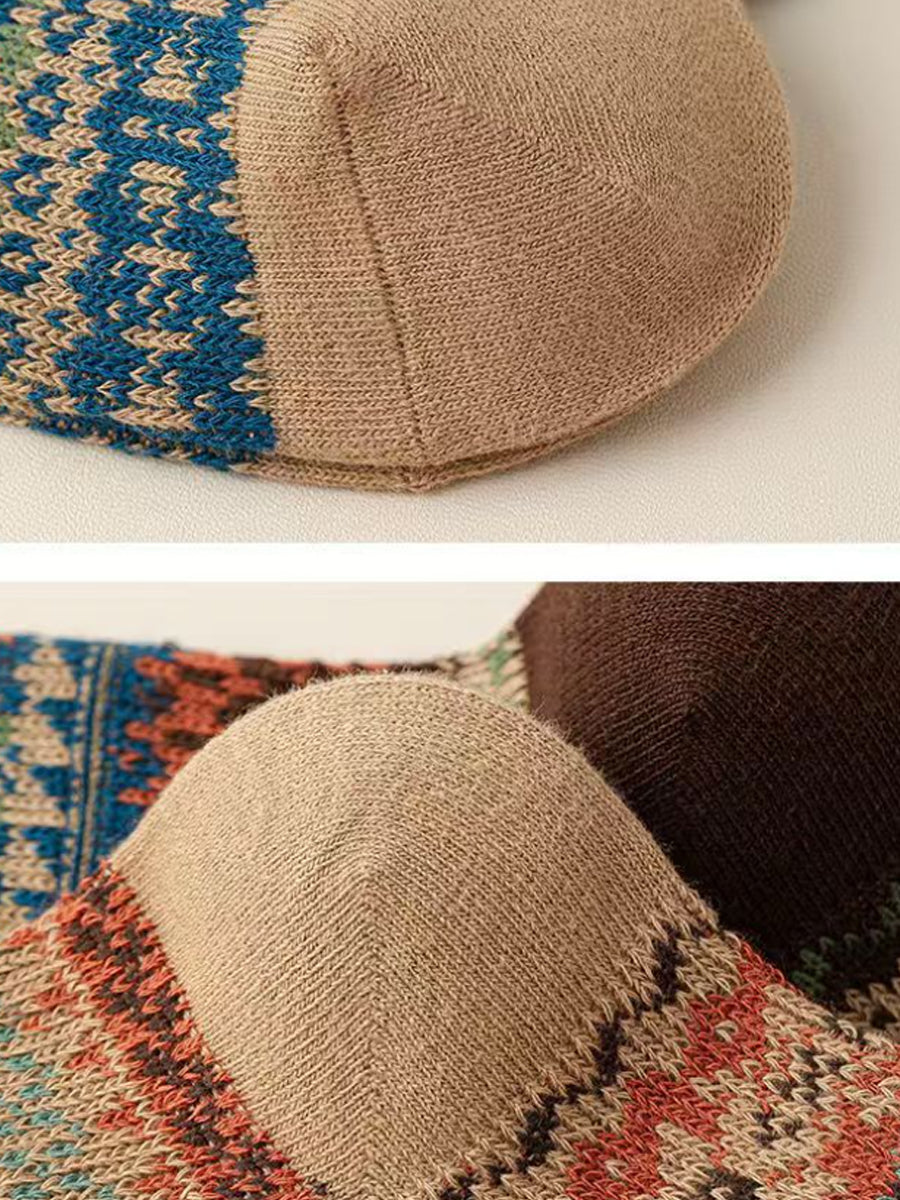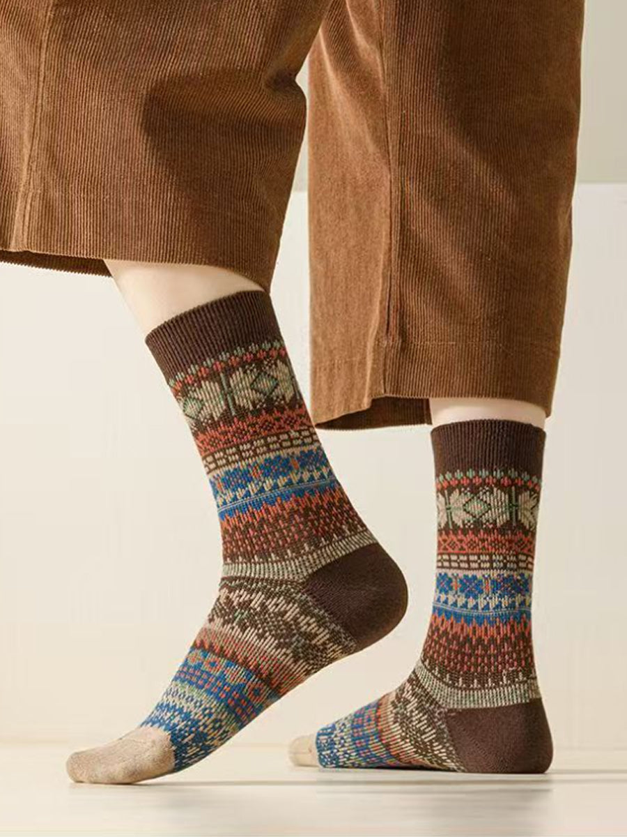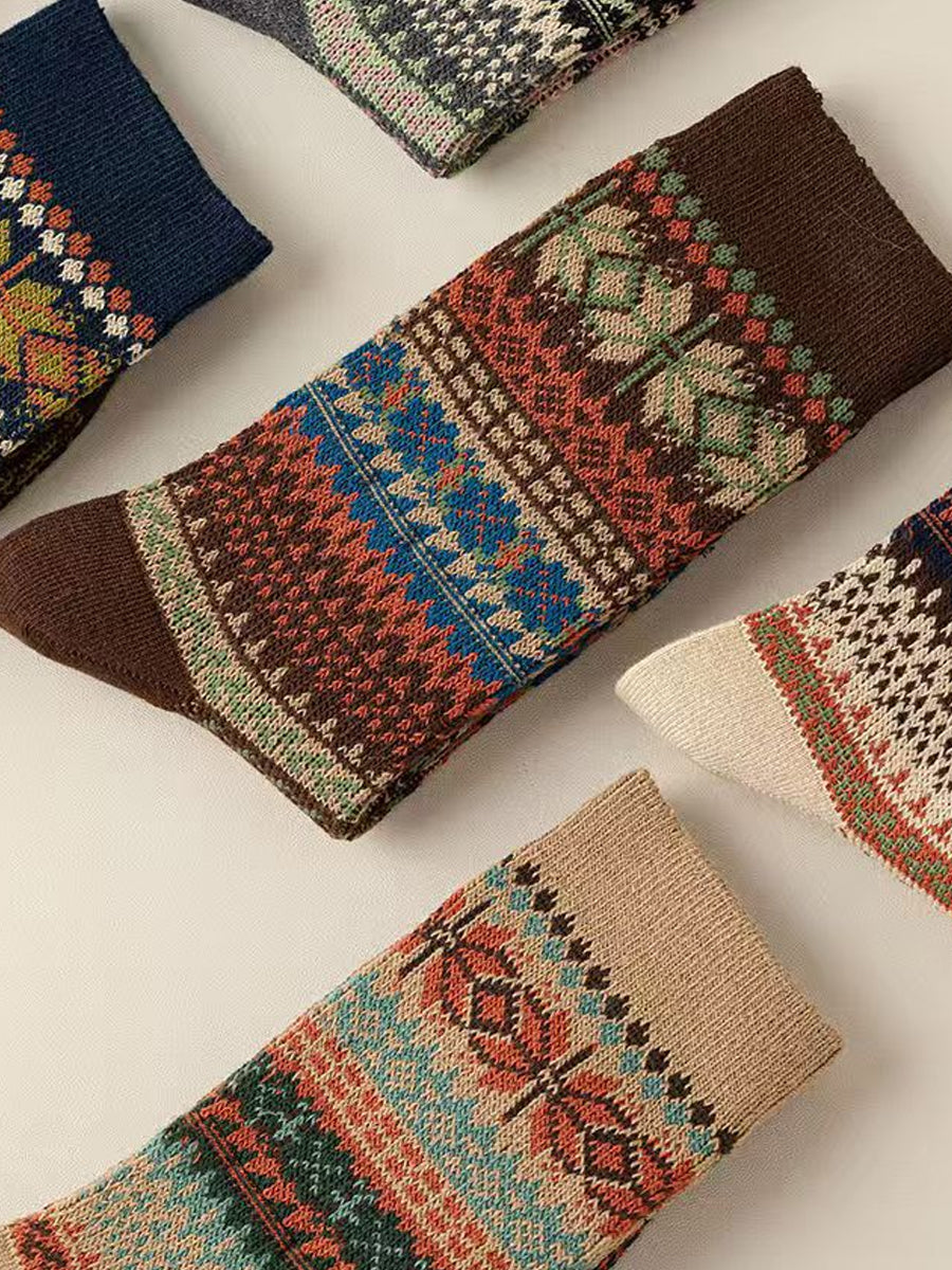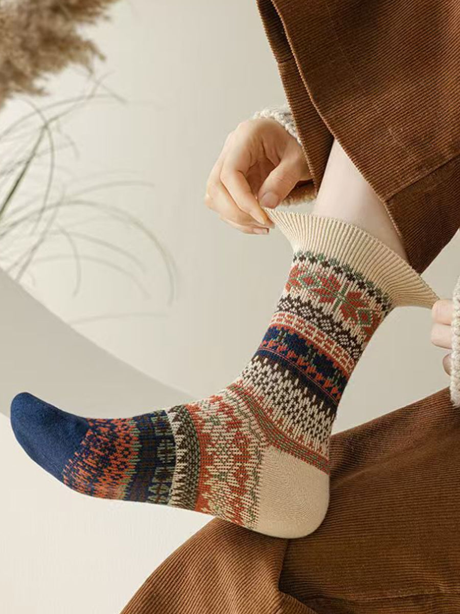 6 זוגות גרבי כותנה וינטג' לנשים עם פסים חורפיים