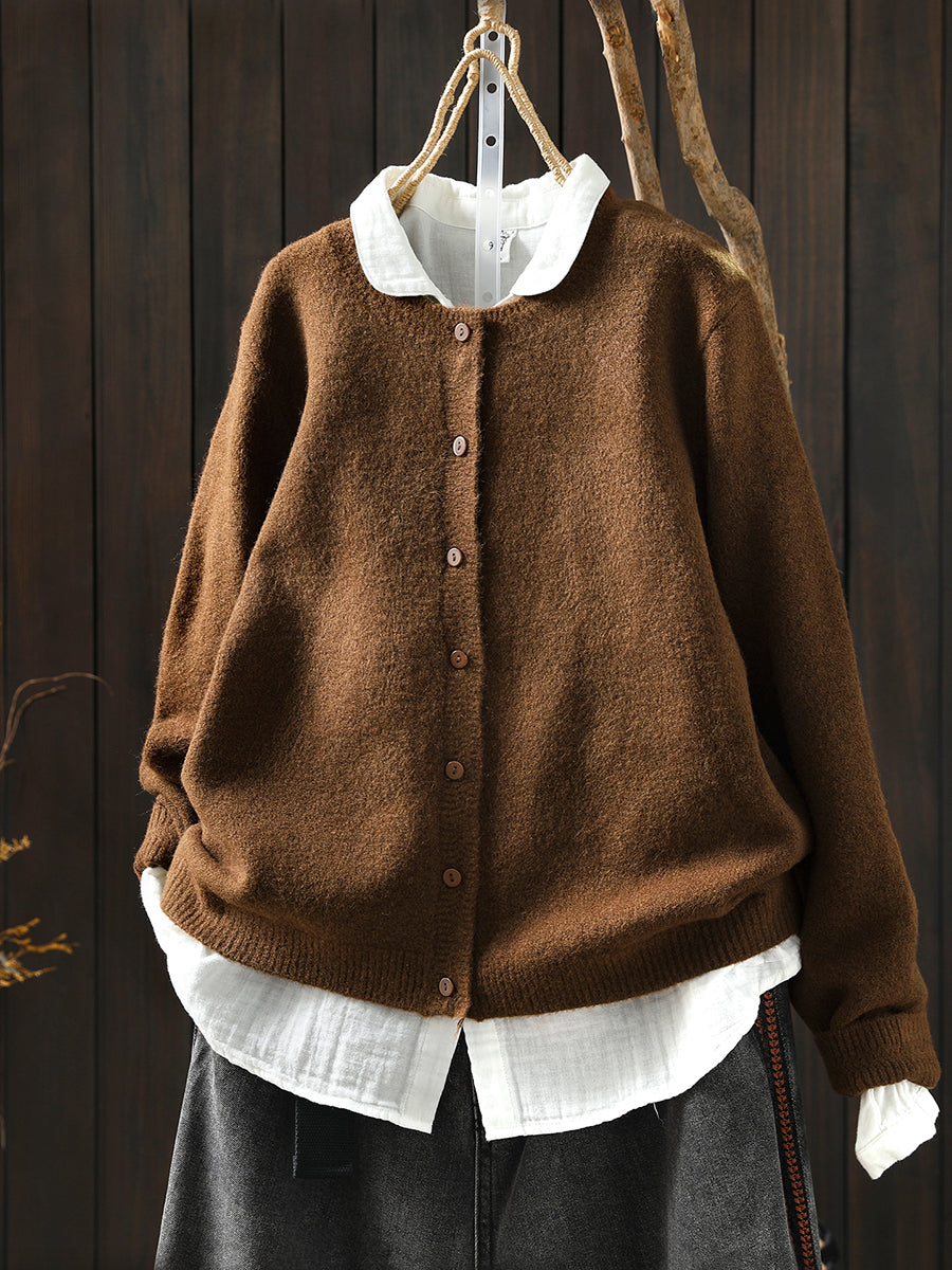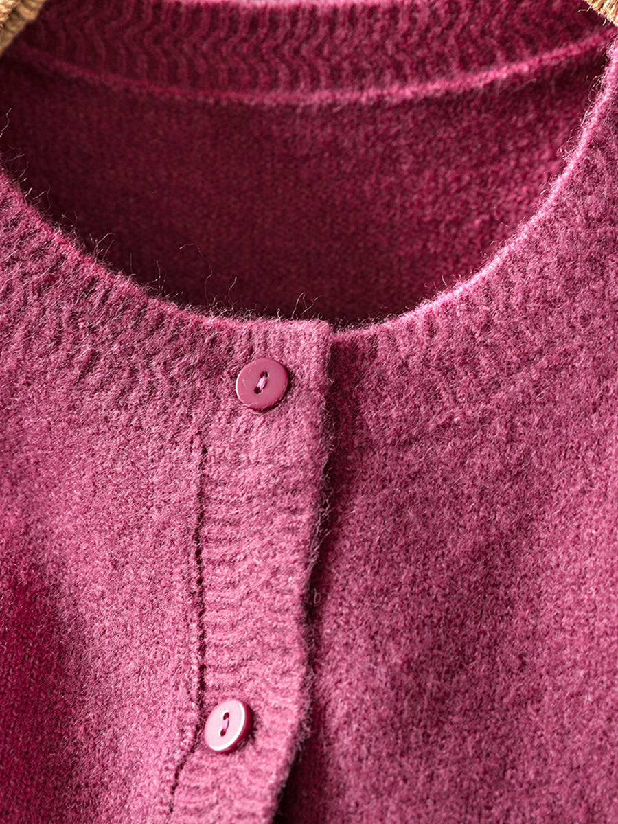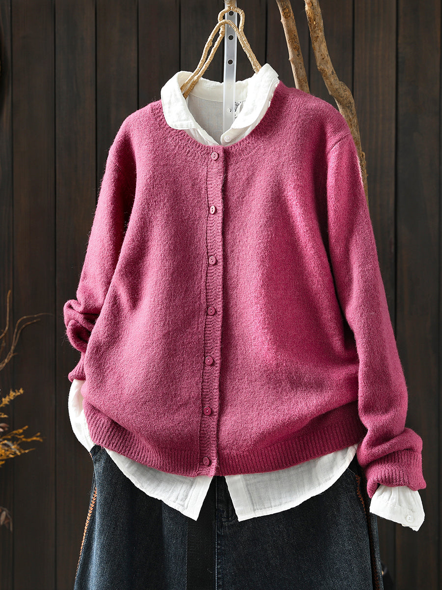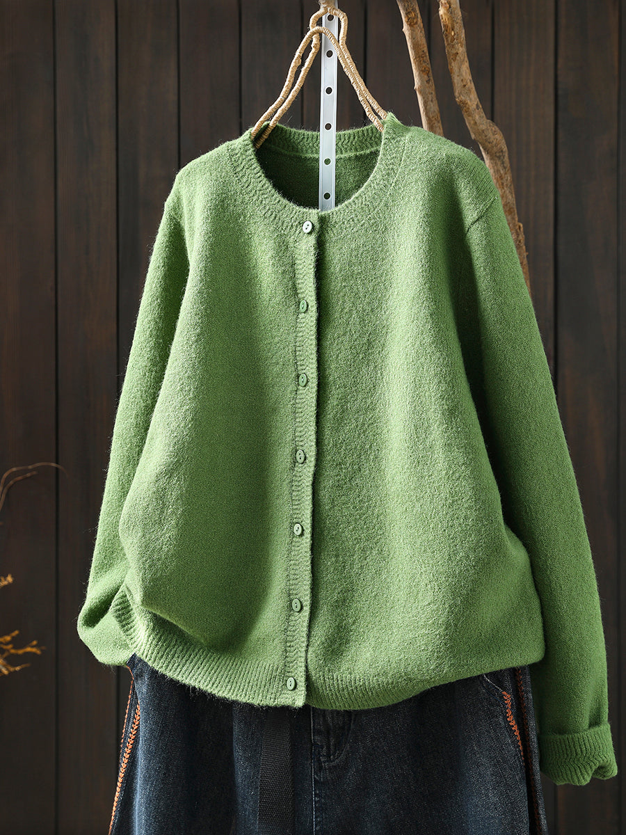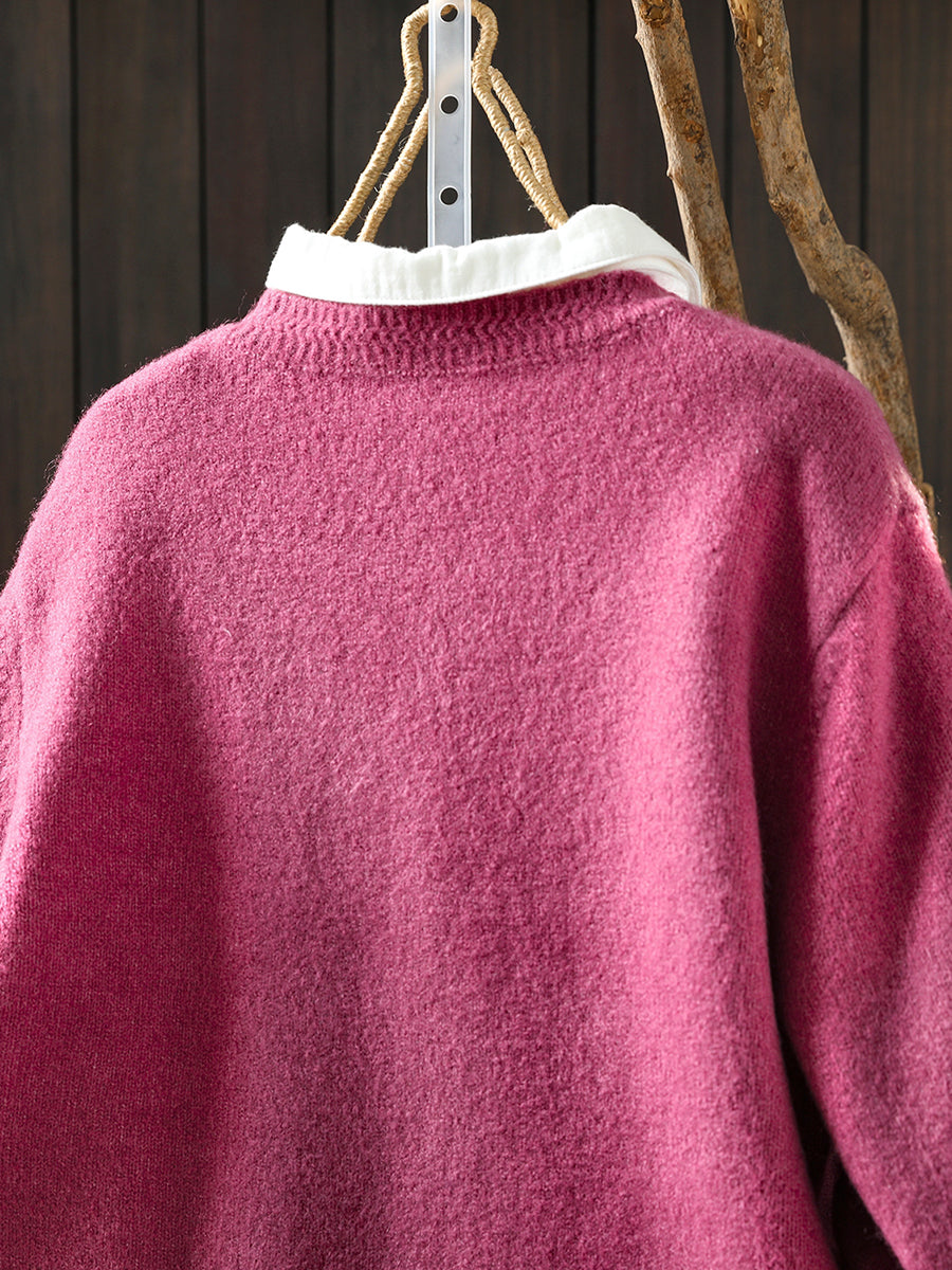 סוודר סרוג בצבע טהור אומנותי לנשים עם צווארון O