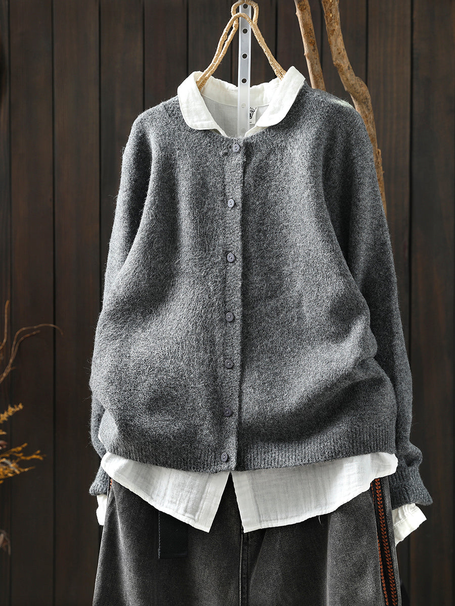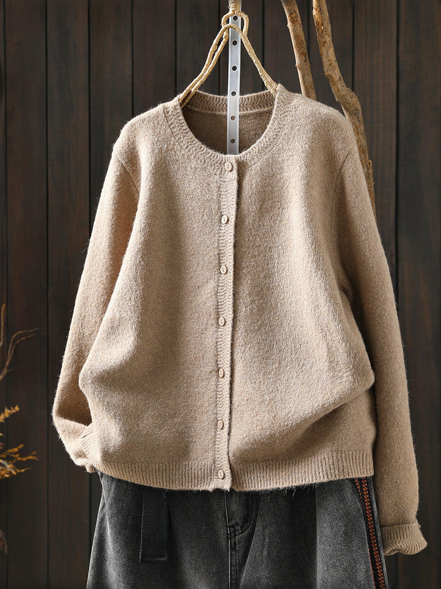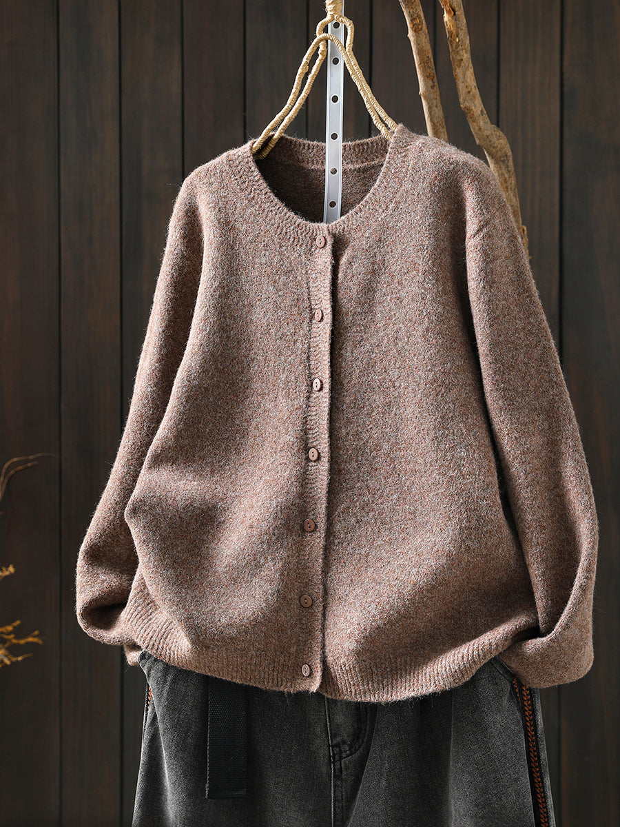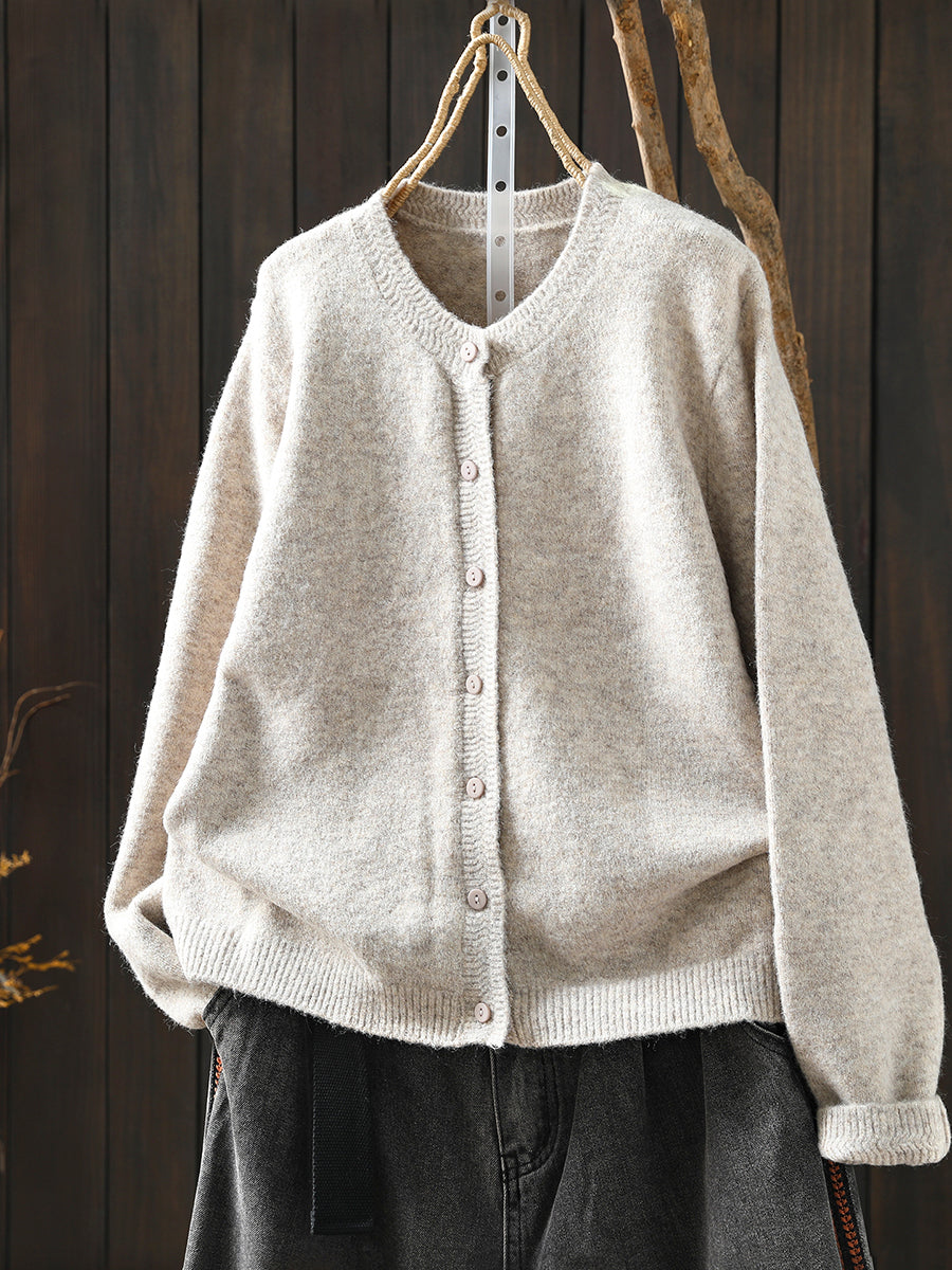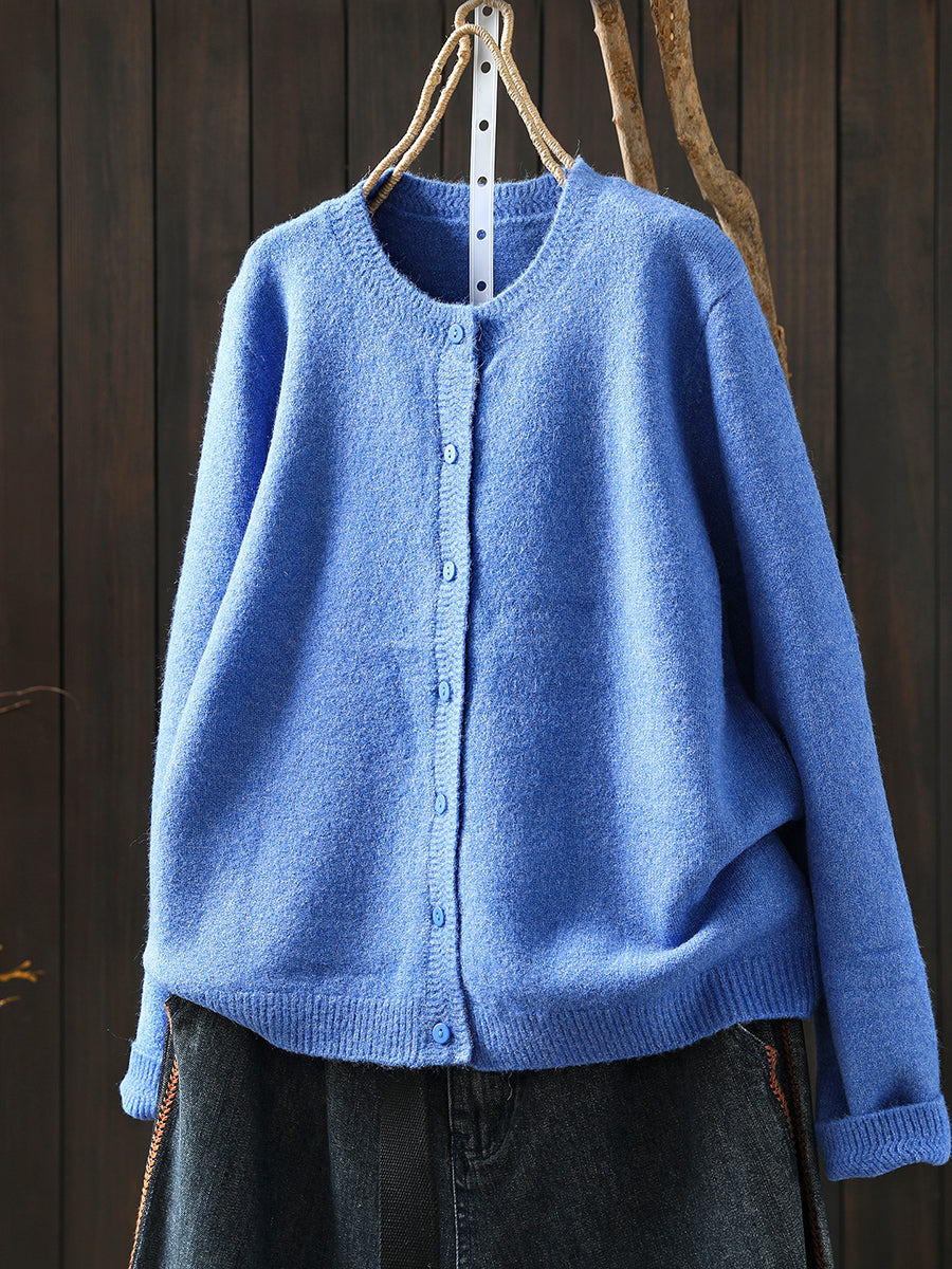 סוודר סרוג בצבע טהור אומנותי לנשים עם צווארון O