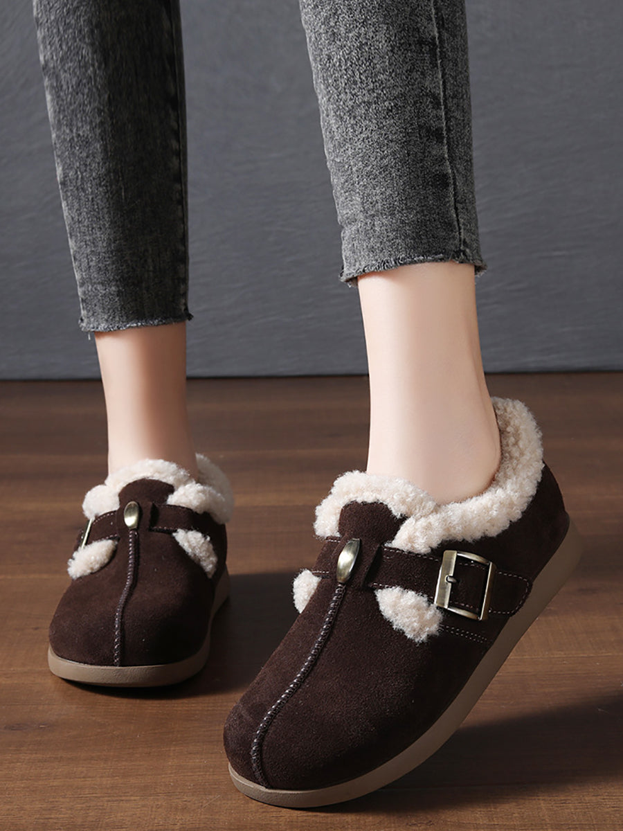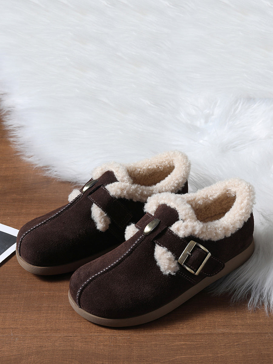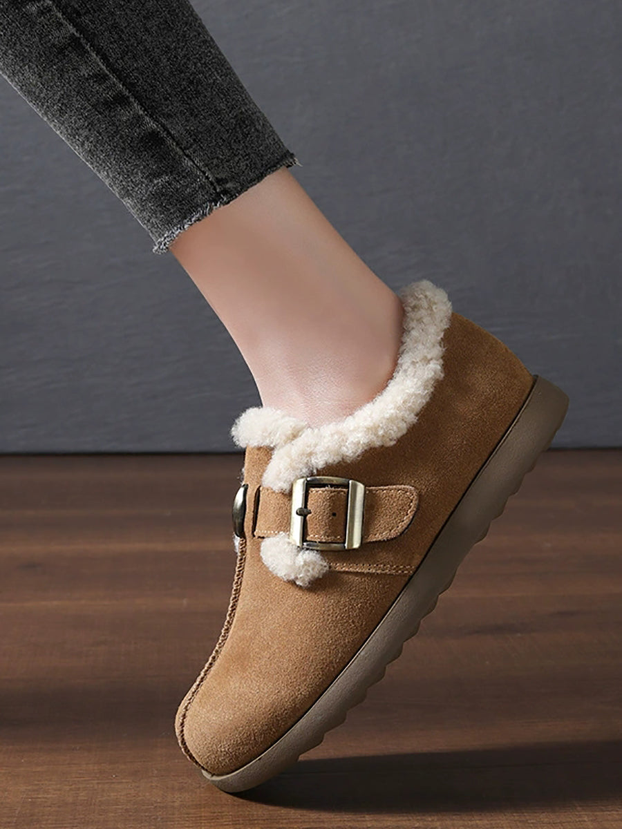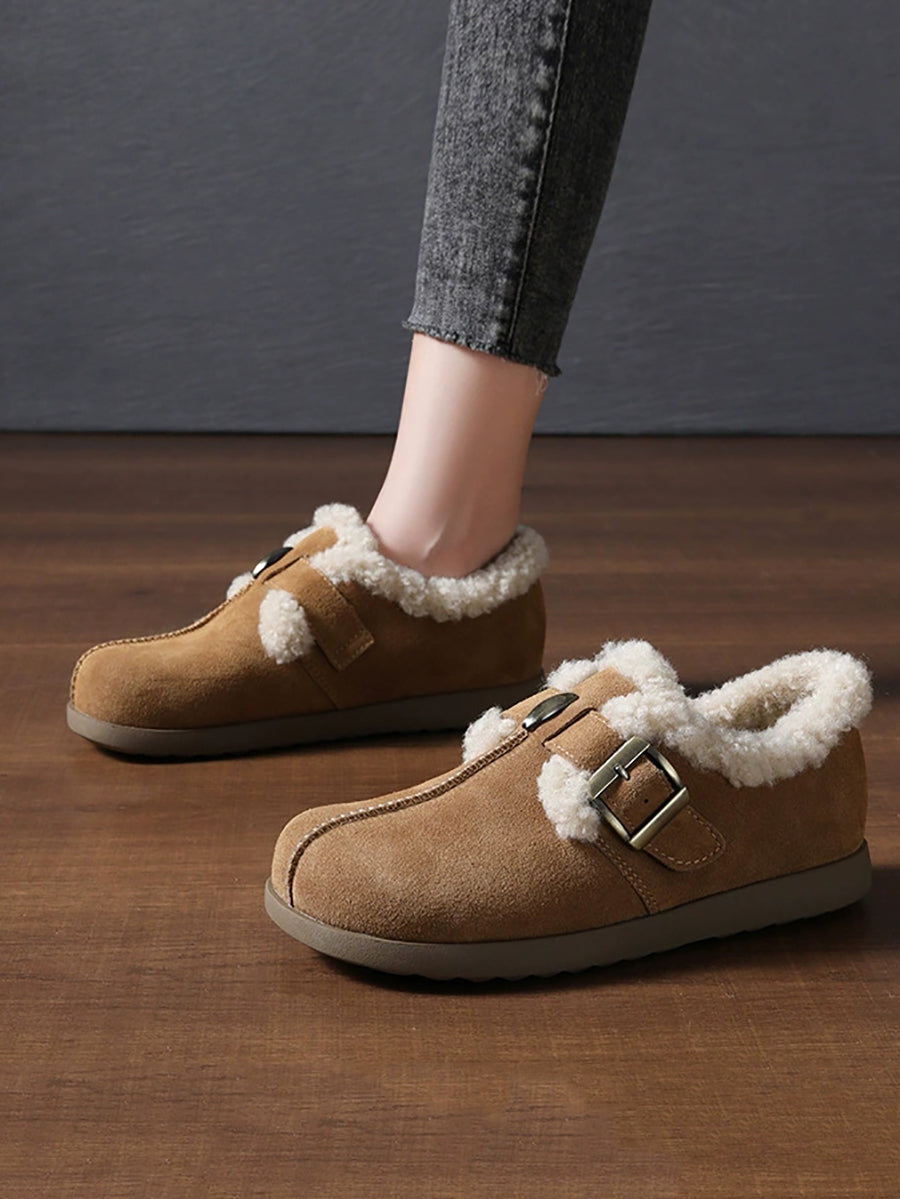נעלי עור אמיתי וינטג' לנשים עם בטנת פליז