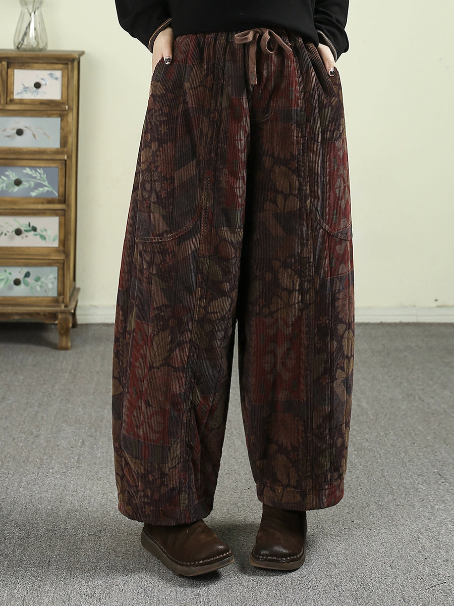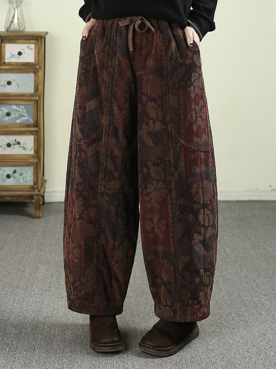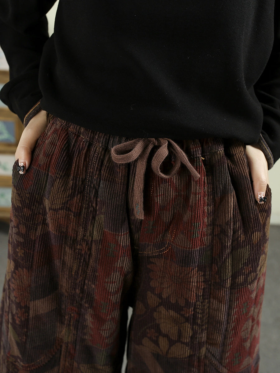 מכנסי הרמון מרופדים קורדרוי פרחוניים לנשים בחורף