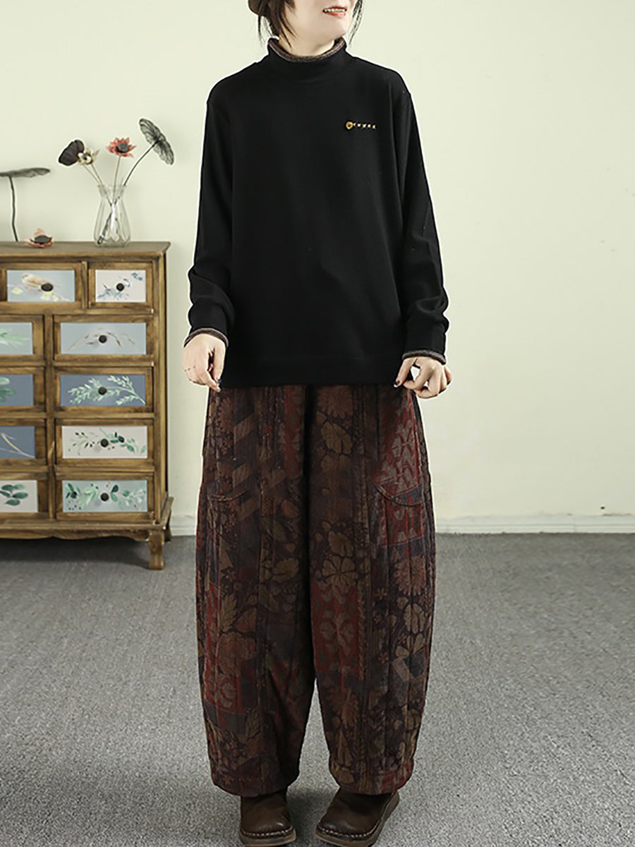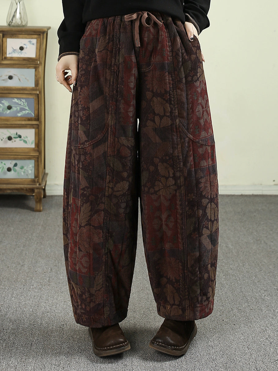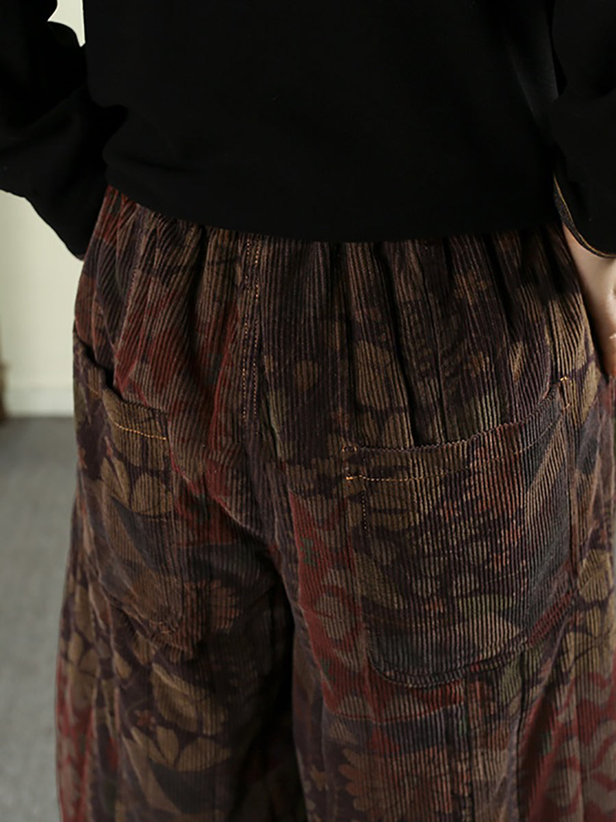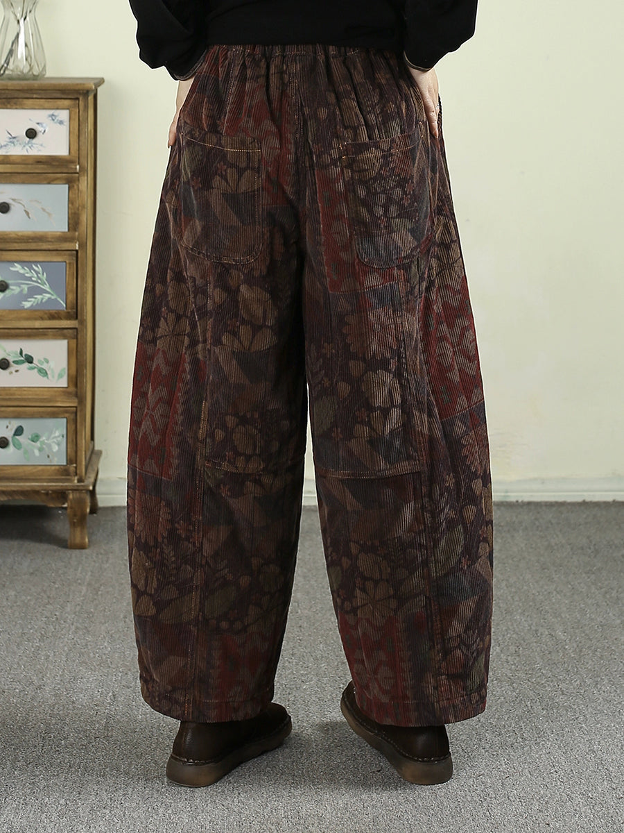 מכנסי הרמון מרופדים קורדרוי פרחוניים לנשים בחורף