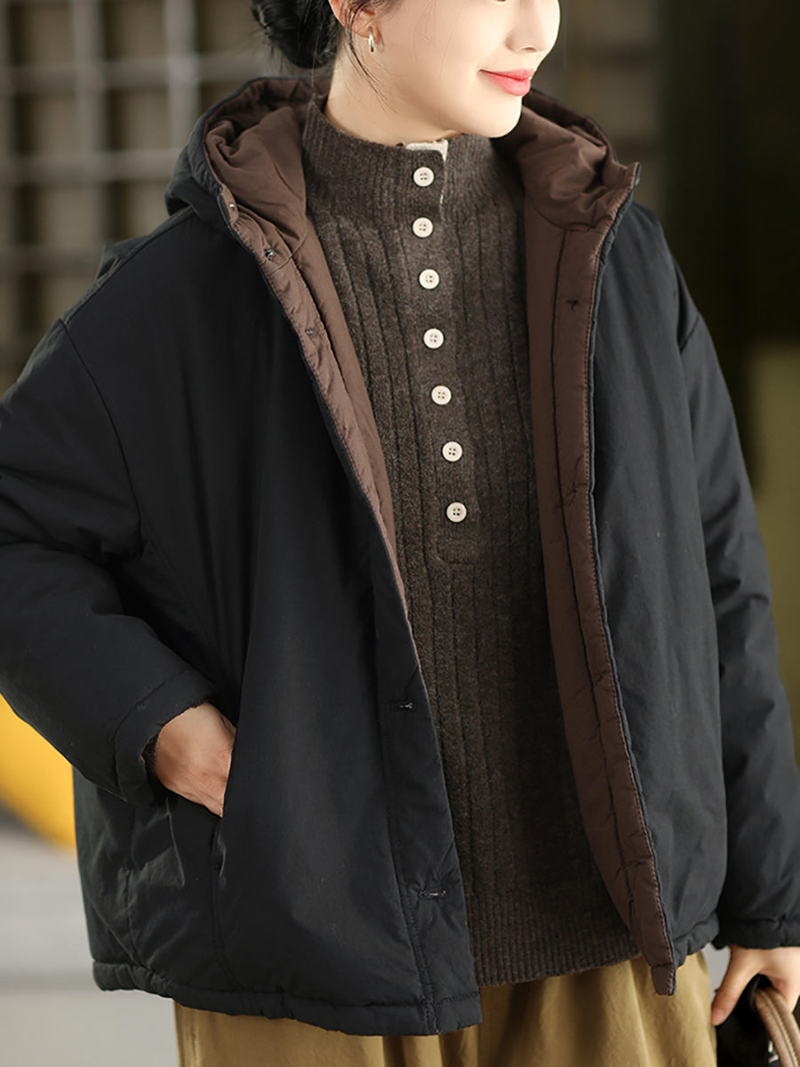 מעיל מרופד בצבע טהור בסגנון חורף לנשים