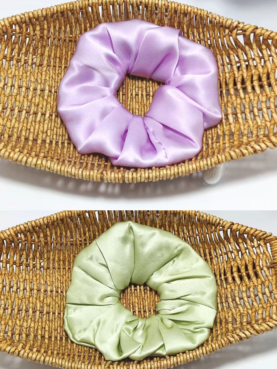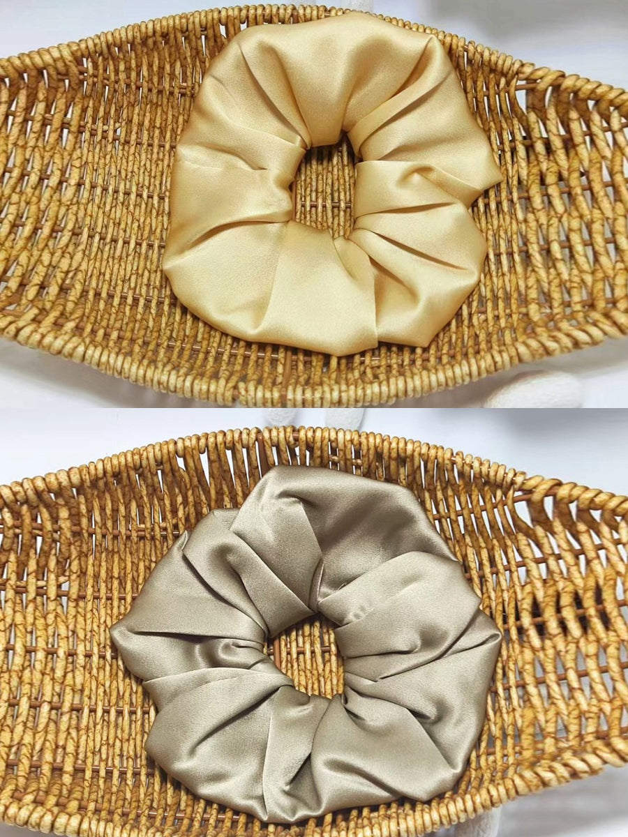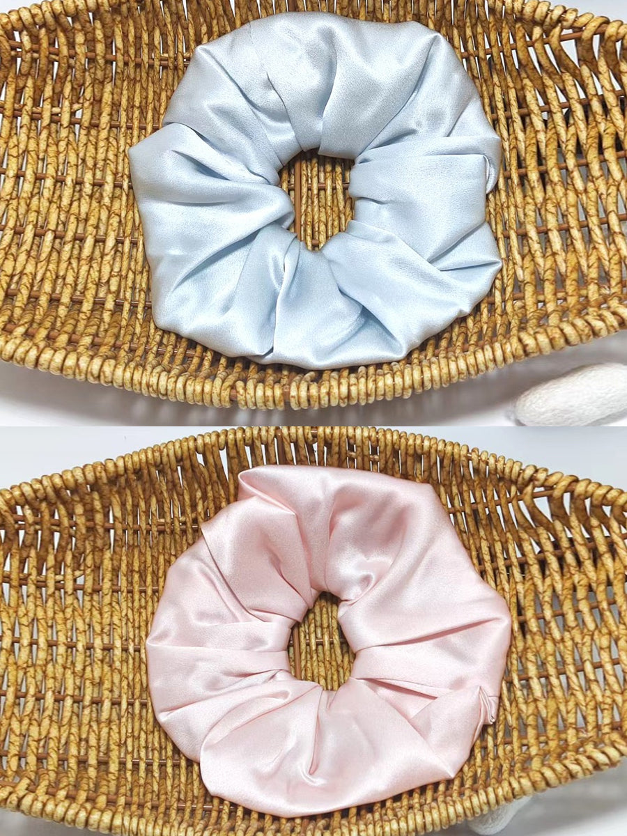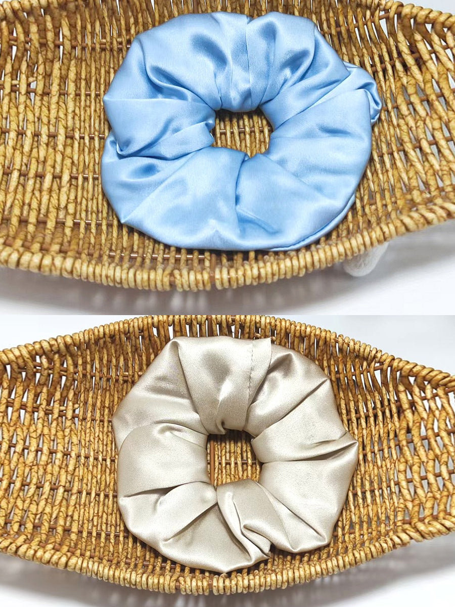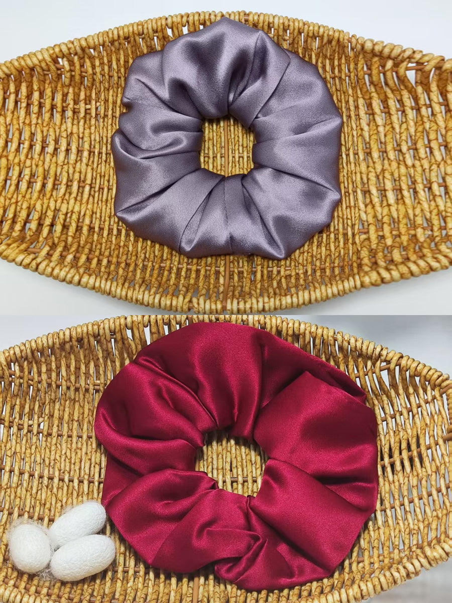 2 חתיכות חבל שיער משי קפלים בצבע טהור בעבודת יד
