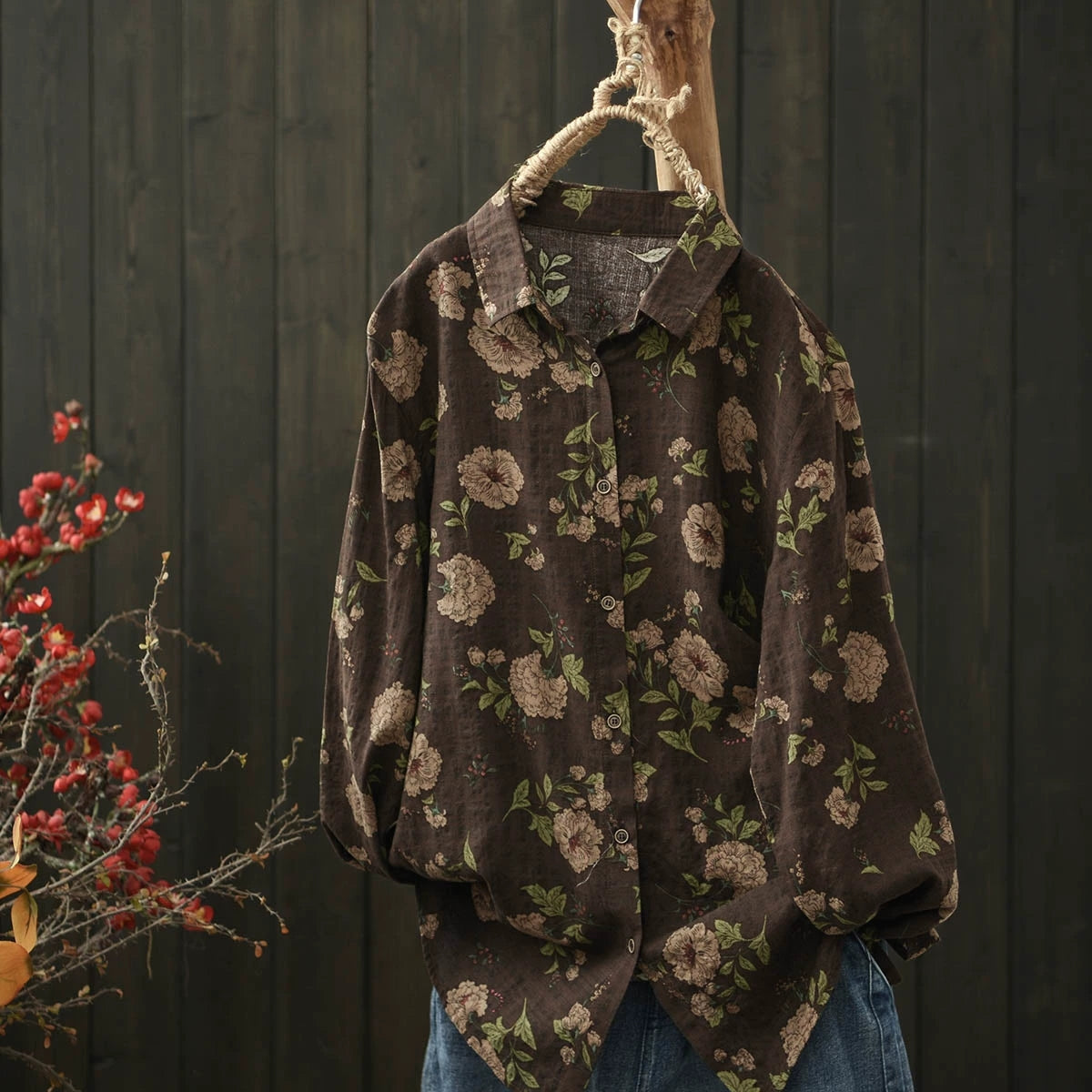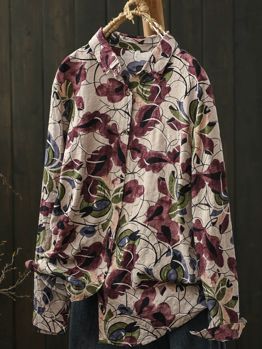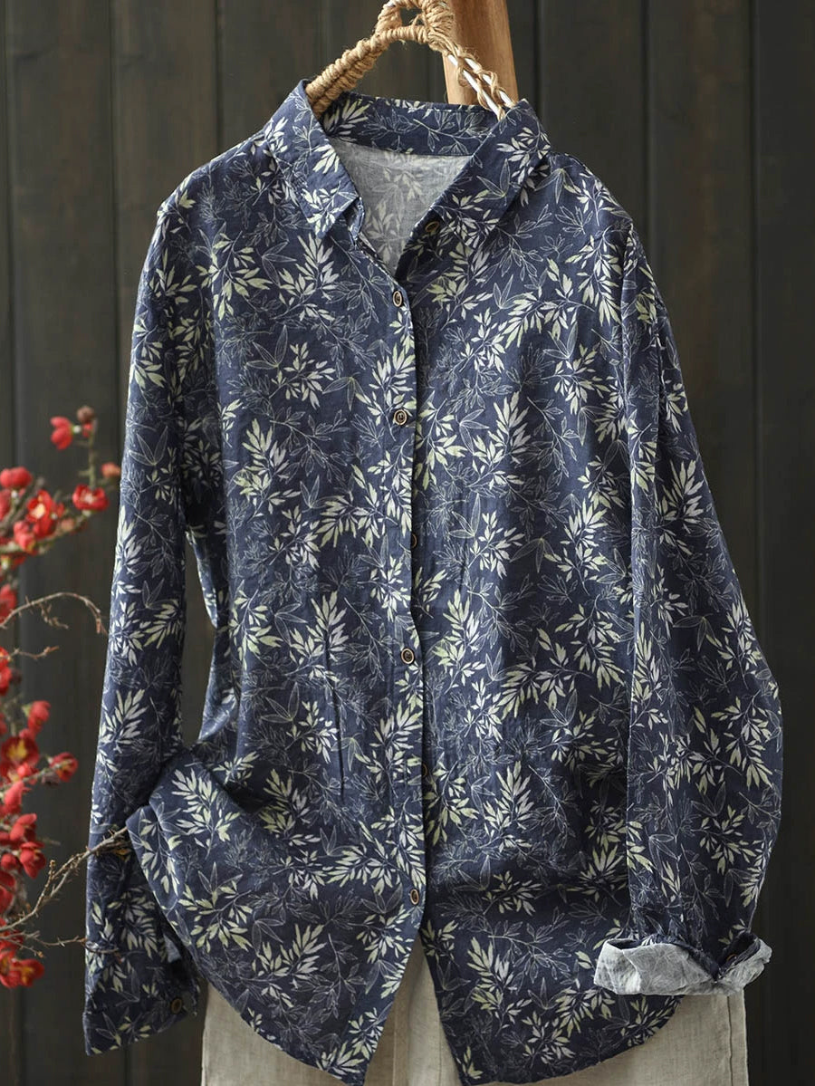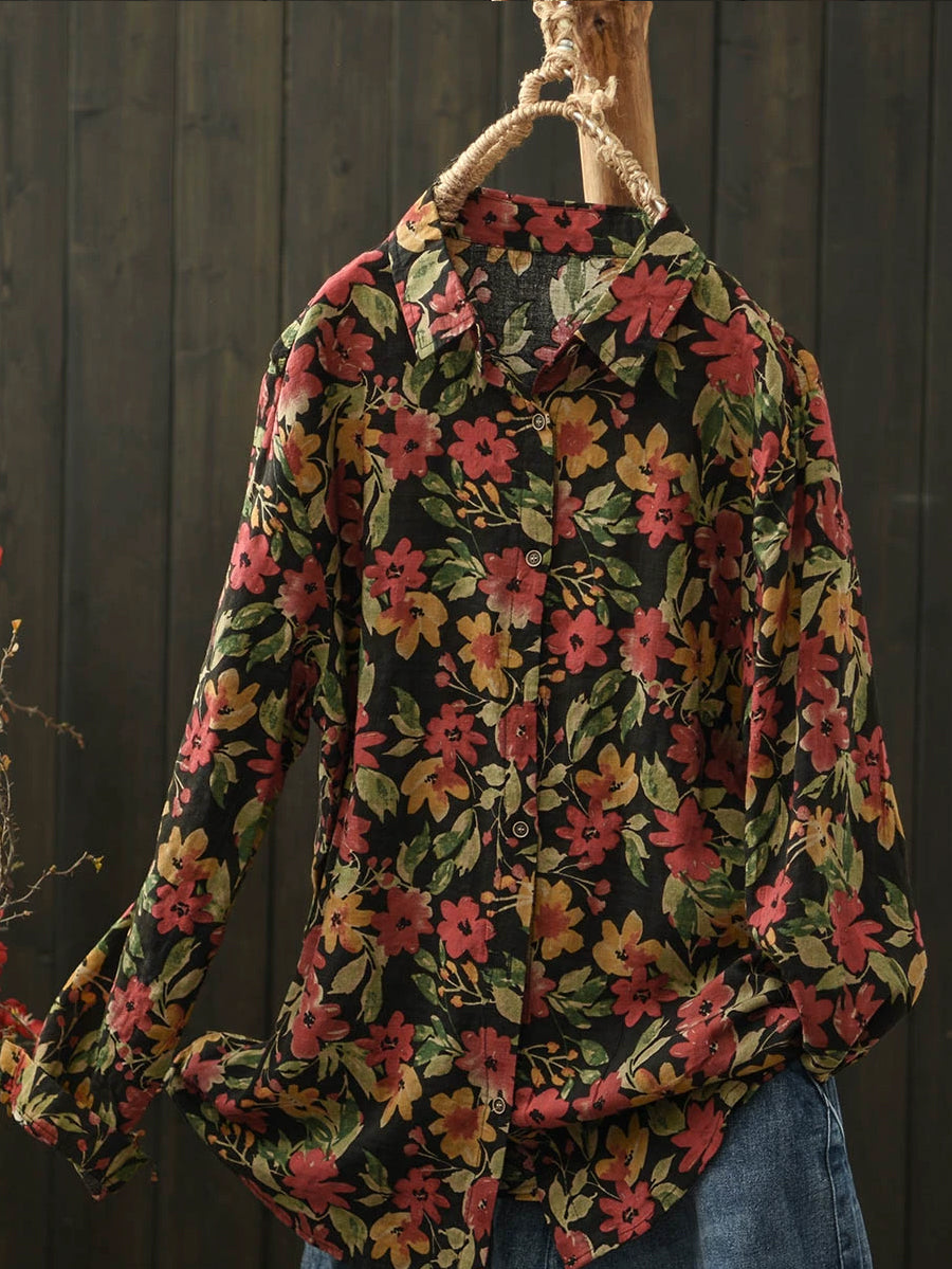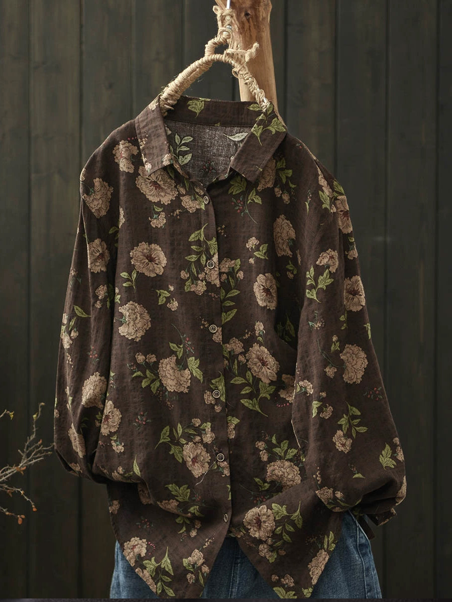 חולצת כותנה עם צווארון פרחוני אומנותי לנשים