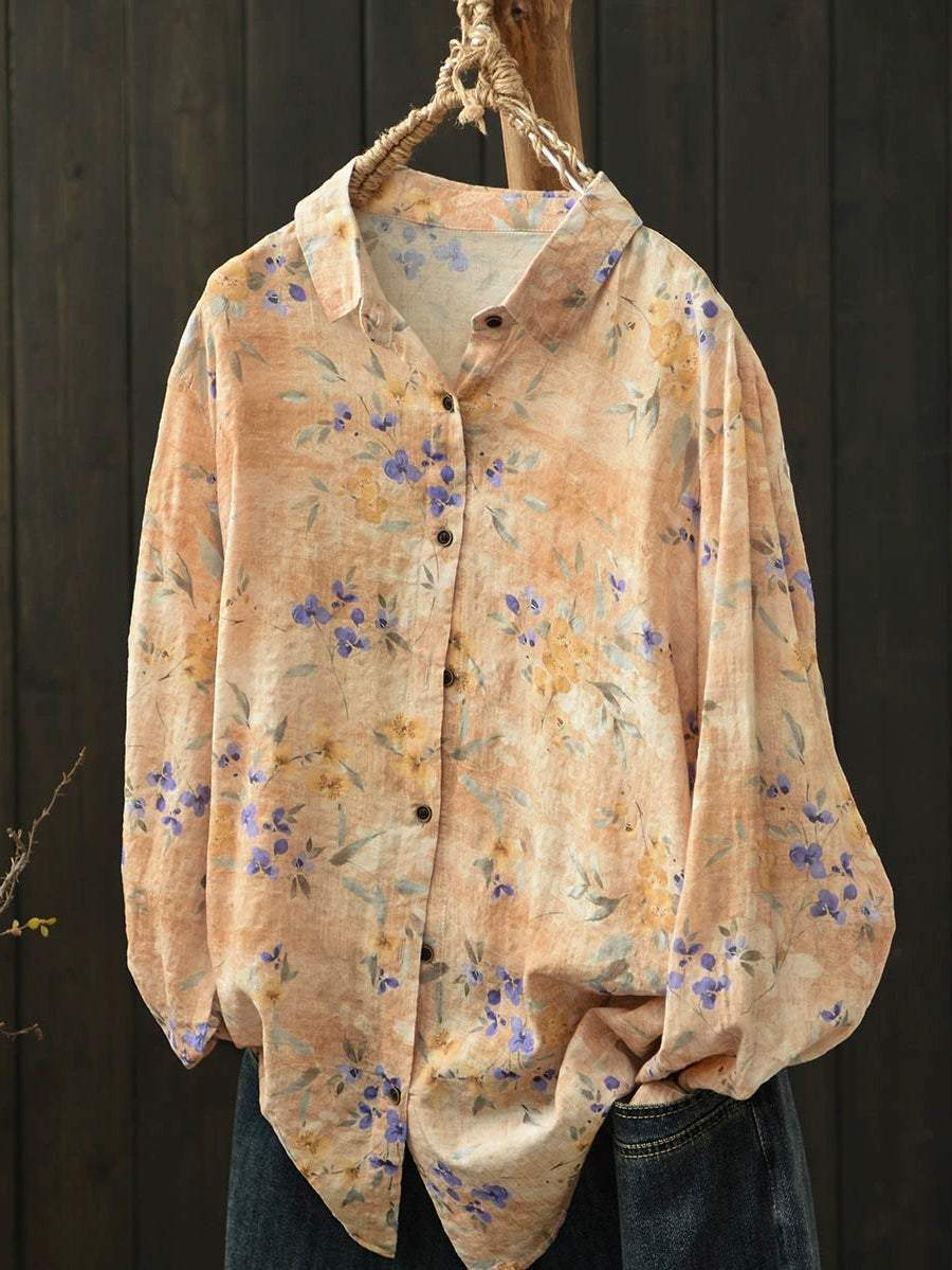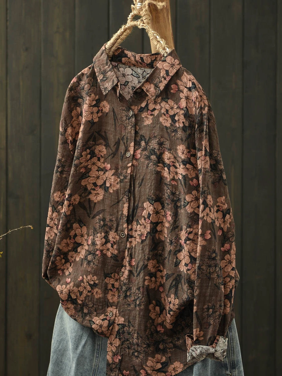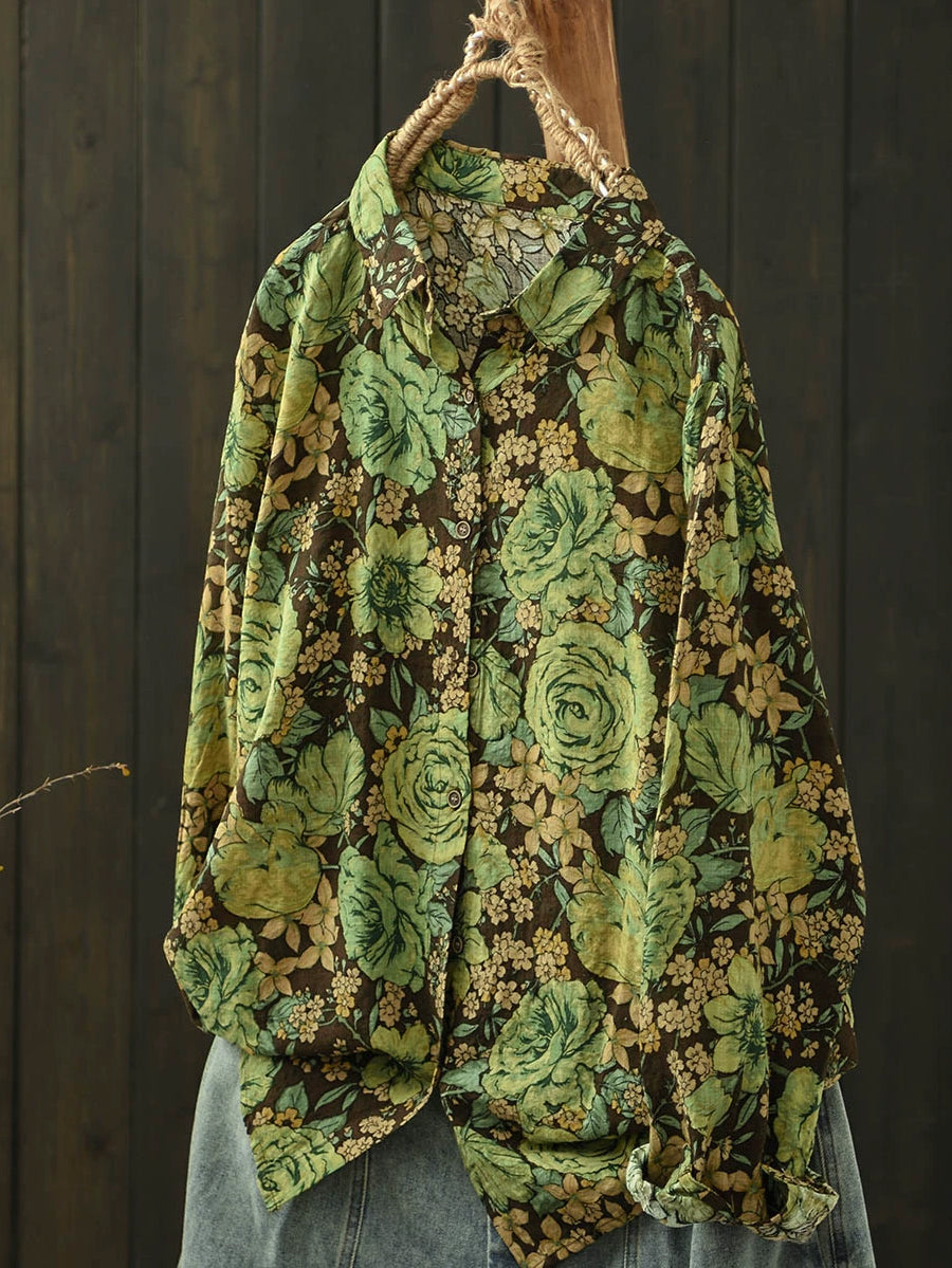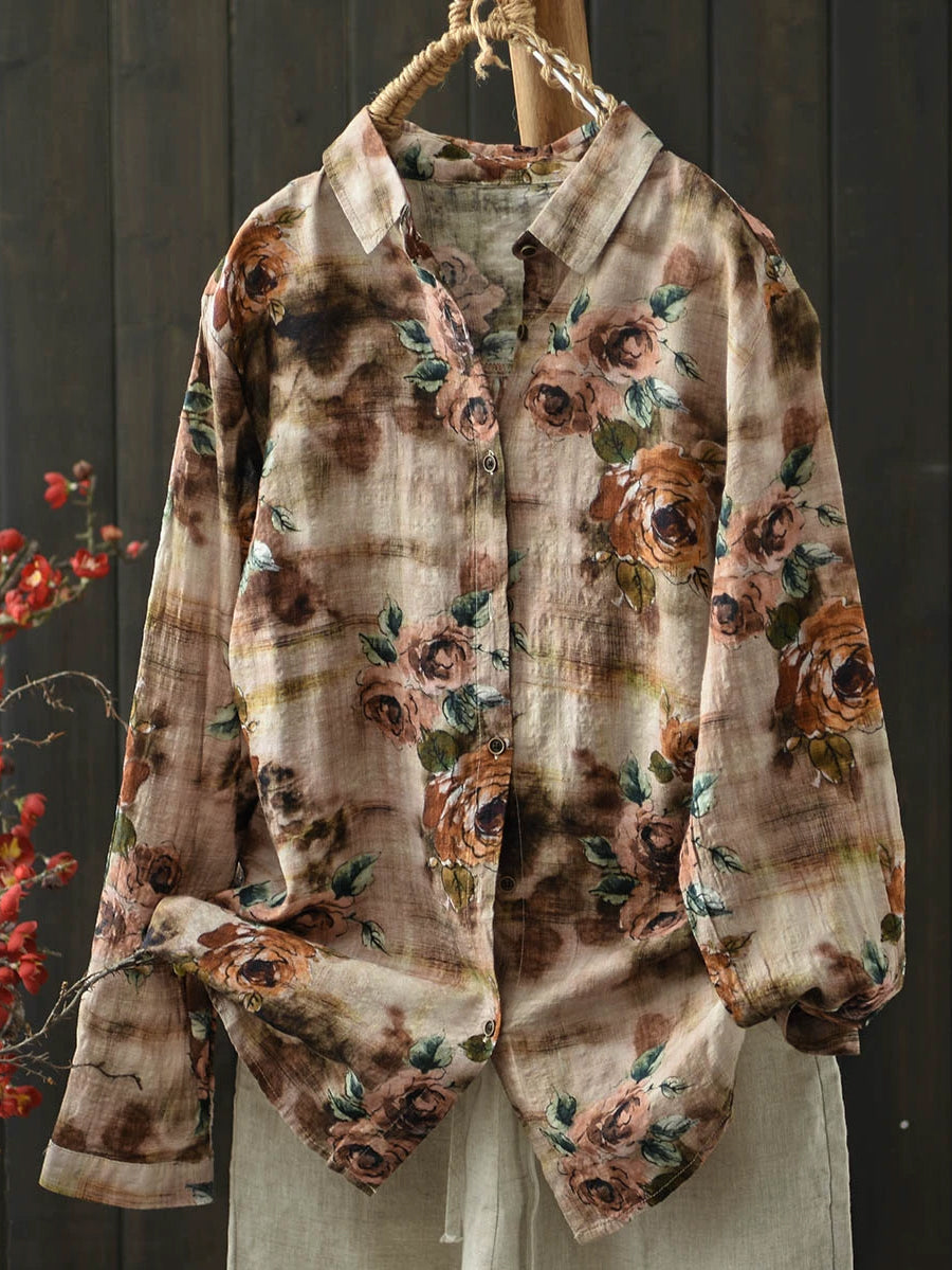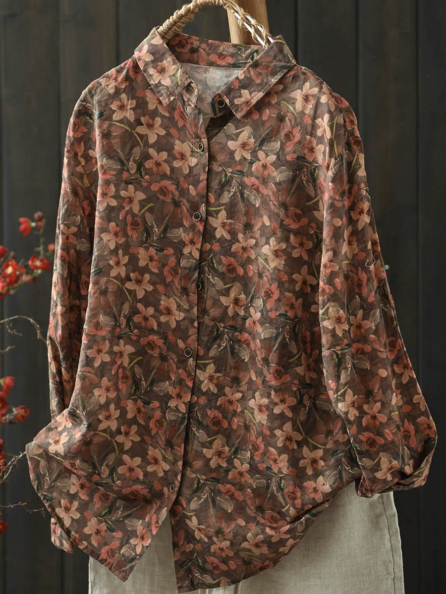 חולצת כותנה עם צווארון פרחוני אומנותי לנשים