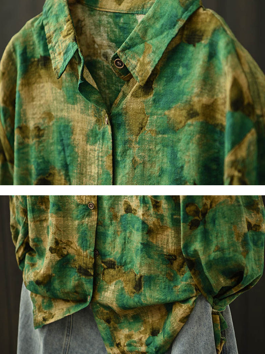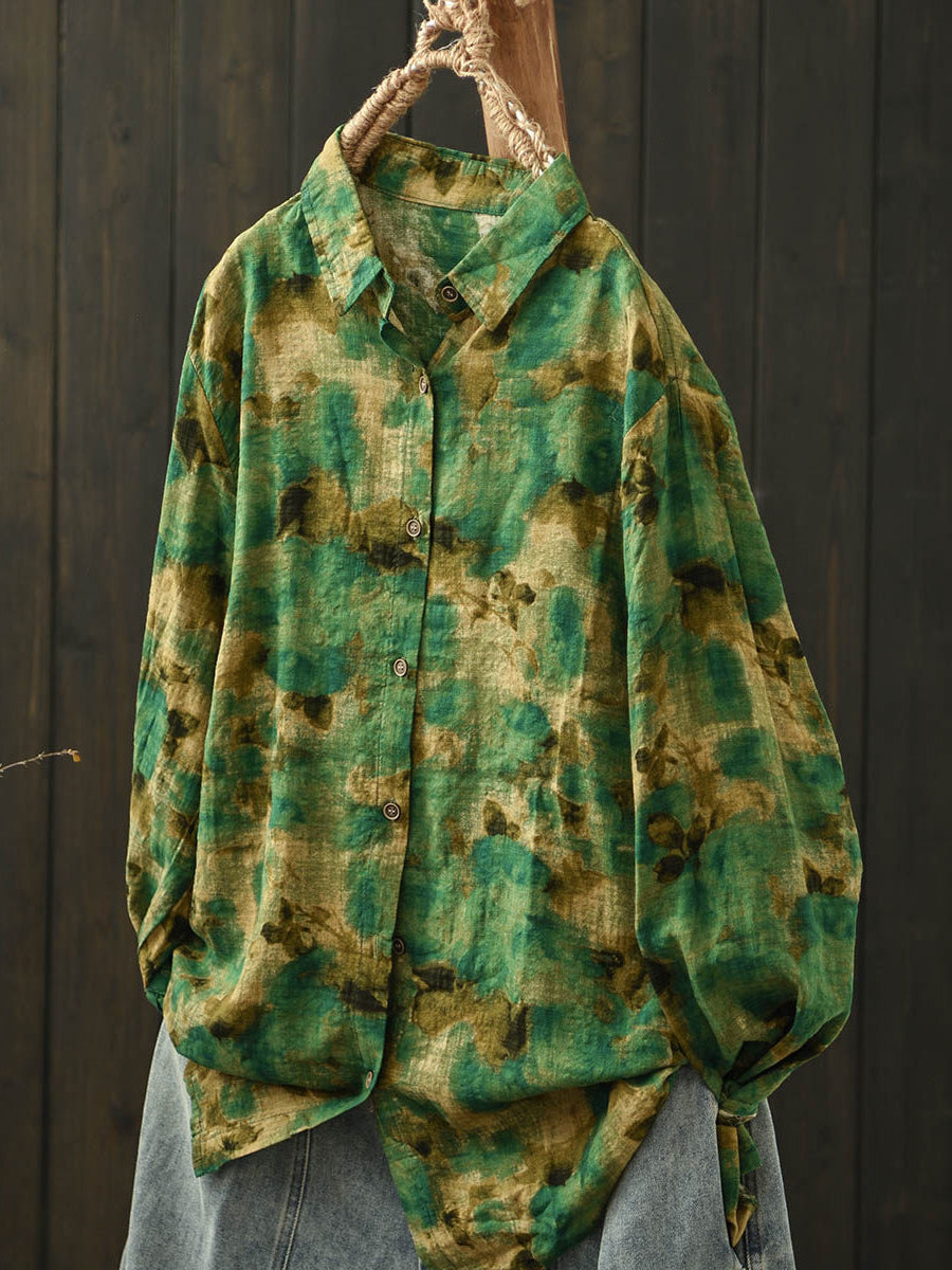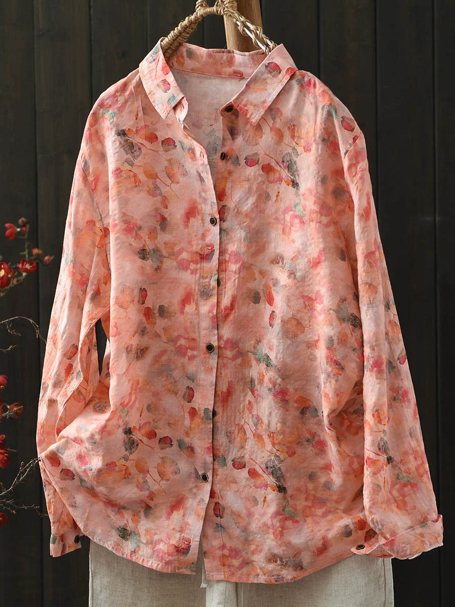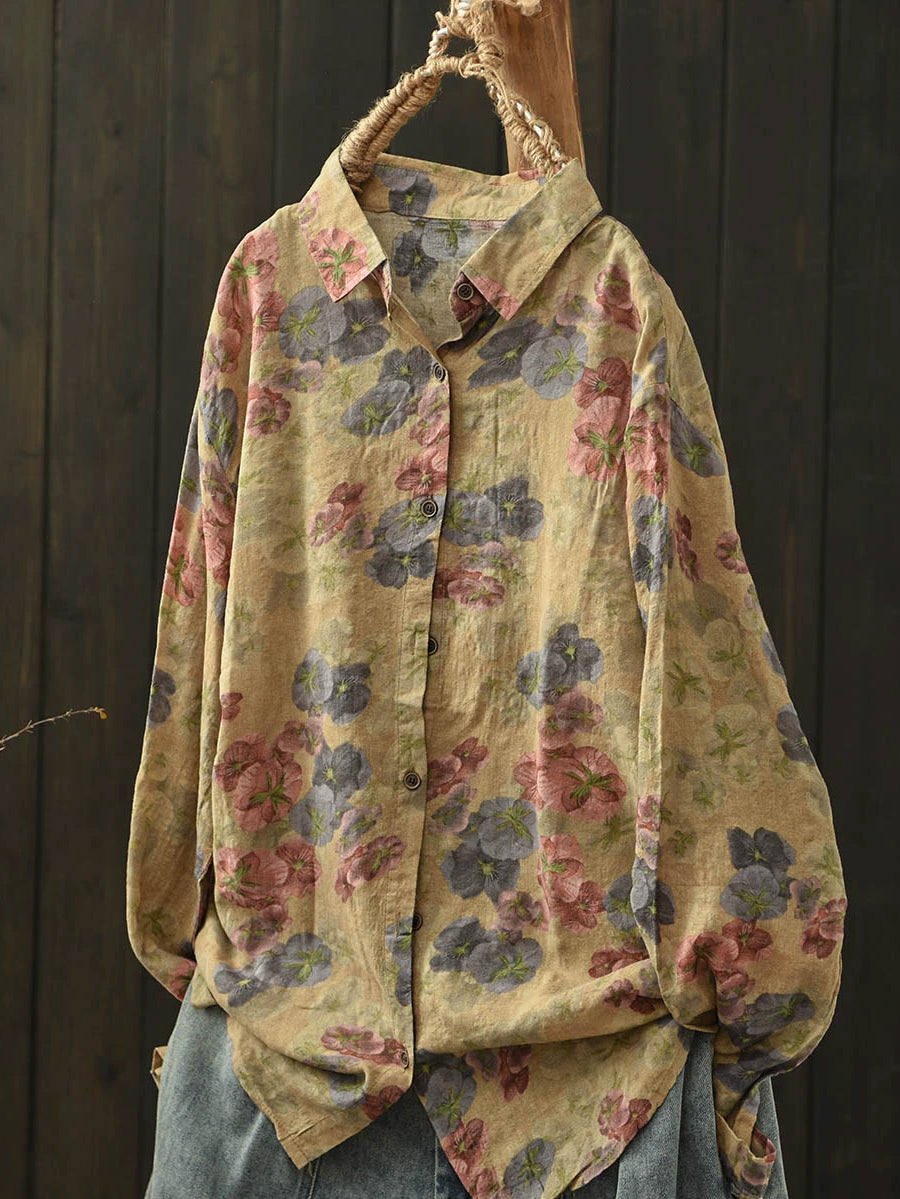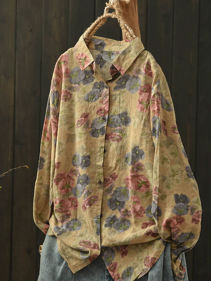 חולצת כותנה עם צווארון פרחוני אומנותי לנשים
