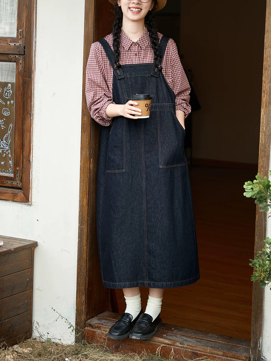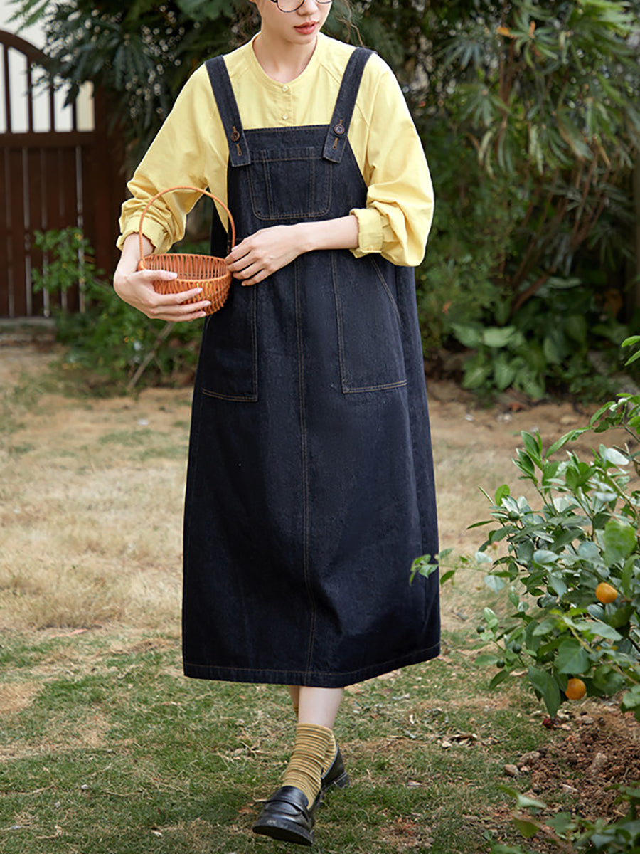 שמלת ג'ינס בצבע טהור בצבע רטרו לנשים באביב