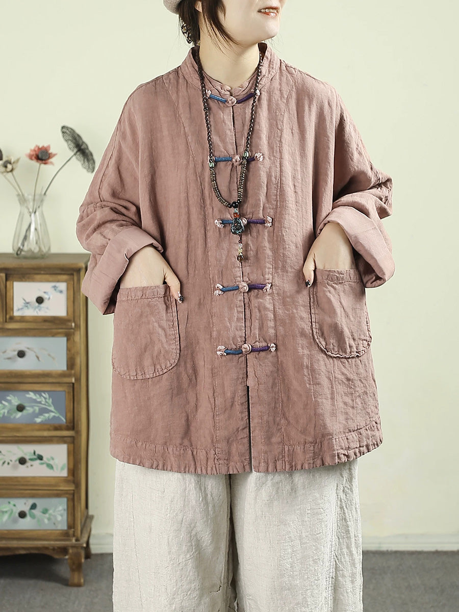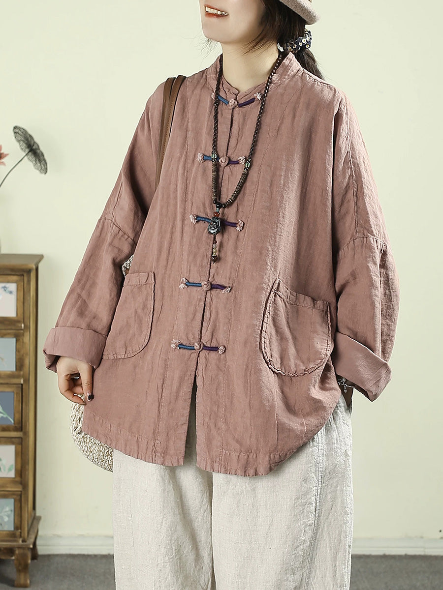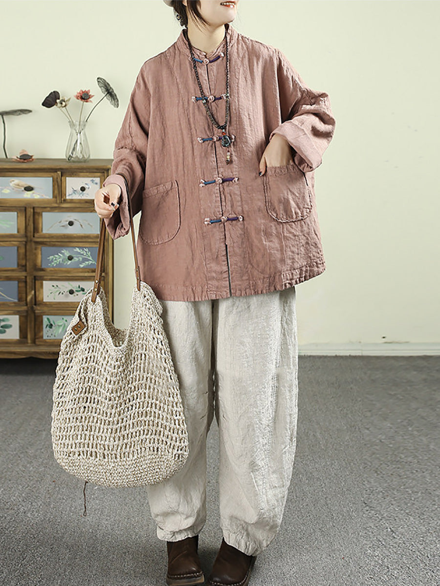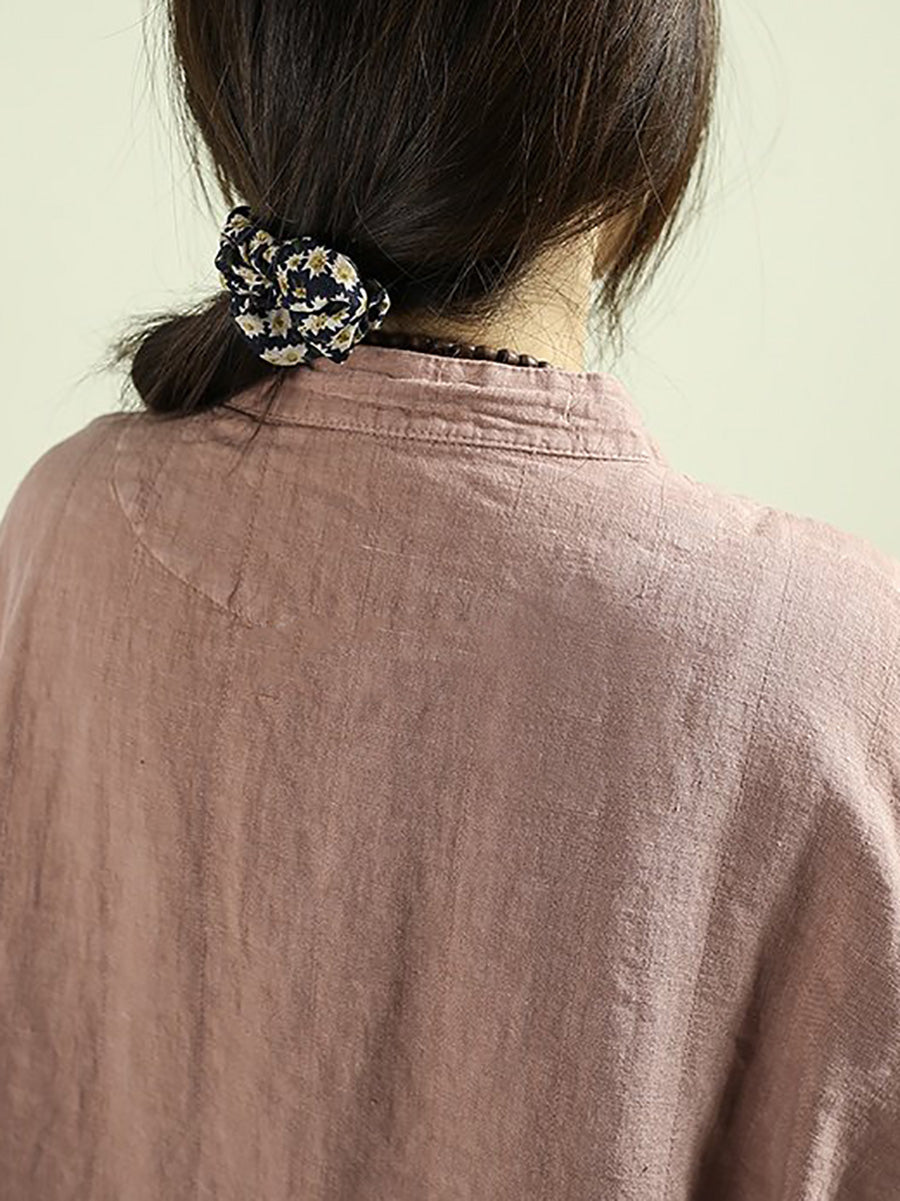 חולצת אביב אתנית לנשים בצבע טהור 100% פשתן