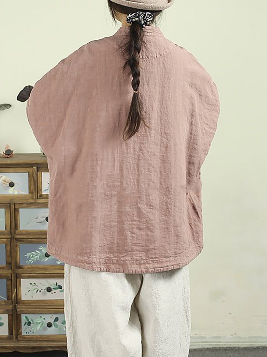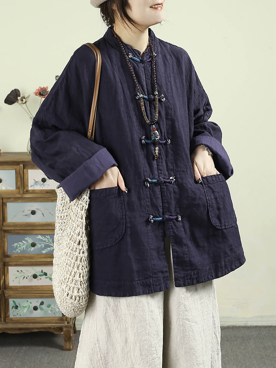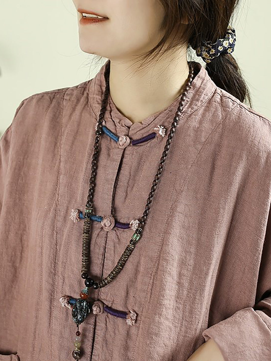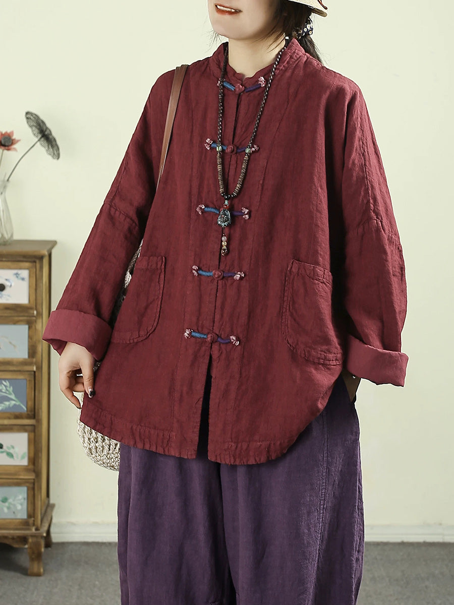 חולצת אביב אתנית לנשים בצבע טהור 100% פשתן