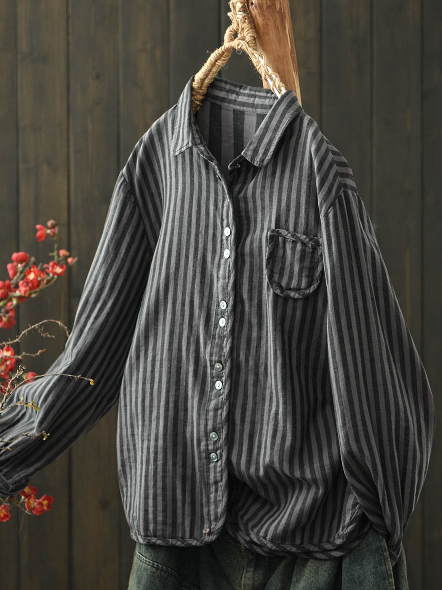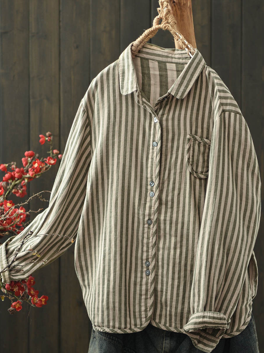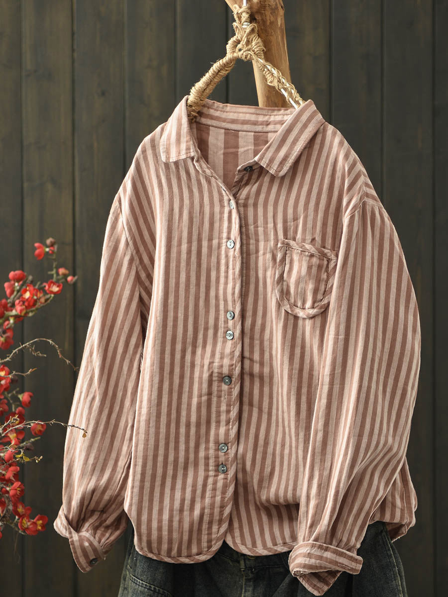 חולצת כותנה עם צווארון הפוך לנשים בצבע סתיו