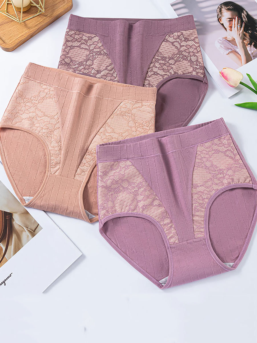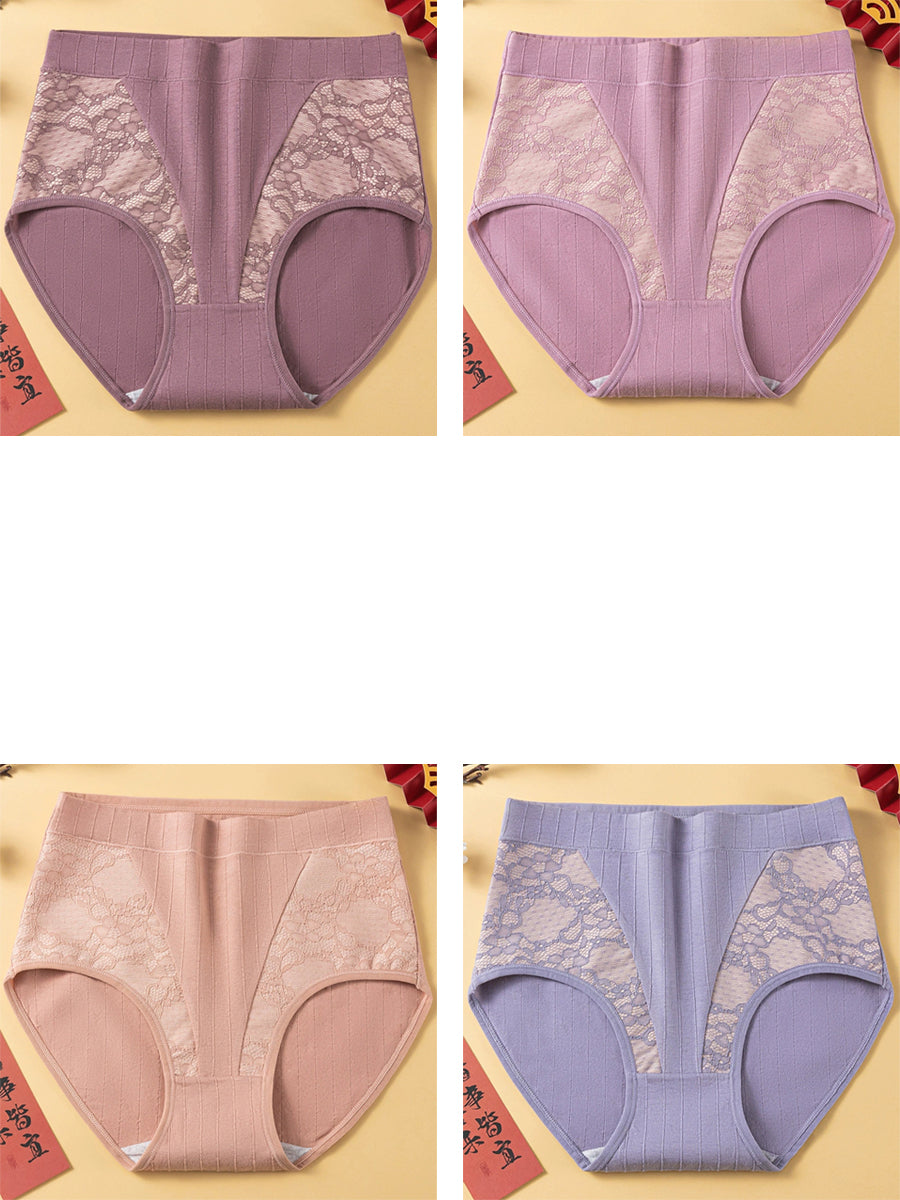4 חלקים תחתונים גבוהים מותן תחרה פרחונית אומנותית לנשים