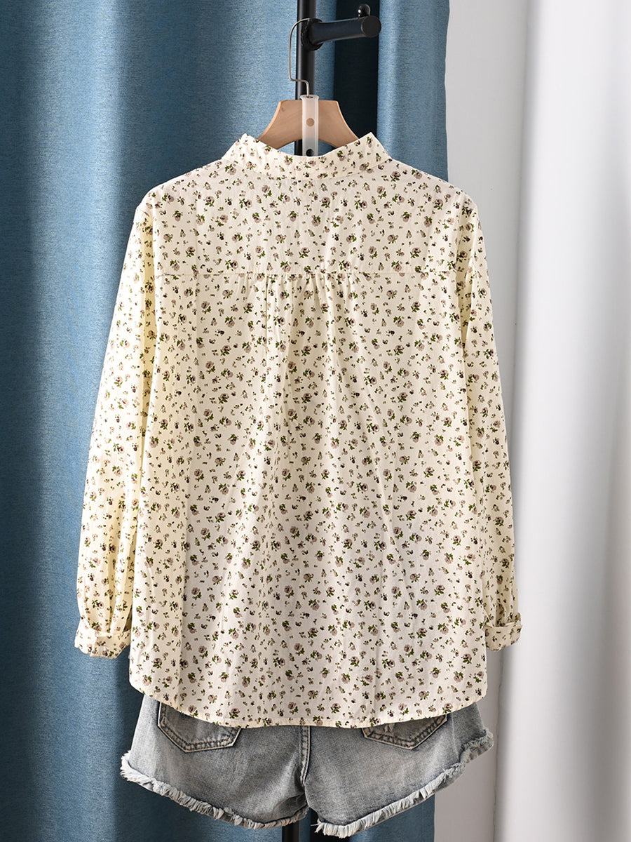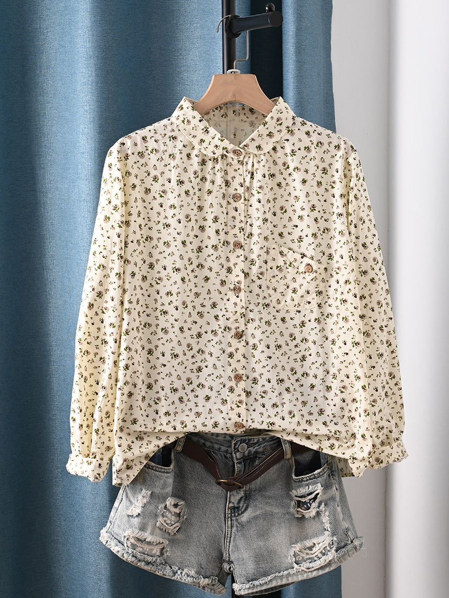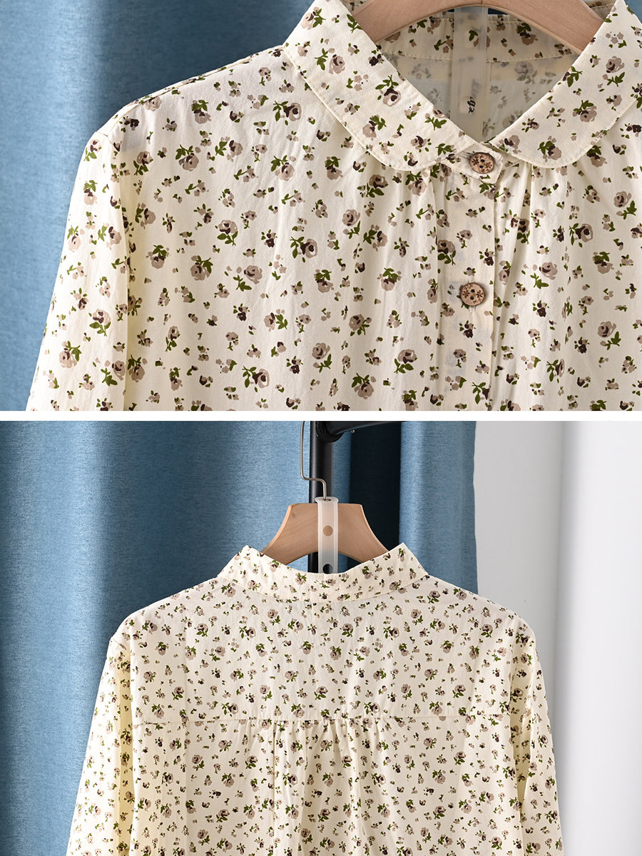 חולצת כותנה פרחונית אומנותית לנשים באביב