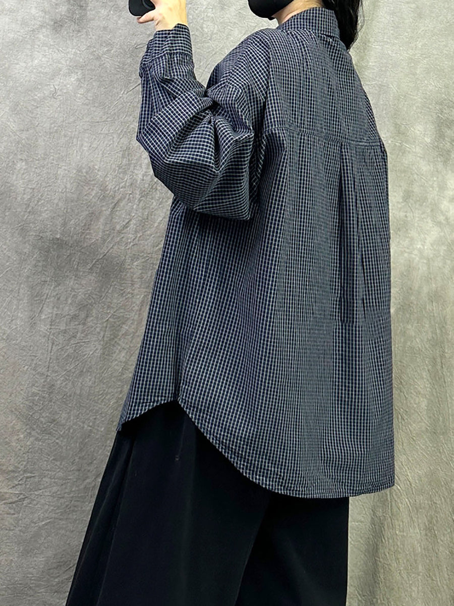חולצת כותנה עם צווארון סריג לנשים בסגנון אביב אמנותי