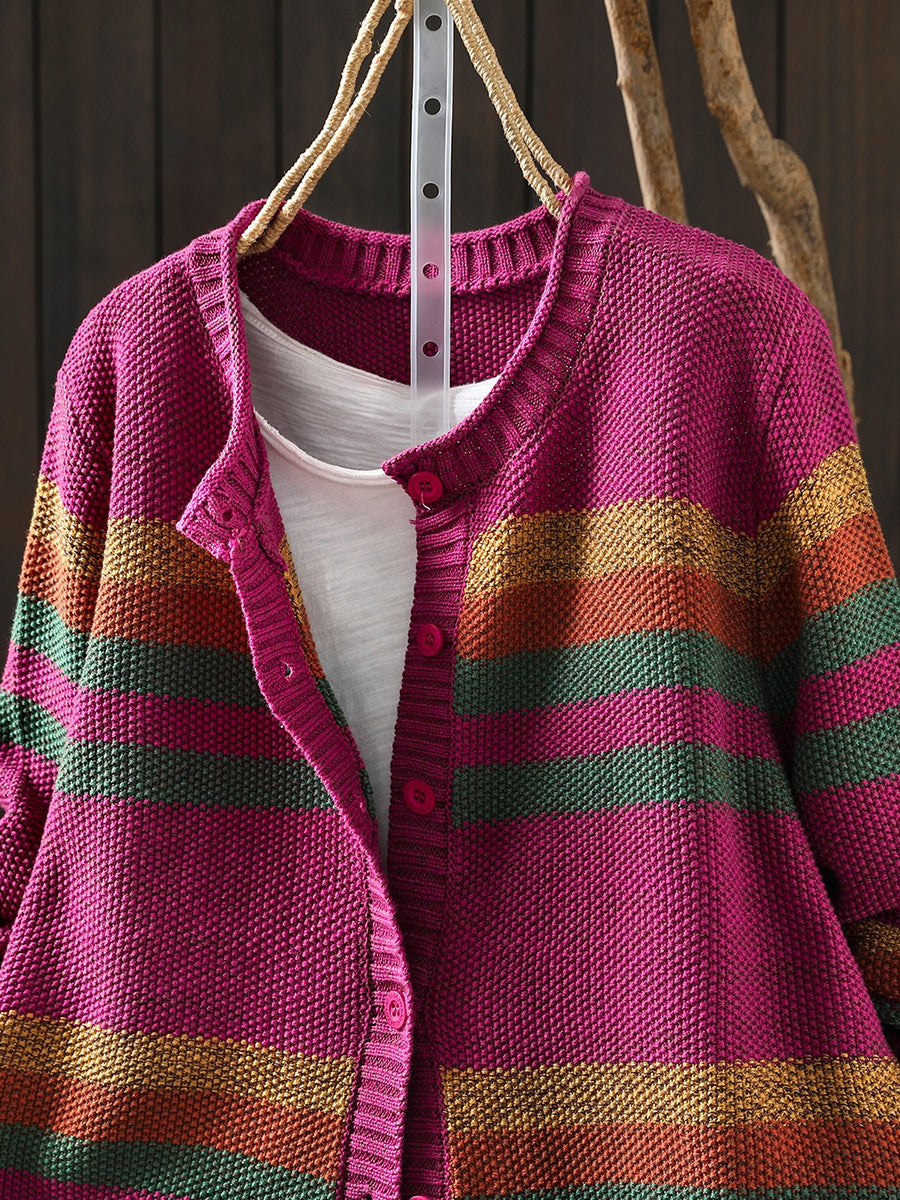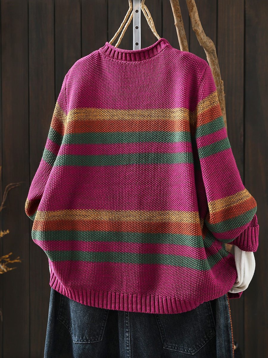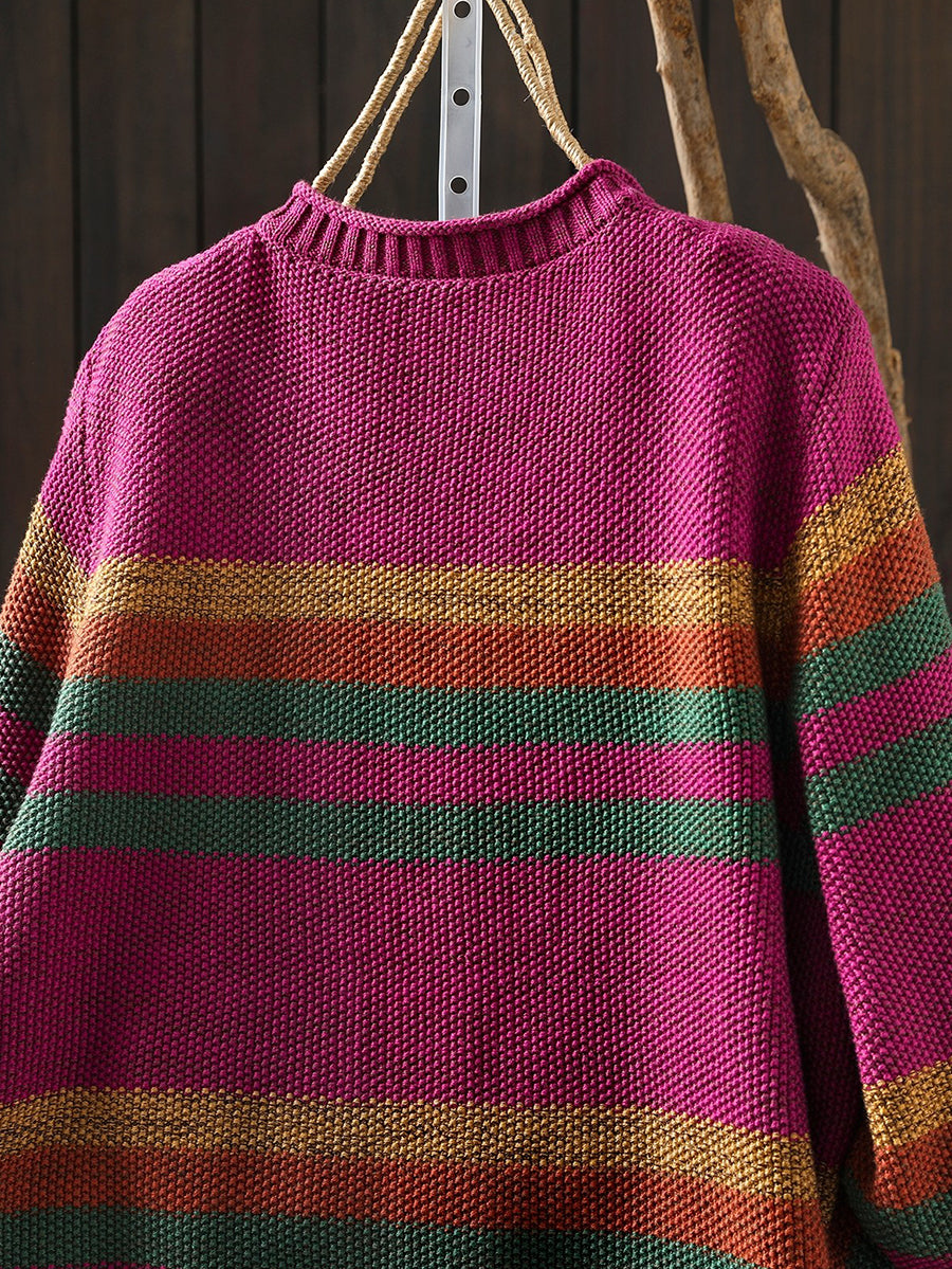 סוודר אביב לנשים עם צווארון O ופסים צבעוניים