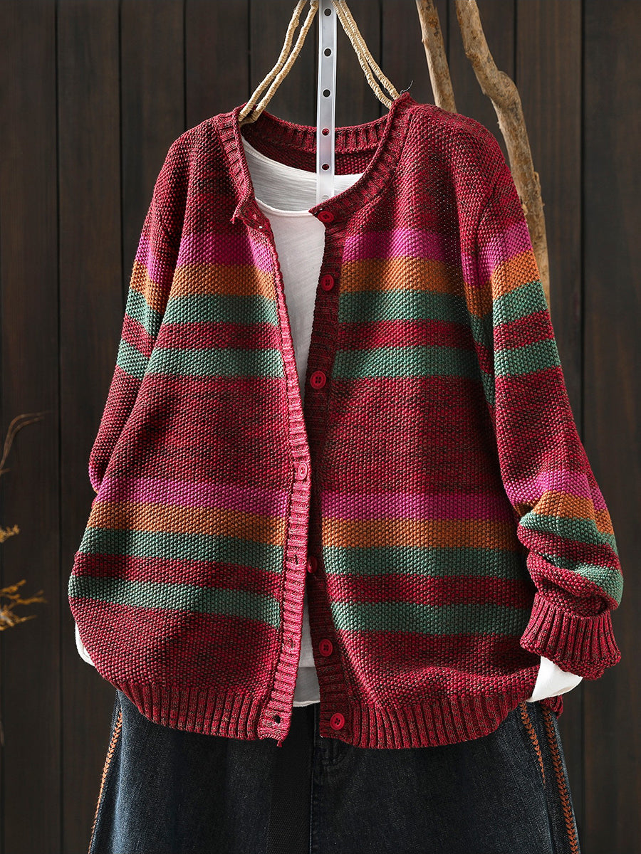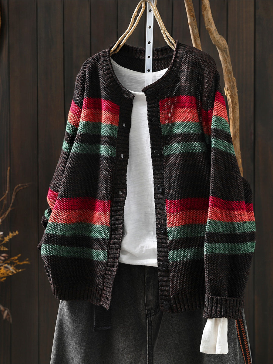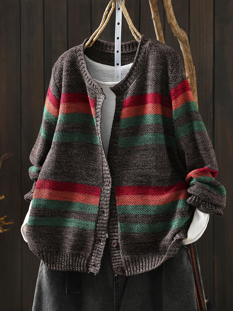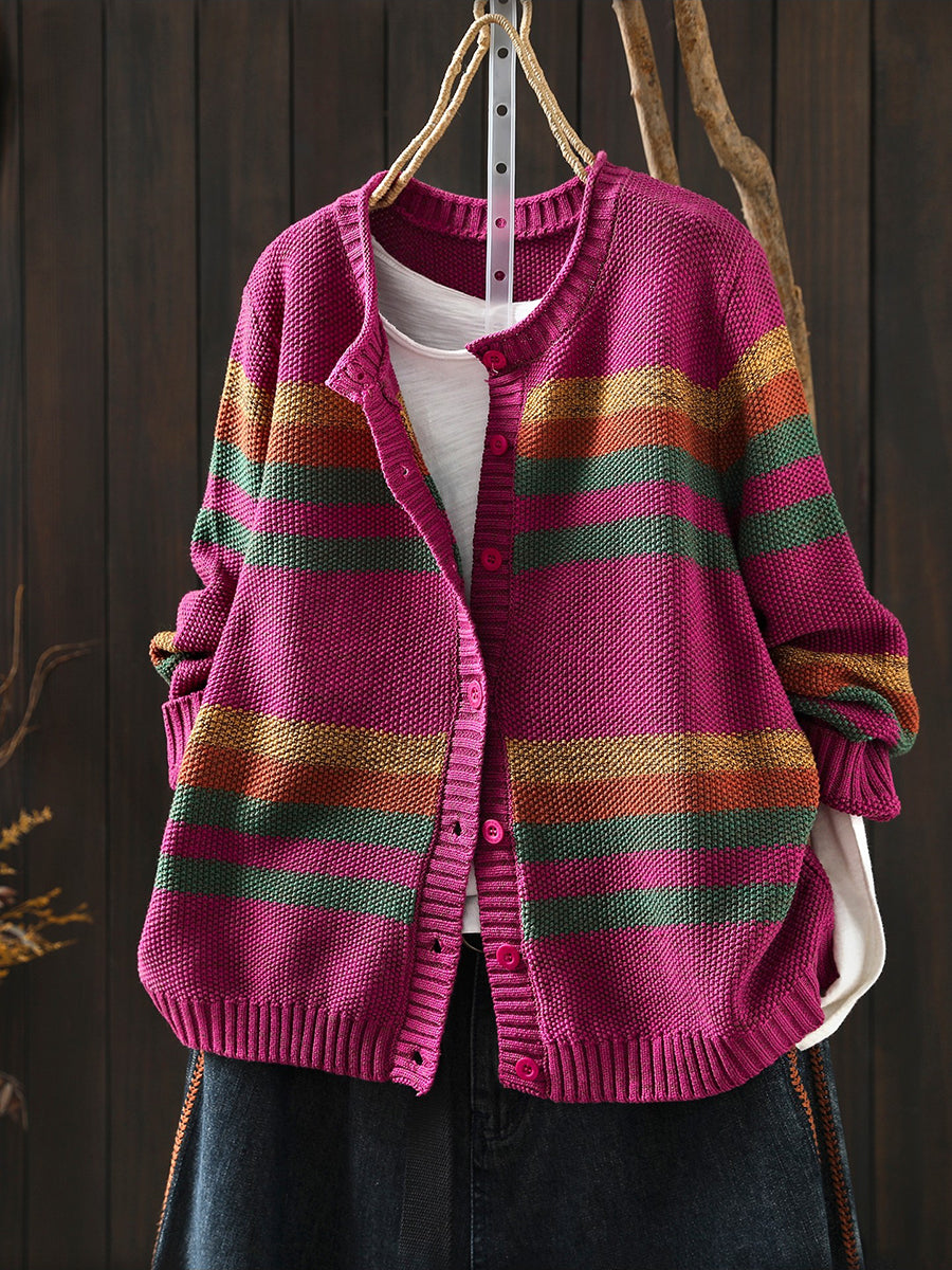 סוודר אביב לנשים עם צווארון O ופסים צבעוניים