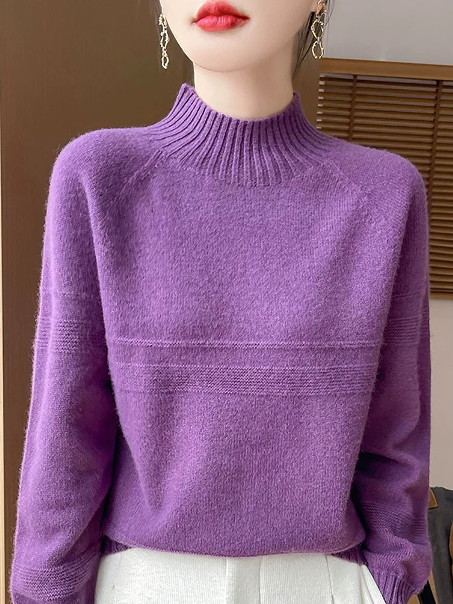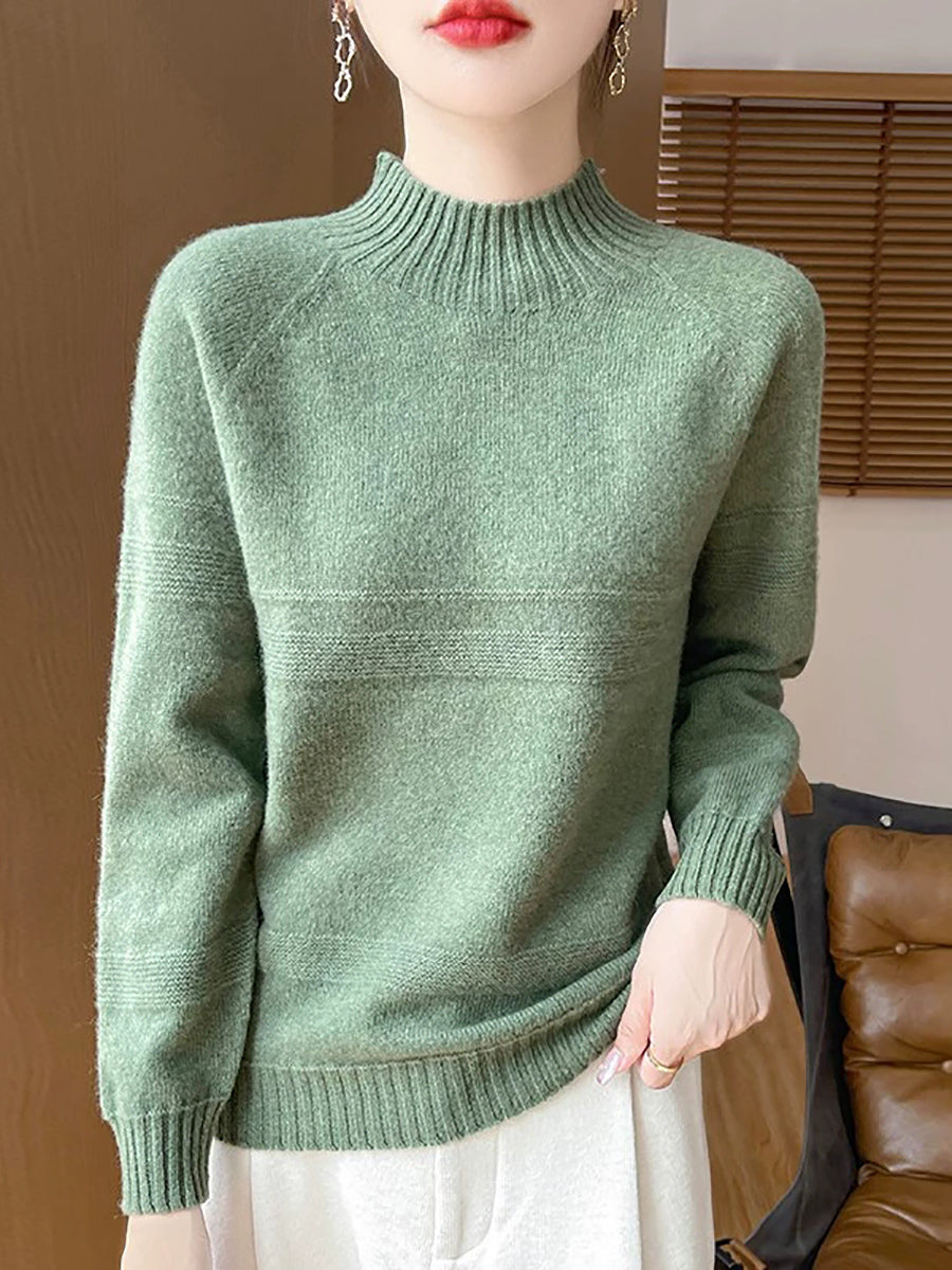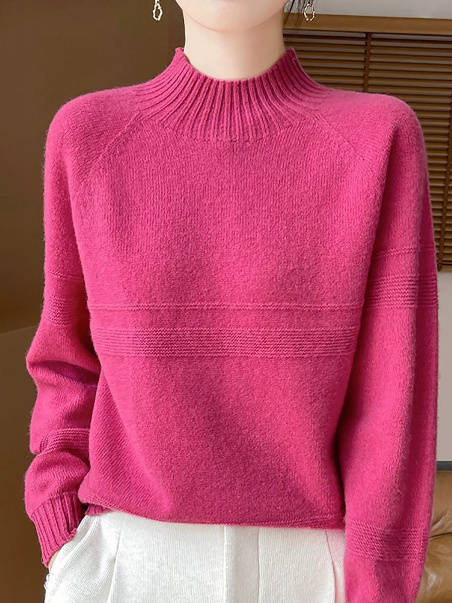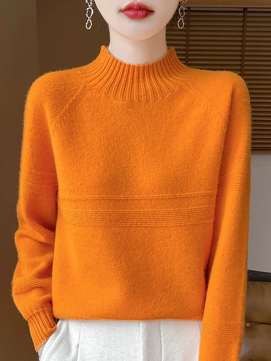 סוודר צמר גולף בצבע טהור לחורף לנשים
