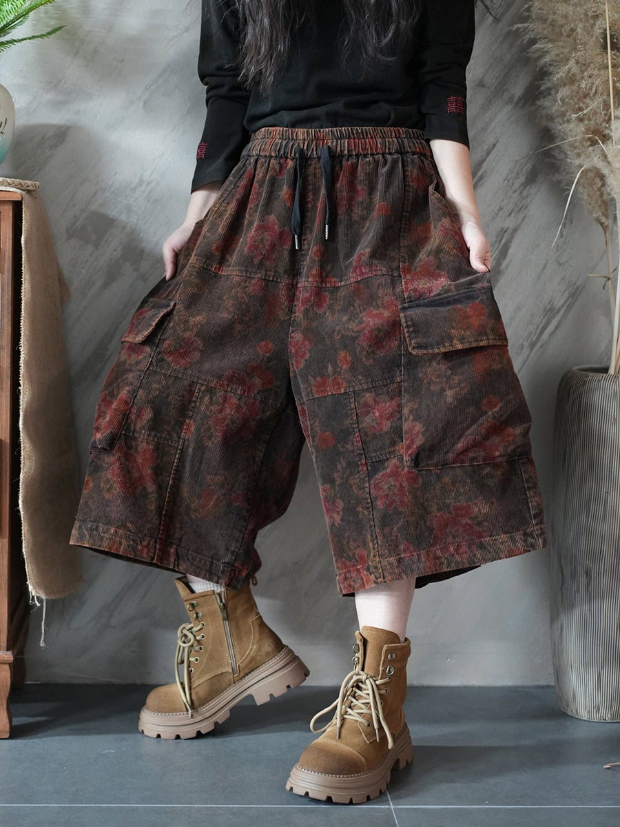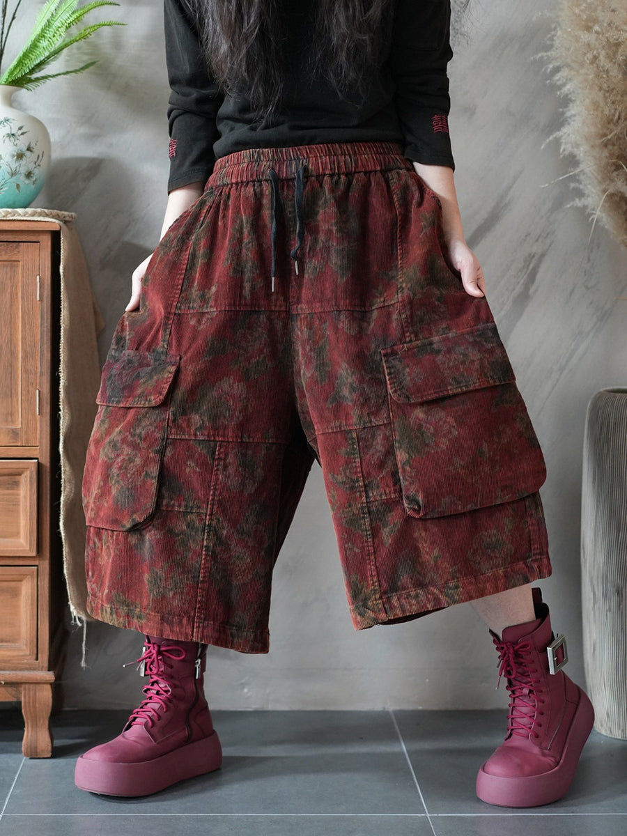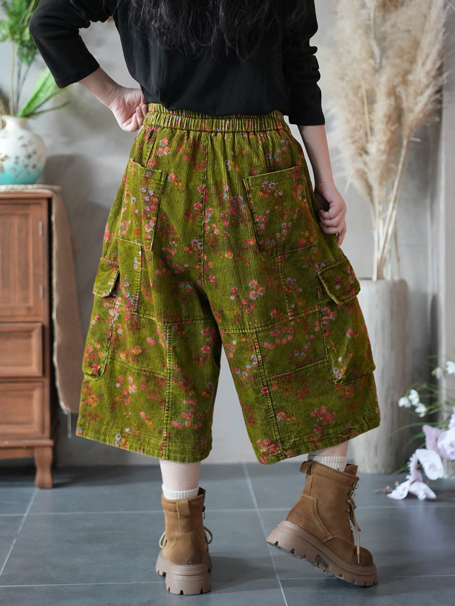 מכנסי קורדרוי רחבים בגזרת אביב לנשים