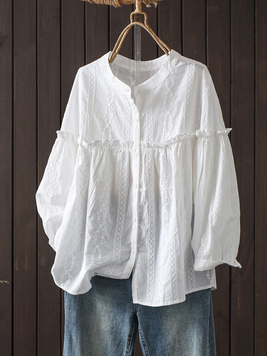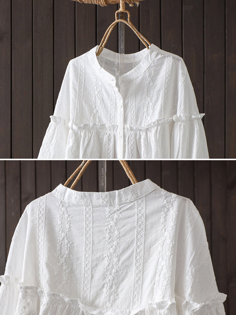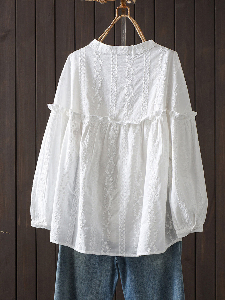 חולצת צווארון עומדת עם רקמה אומנותית לאביב לנשים