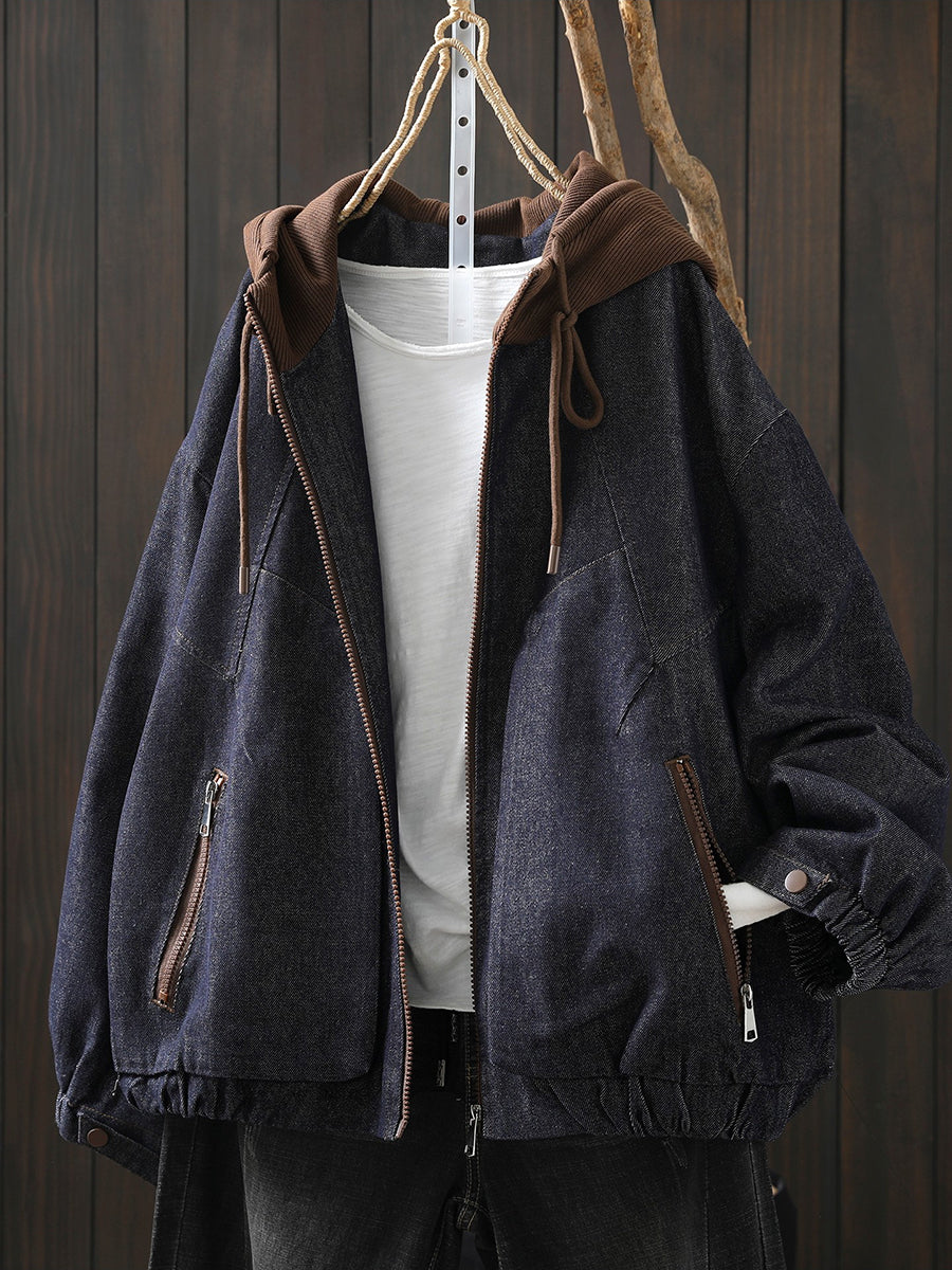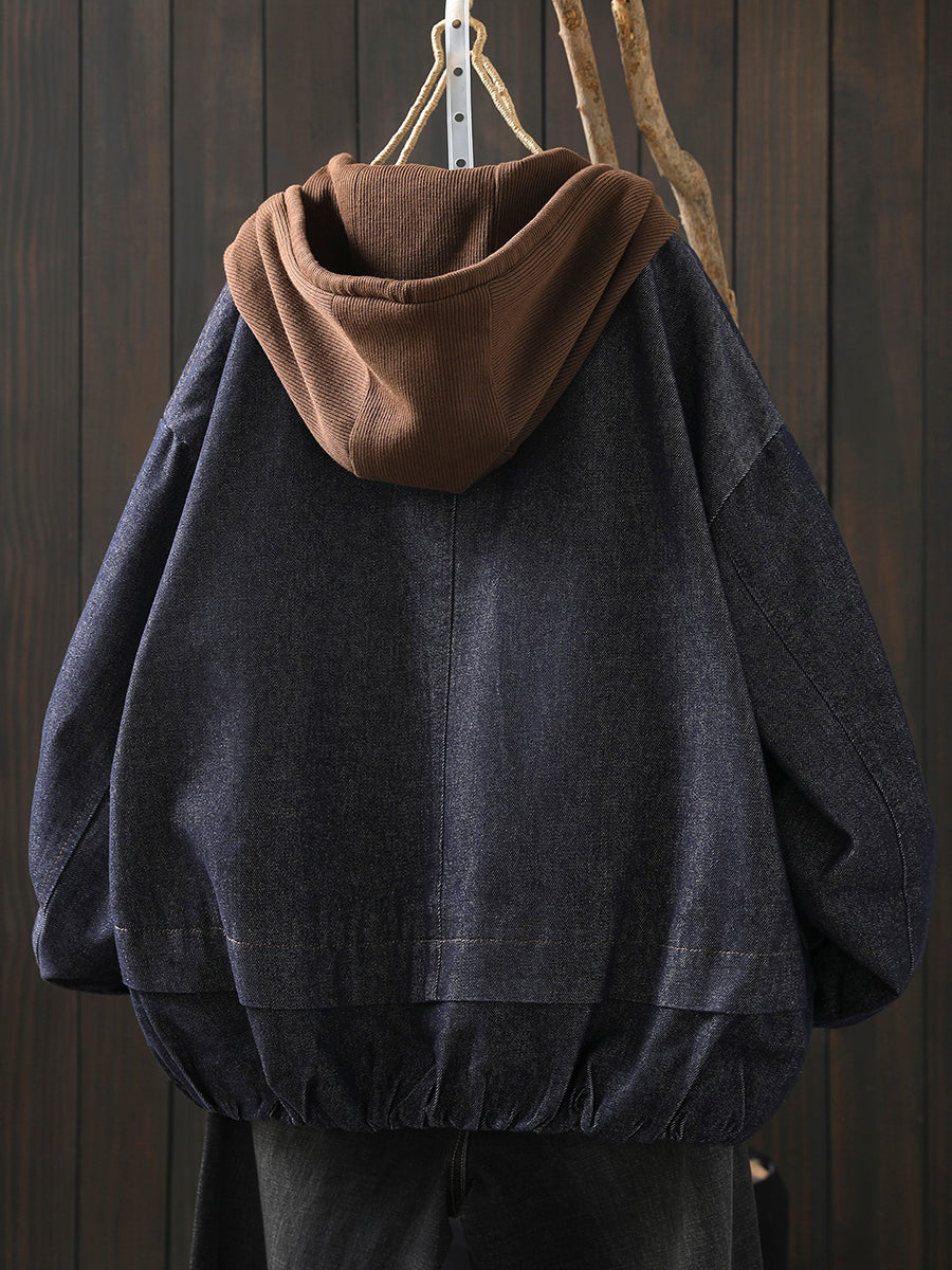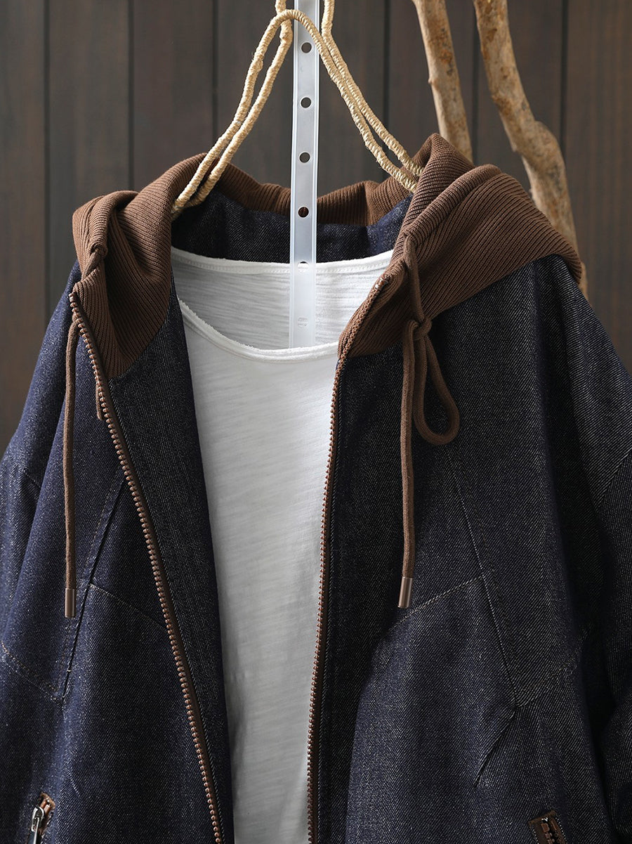 ז'קט ג'ינס עם קפוצ'ון בצבעי רטרו לנשים באביב