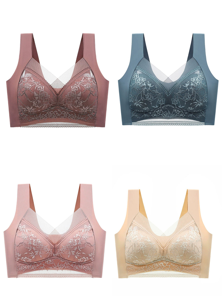 4 חלקים חזייה ללא חוטים לנשים, תחרה אמנותית, חלק אחד