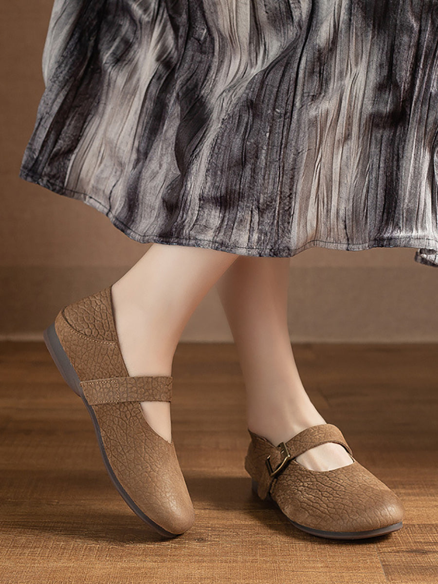 נעלי קיץ מעור אמיתי עם עקב נמוך לנשים