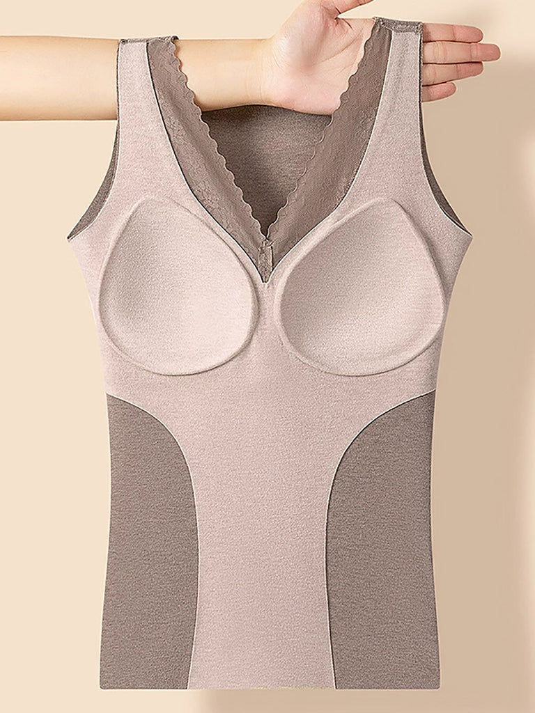 אפוד תחתון עם צווארון V בצבע טהור בסתיו לנשים