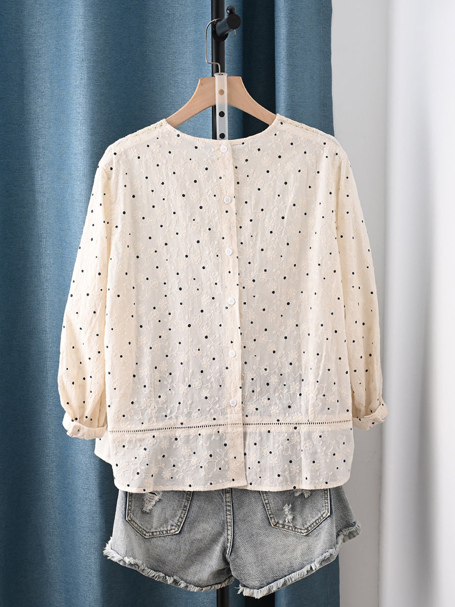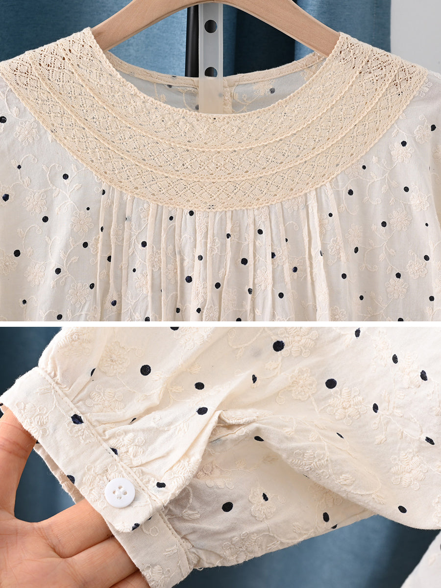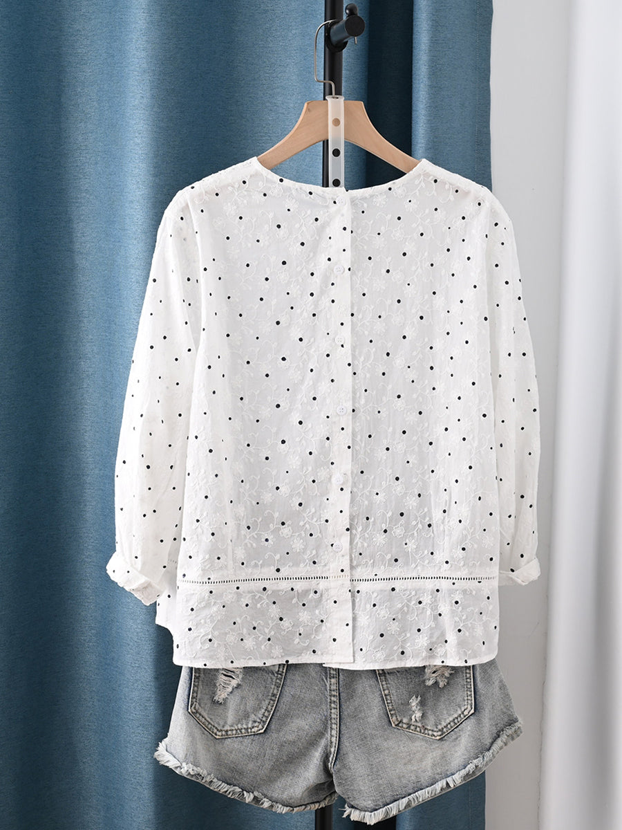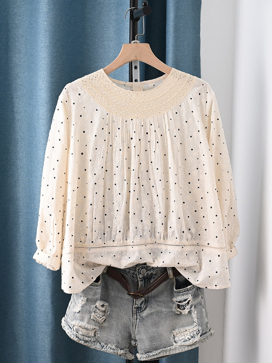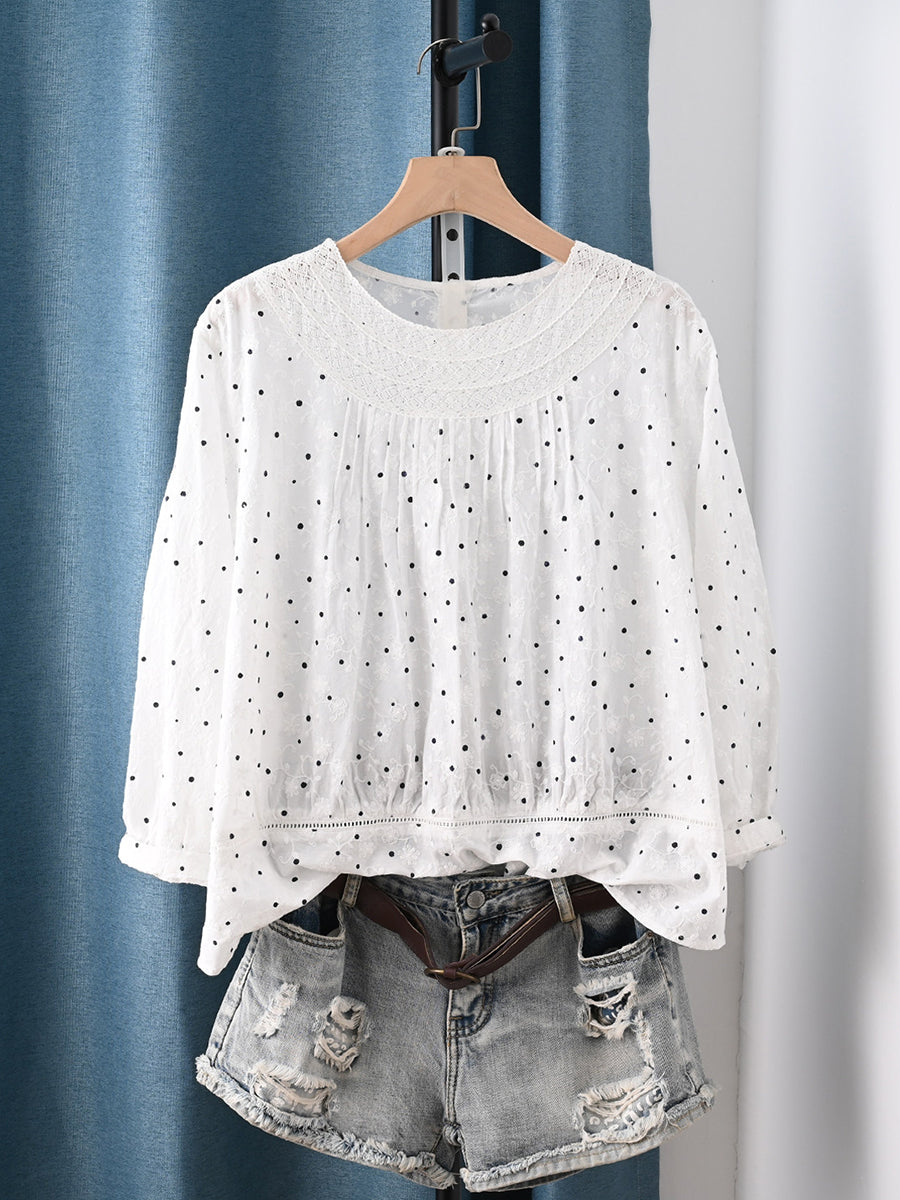 חולצה לנשים עם רקמת נקודות באביב אמנותית 100% כותנה תחרה