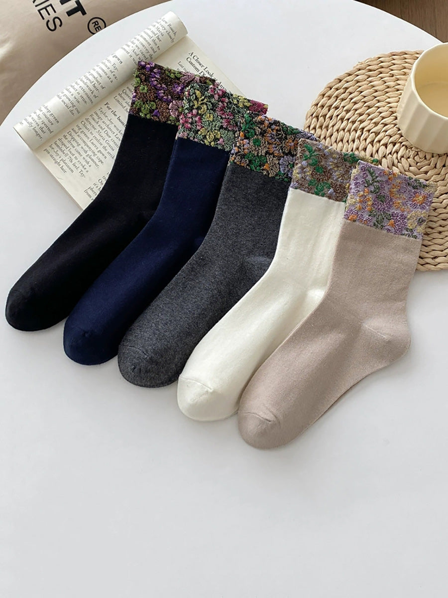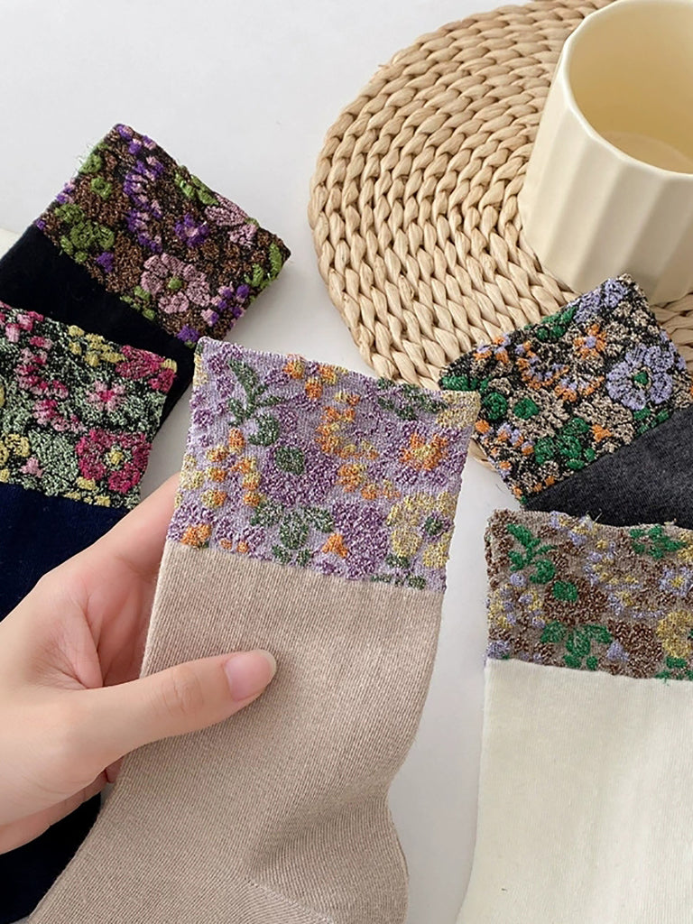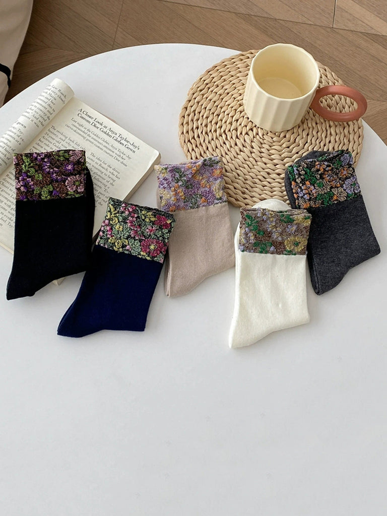 5 זוגות גרביים וינטג' פרחוניות אקארד לנשים