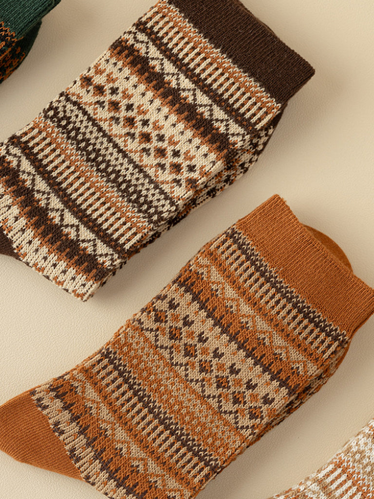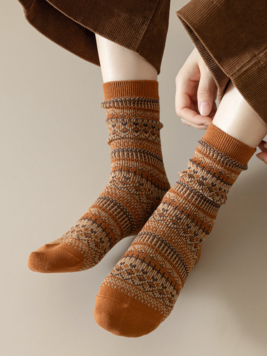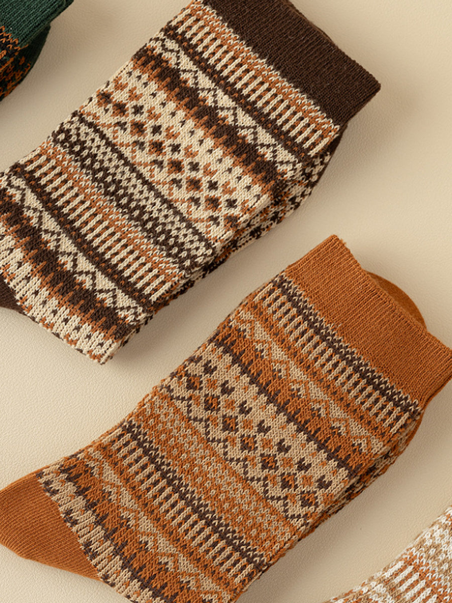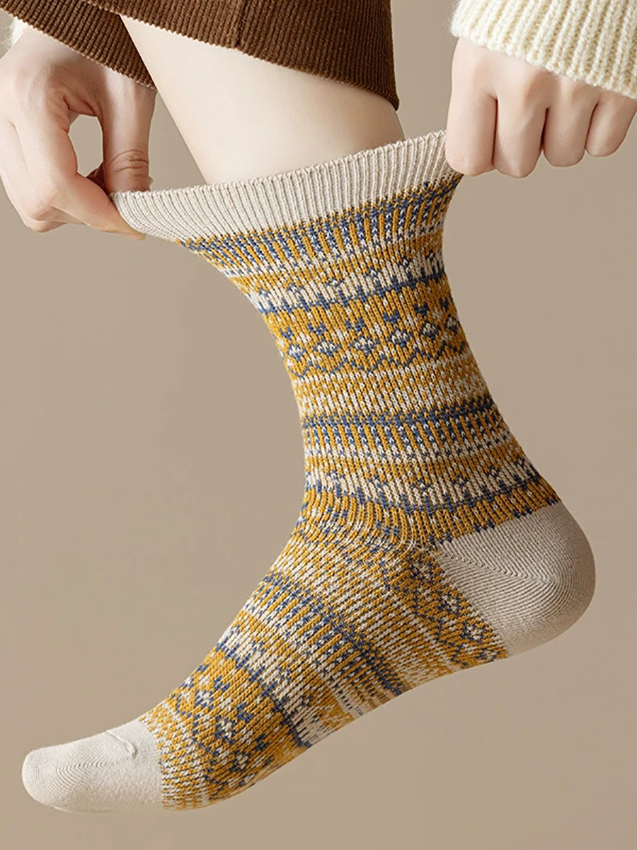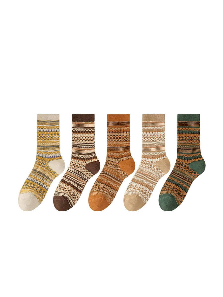 5 זוגות גרבי כותנה לנשים עם פסים וינטג' לחורף