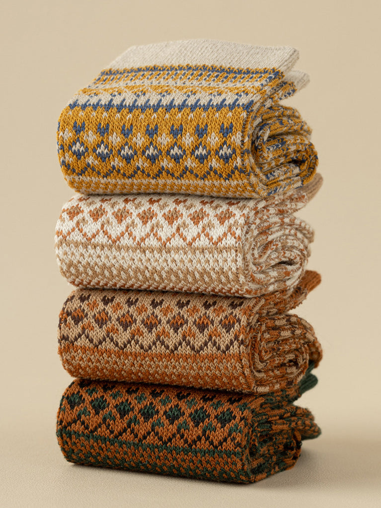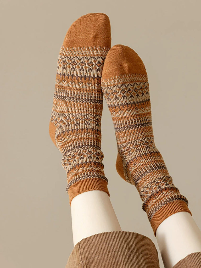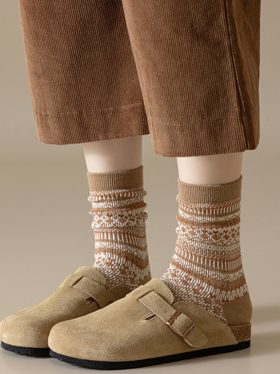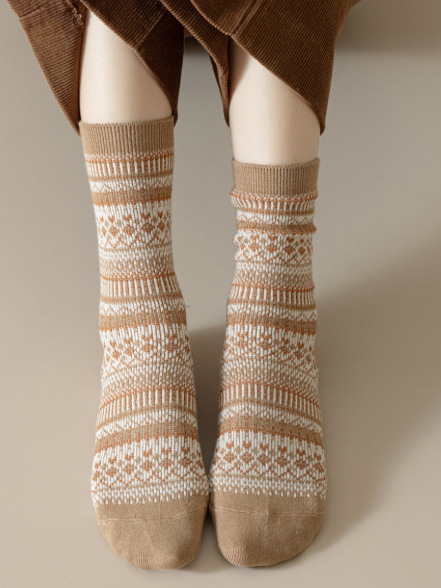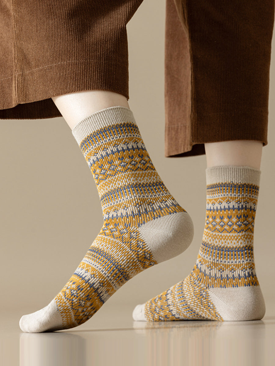 5 זוגות גרבי כותנה לנשים עם פסים וינטג' לחורף