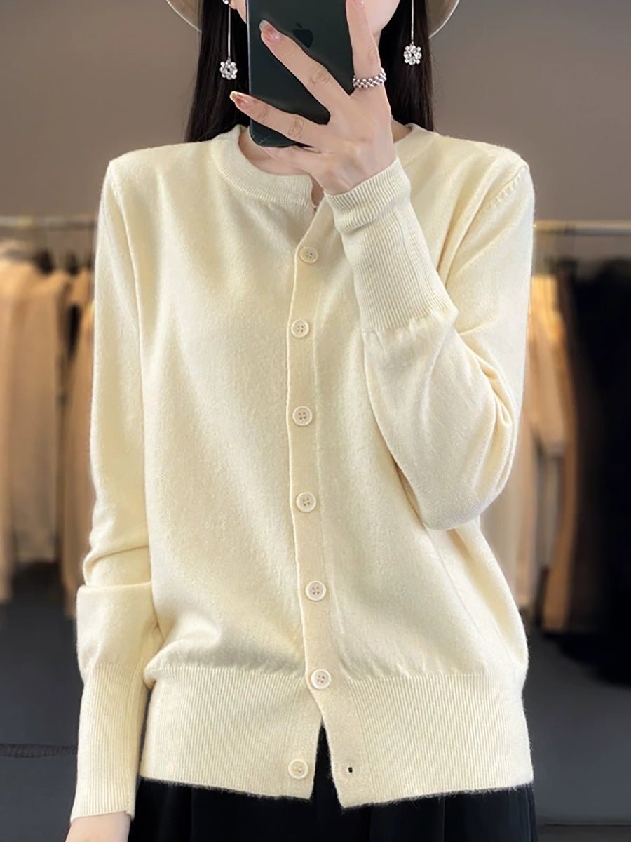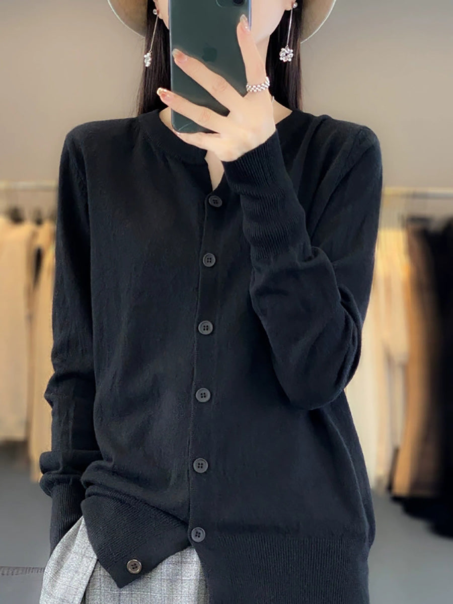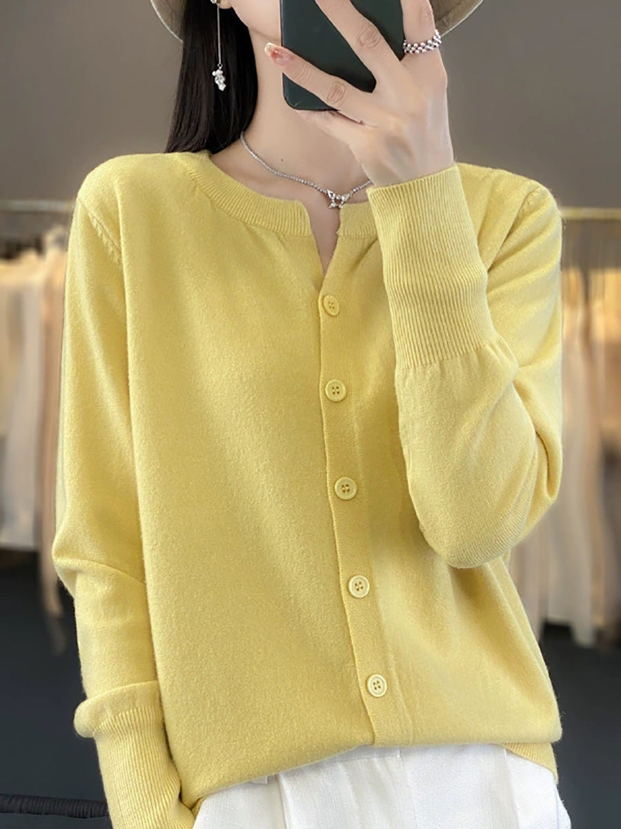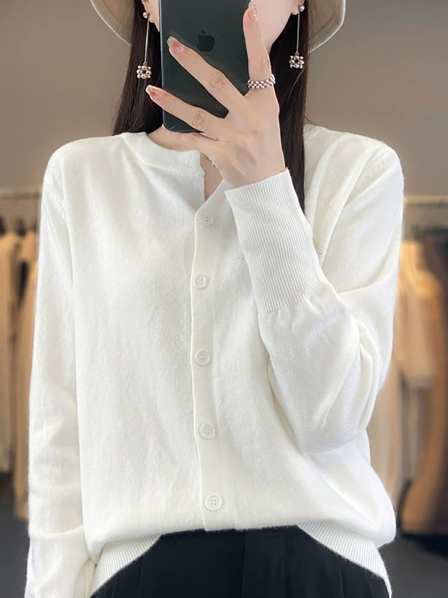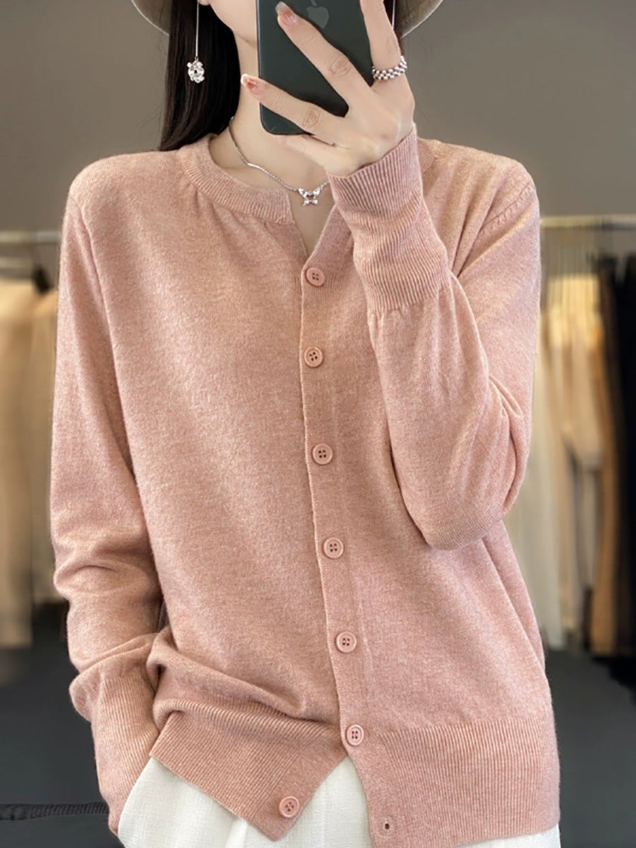 סוודר O-צוואר בצבע טהור לאביב לנשים