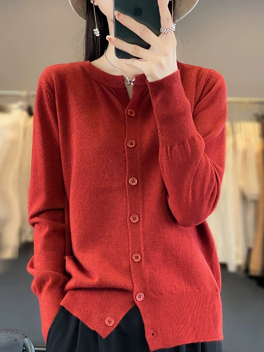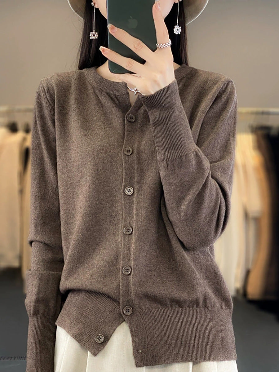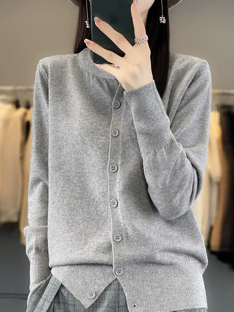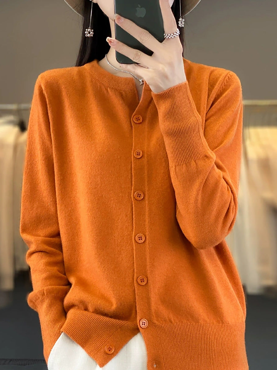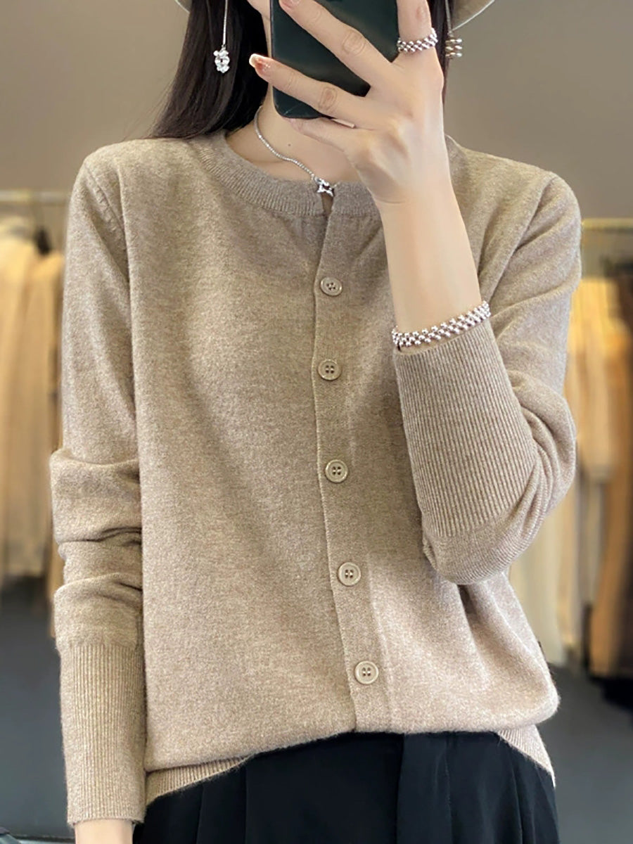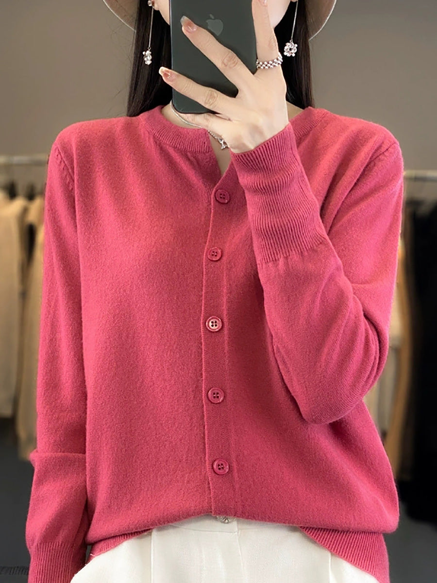 סוודר O-צוואר בצבע טהור לאביב לנשים