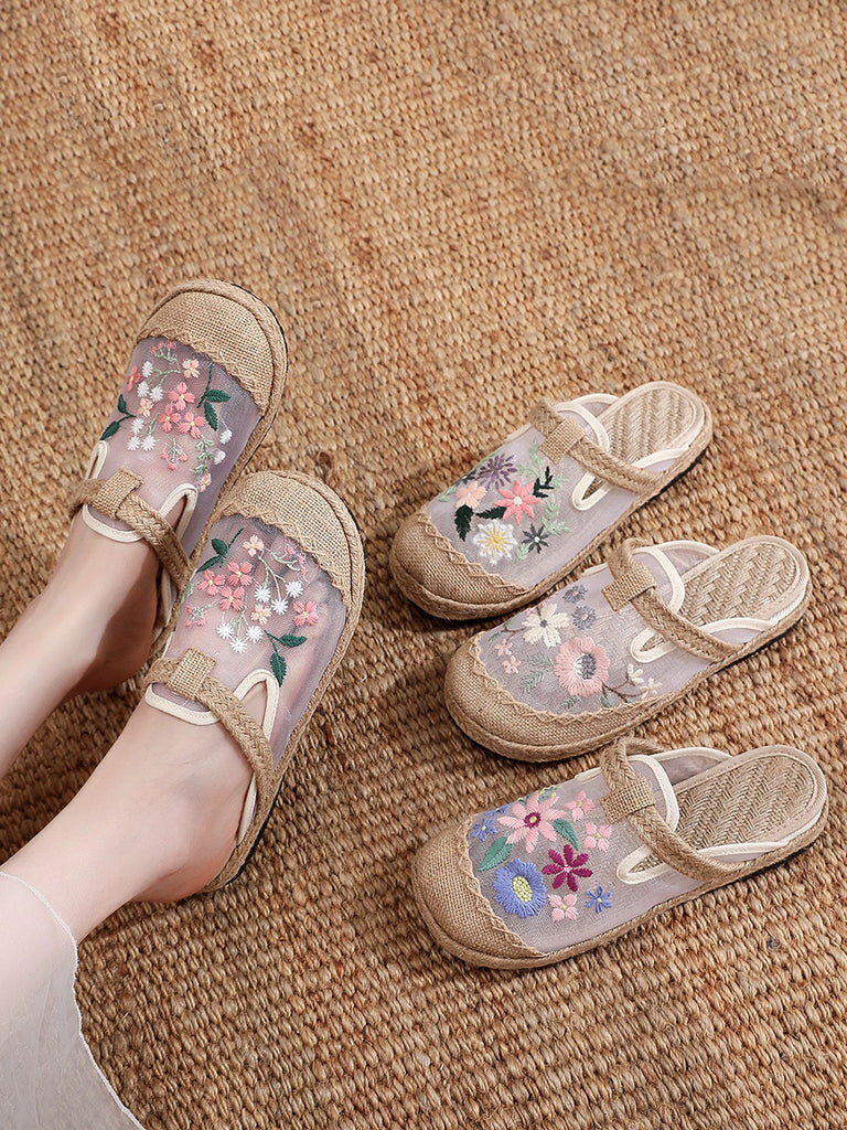 נעלי בית עם רקמת פרחים לקיץ לנשים