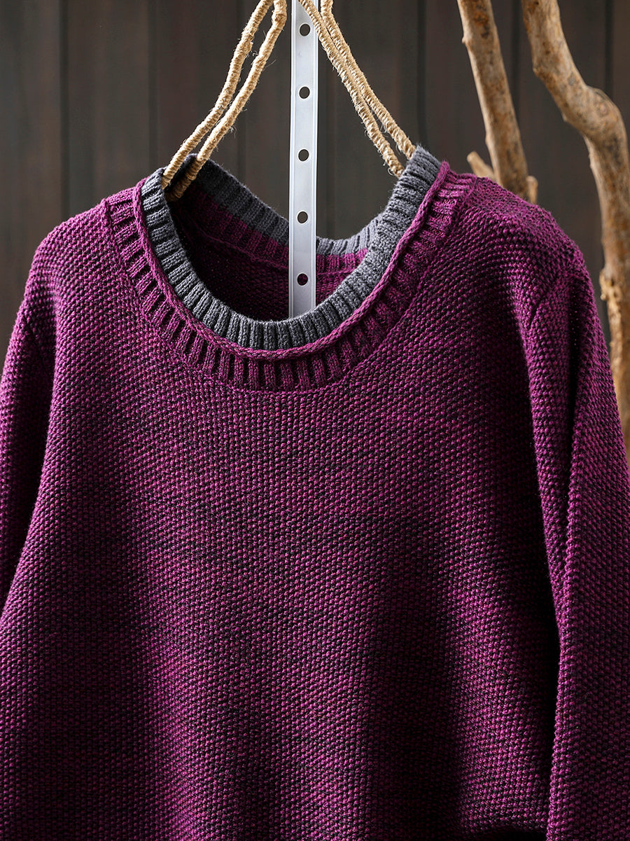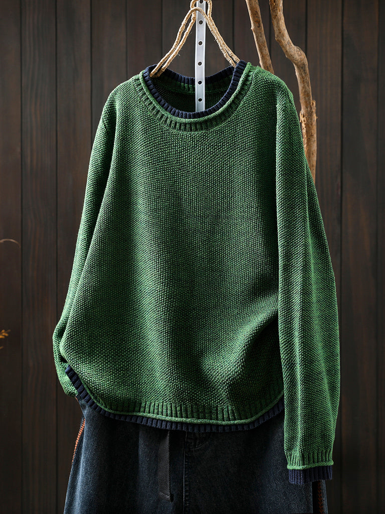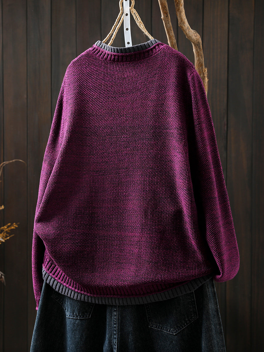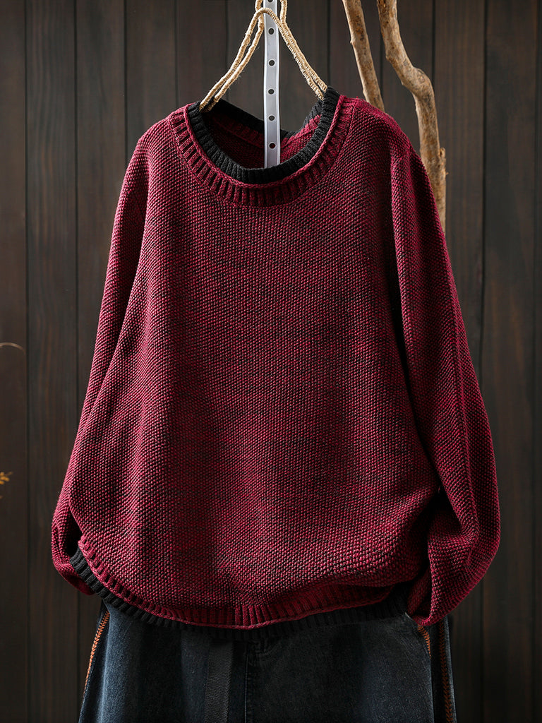 סוודר סרוג עם צווארון O וצבעים צבעוניים בסתיו לנשים