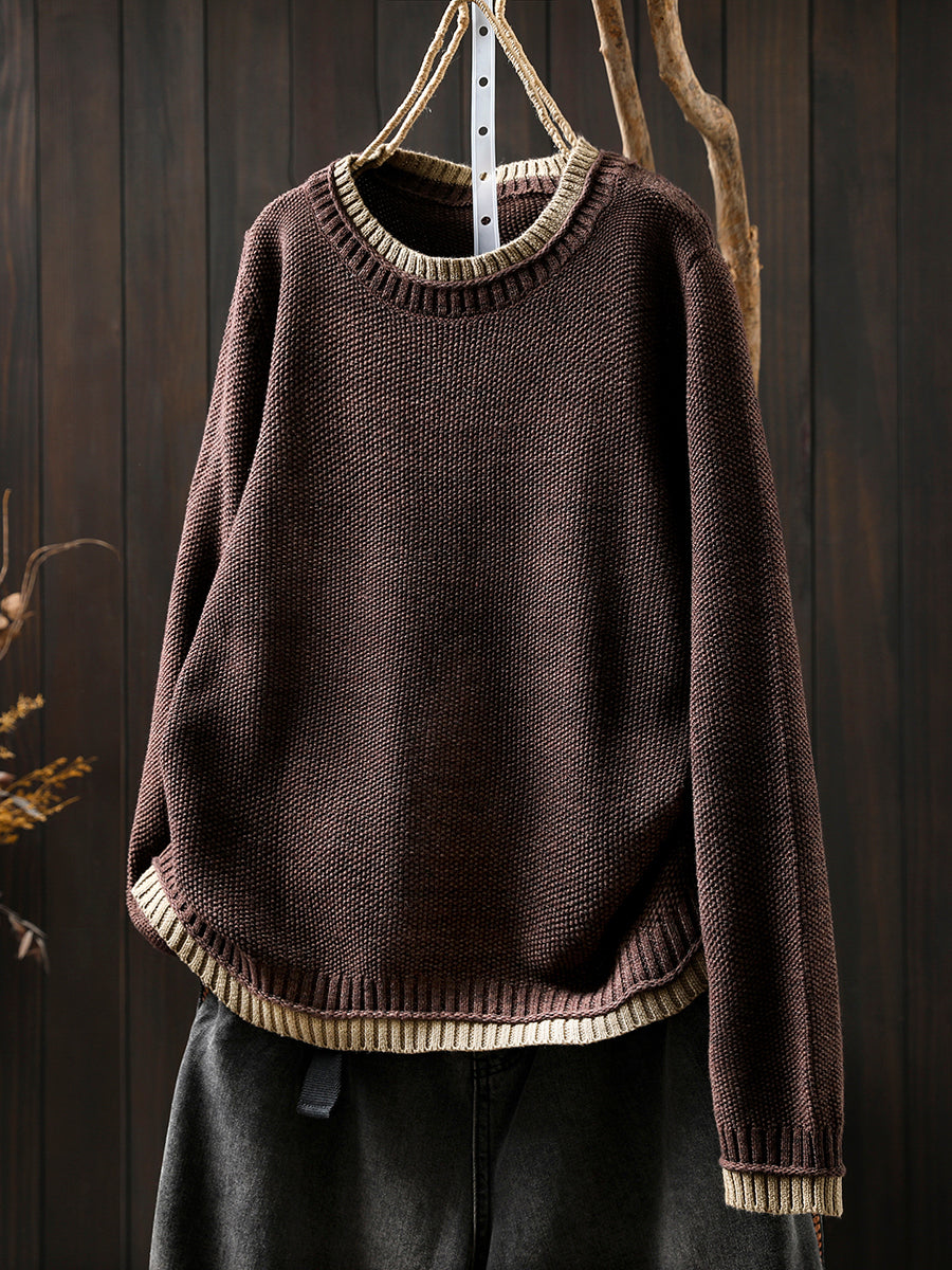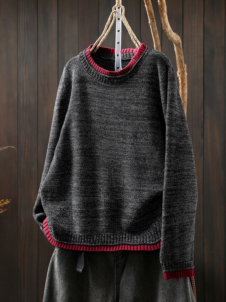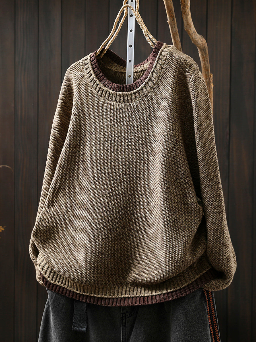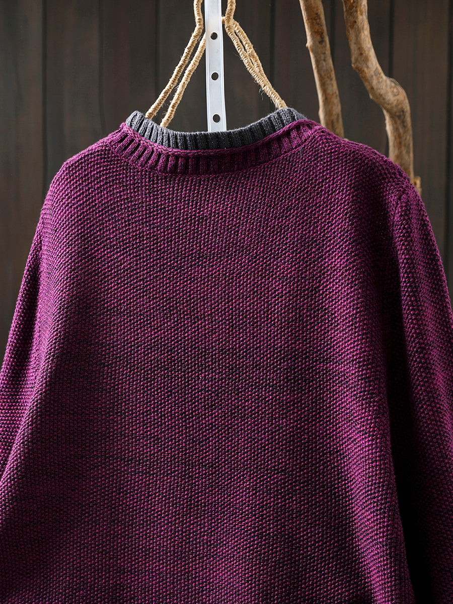 סוודר סרוג עם צווארון O וצבעים צבעוניים בסתיו לנשים