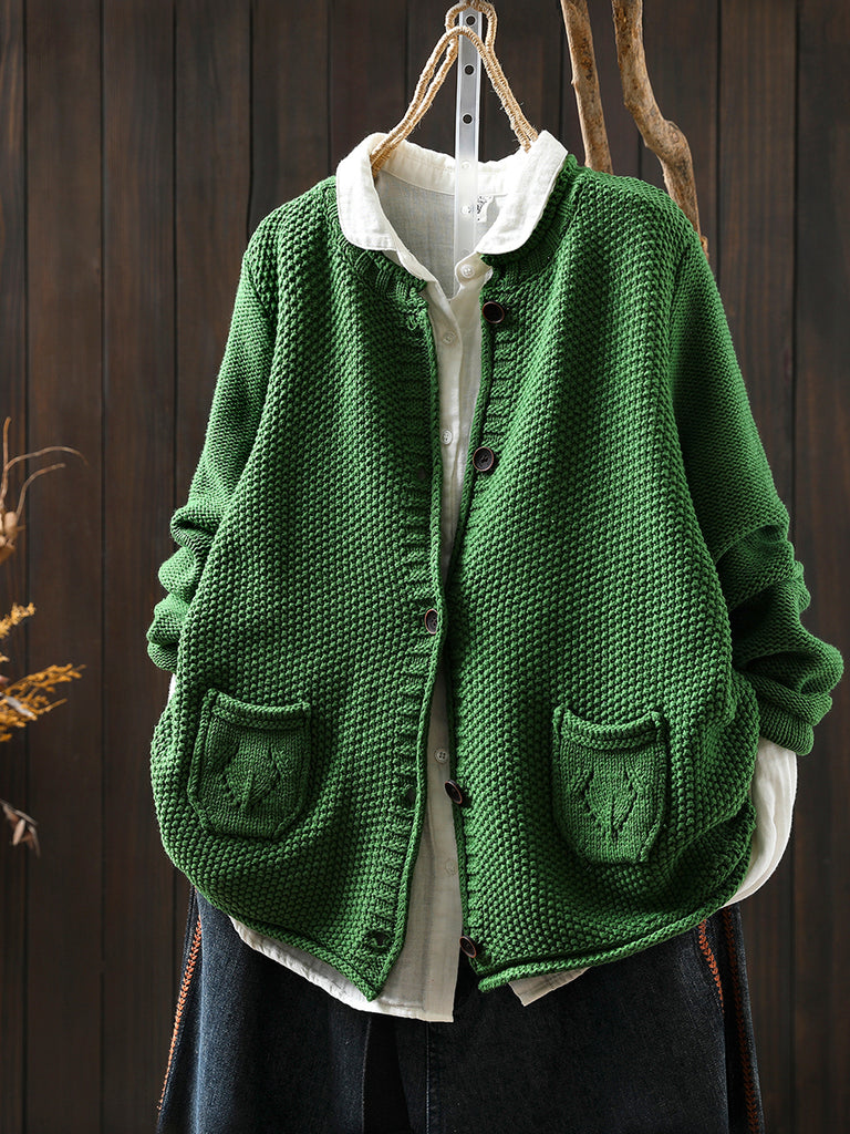 סוודר סרוג בצבע טהור אומנותי לנשים עם צווארון O