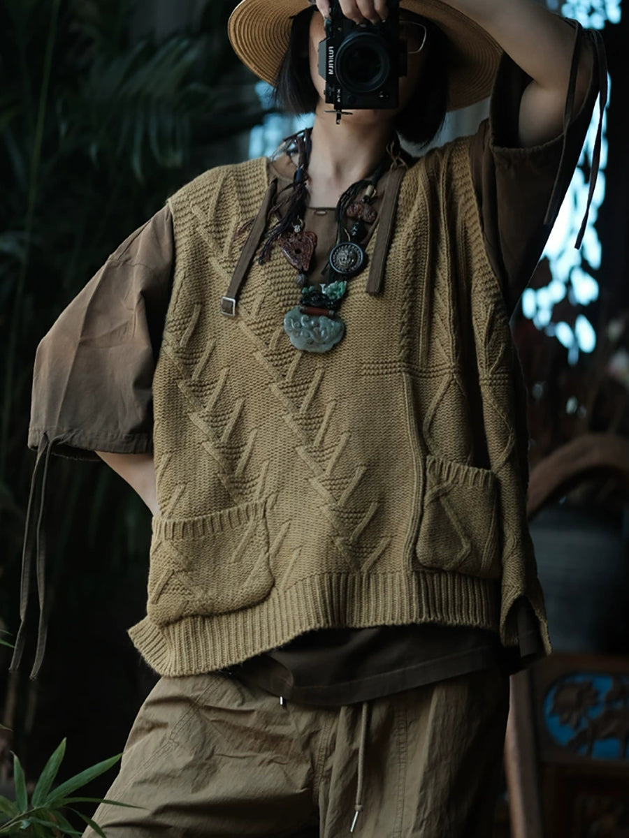 אפוד צמר עם צווארון V בצבע טהור בסתיו לנשים