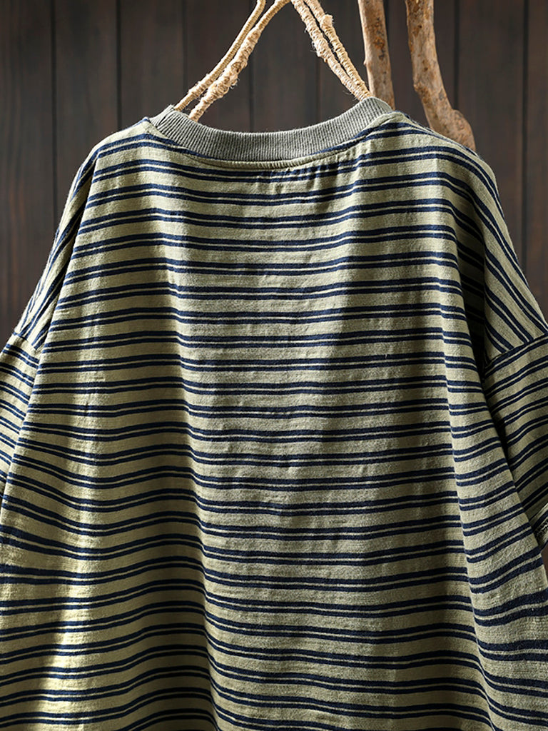 חולצת O-צוואר עם פסים מזדמנים לקיץ לנשים 100% כותנה