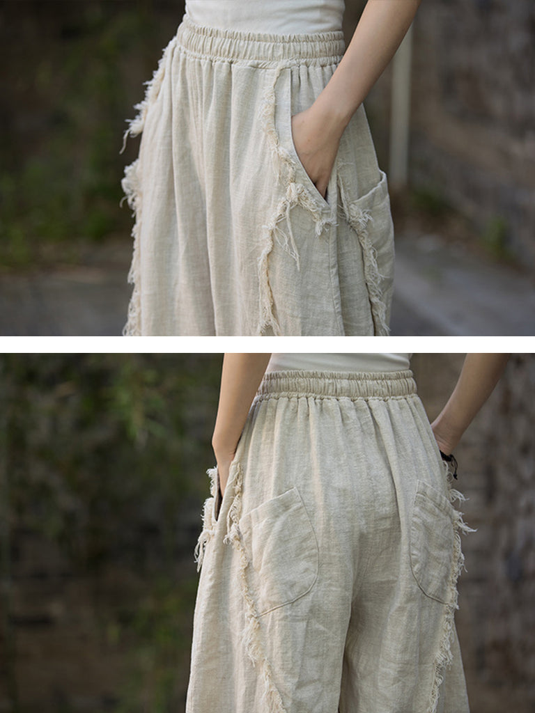נשים קיץ לבוש Raw-edge מכנסי הרמון ראמי