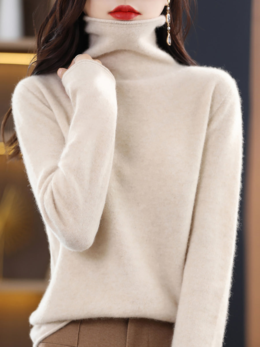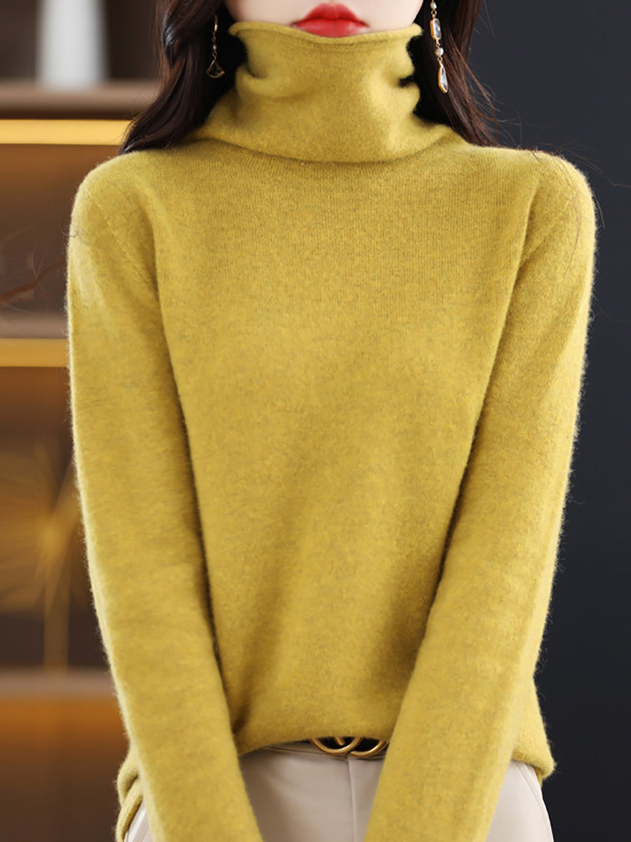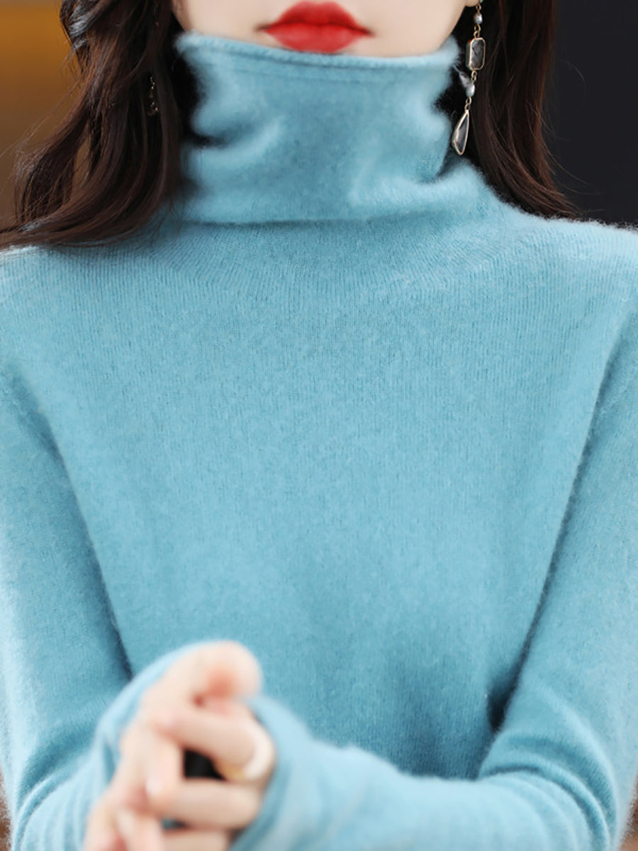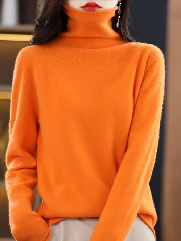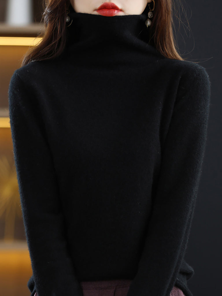סוודר גולף בצבע טהור מזדמן לחורף לנשים