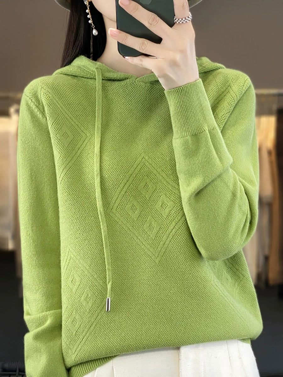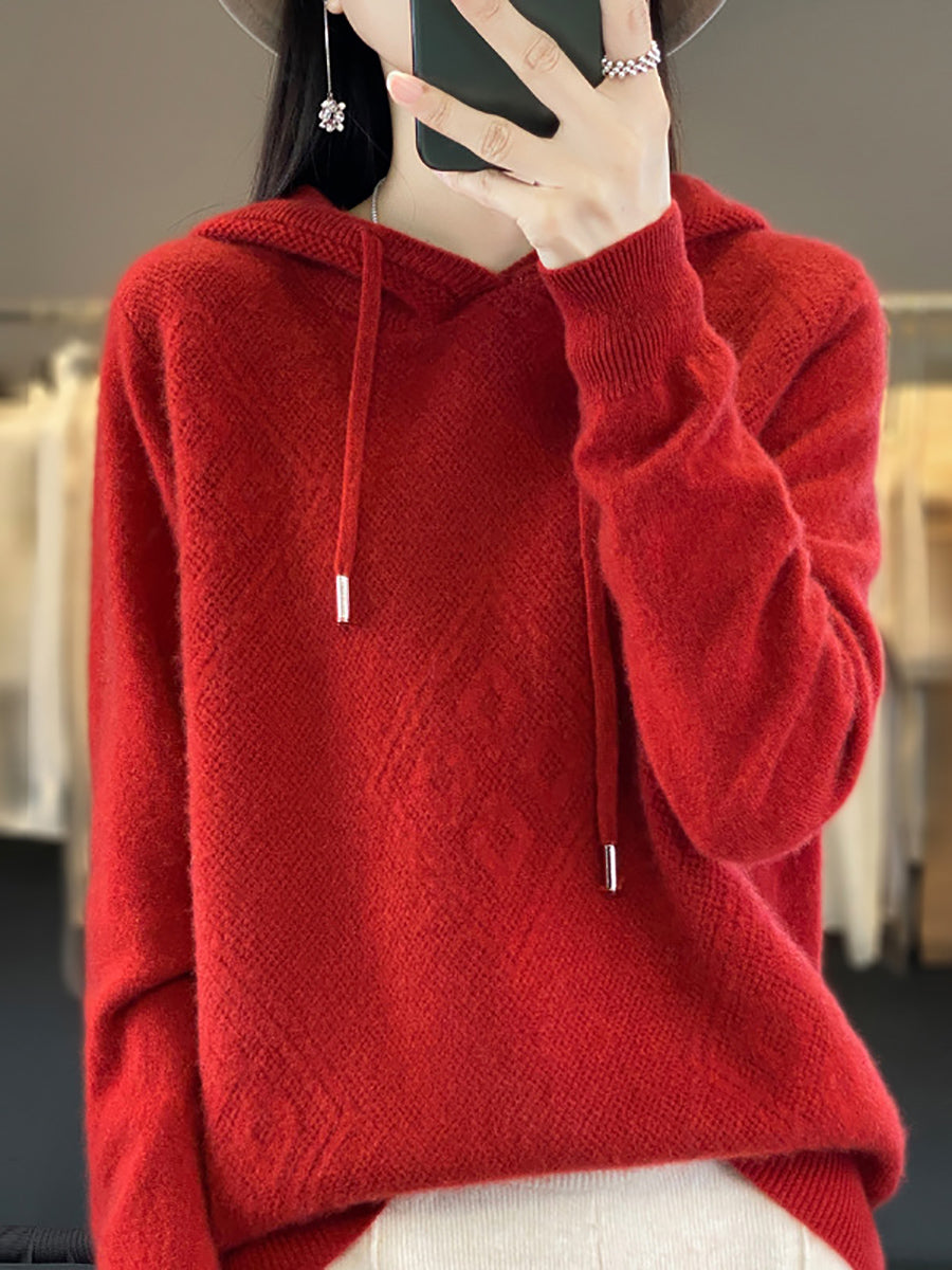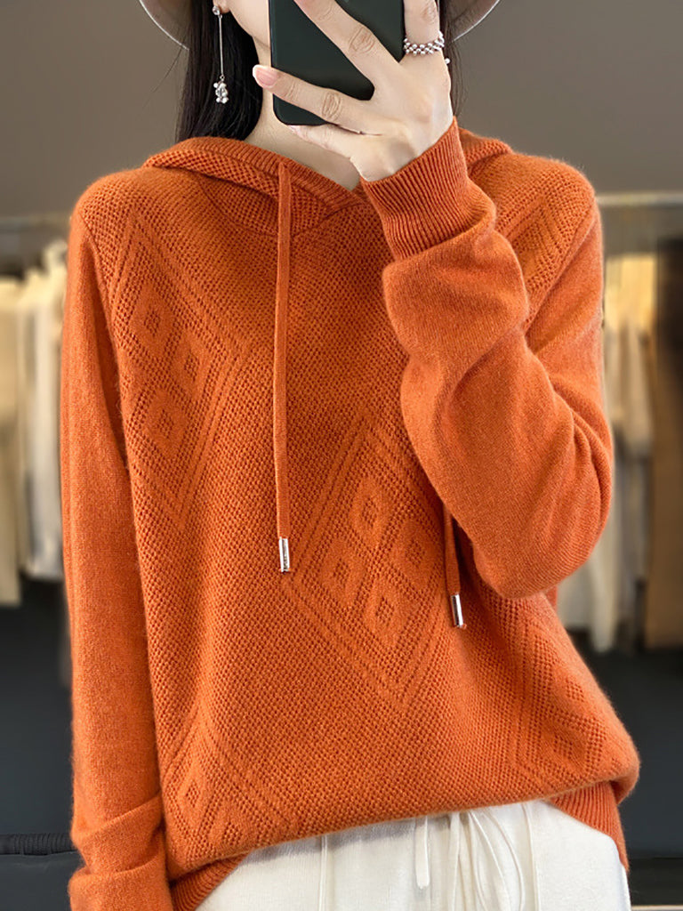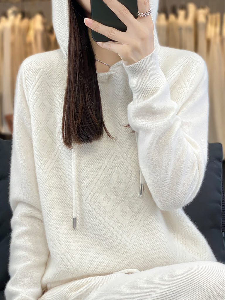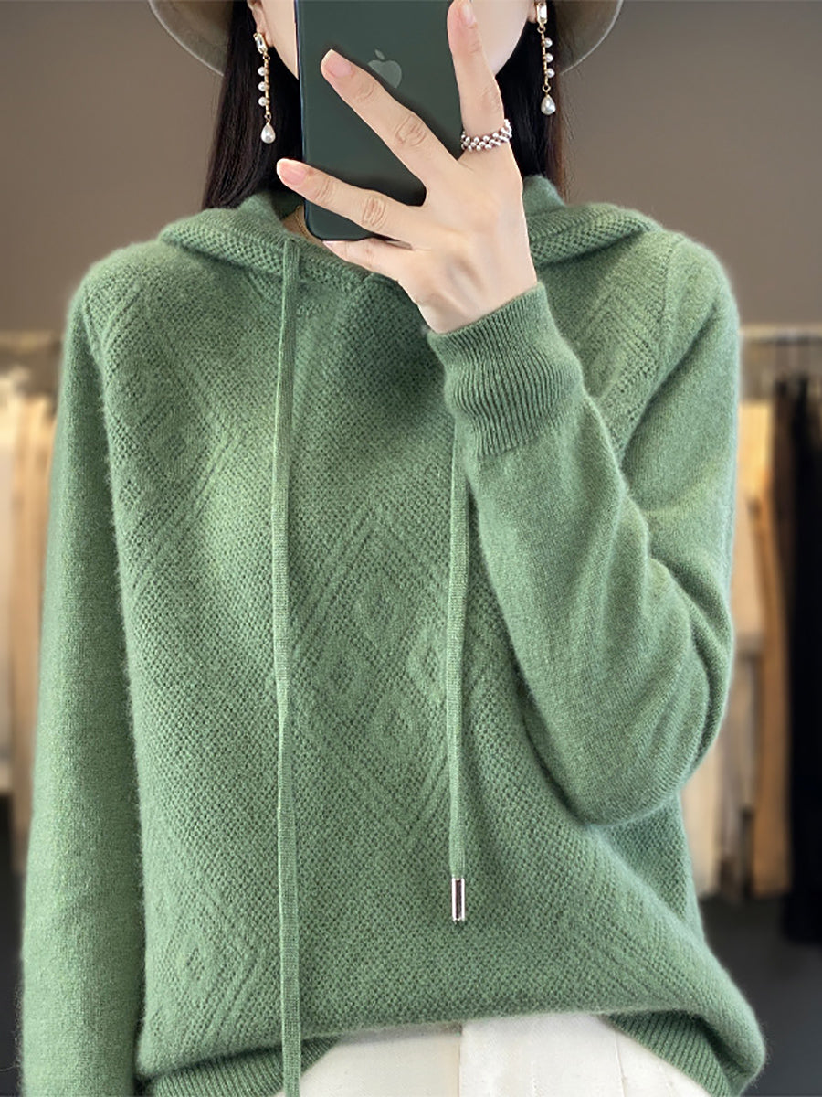 סוודר צמר סרוג עם קפוצ'ון ורוומבוס לחורף לנשים