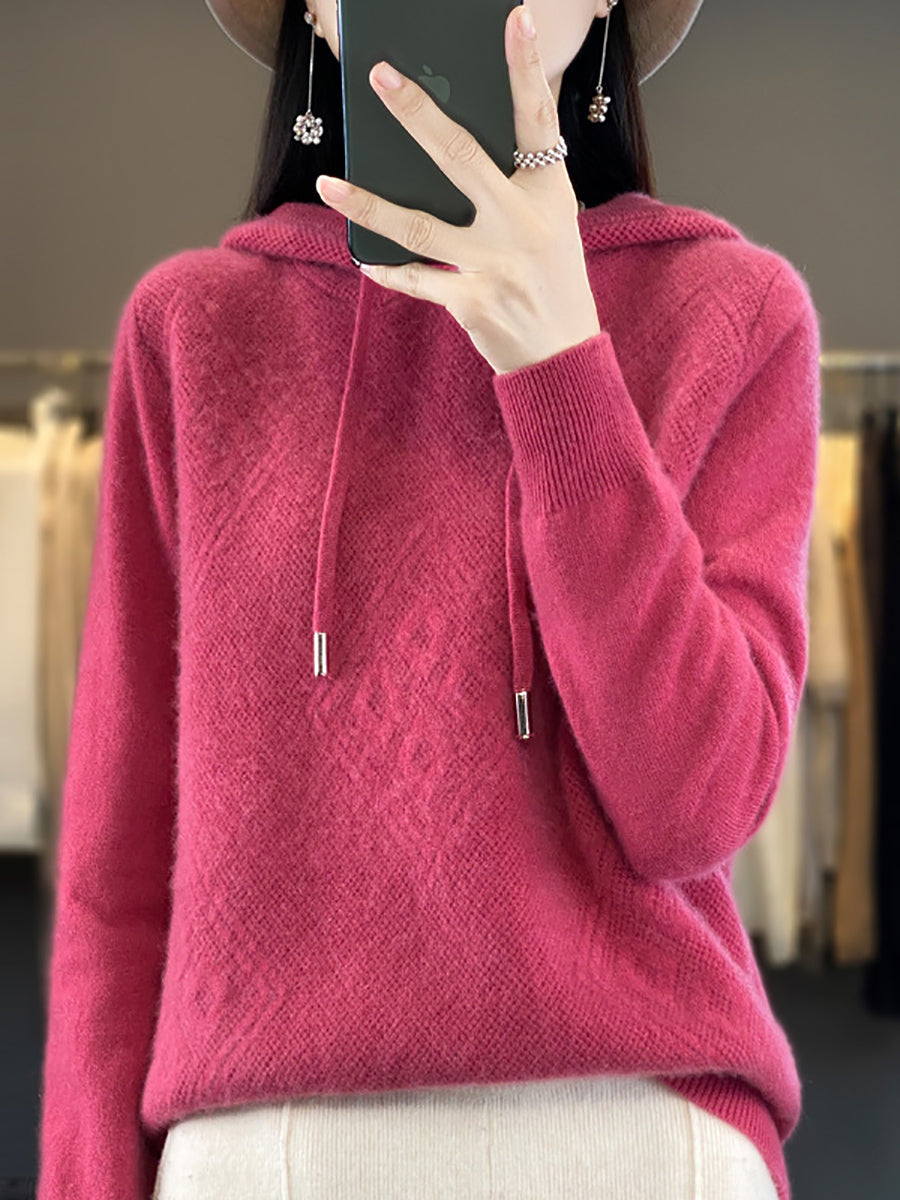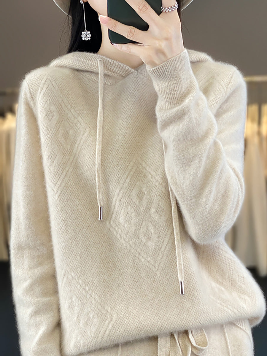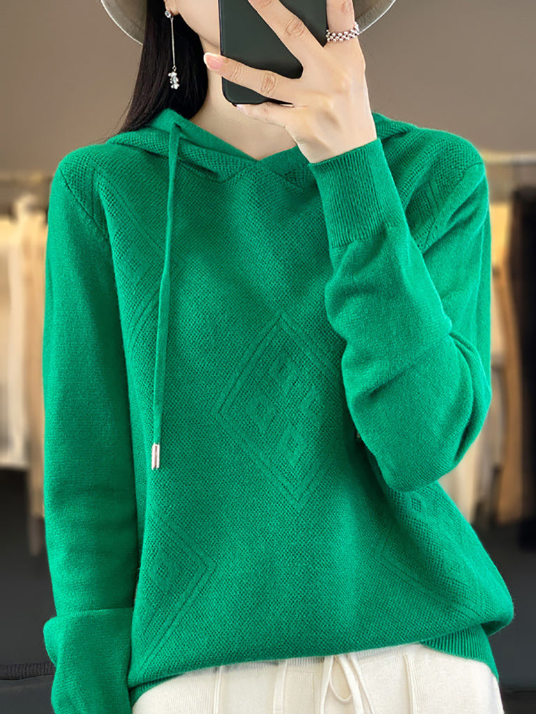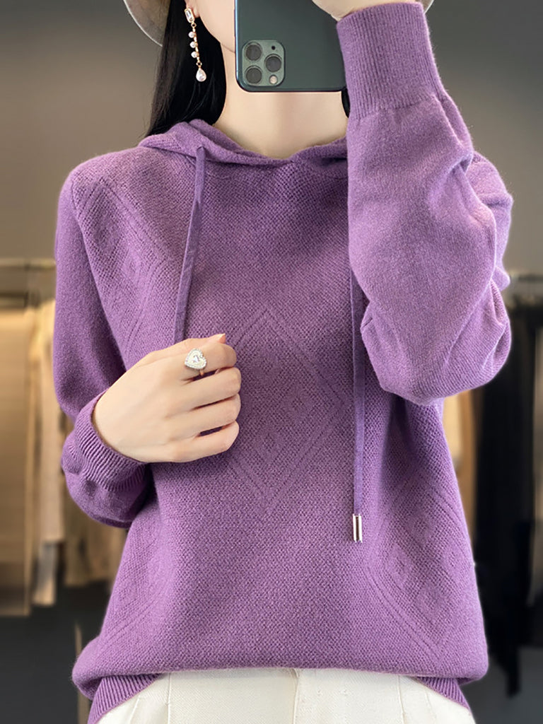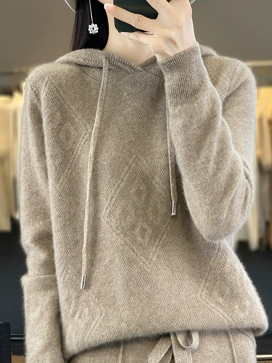 סוודר צמר סרוג עם קפוצ'ון ורוומבוס לחורף לנשים
