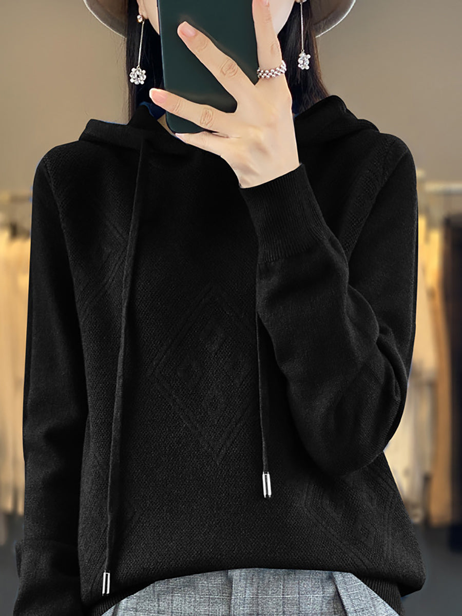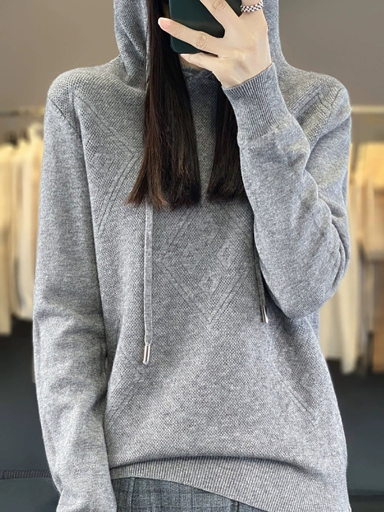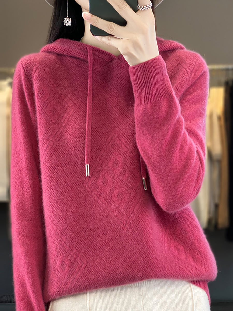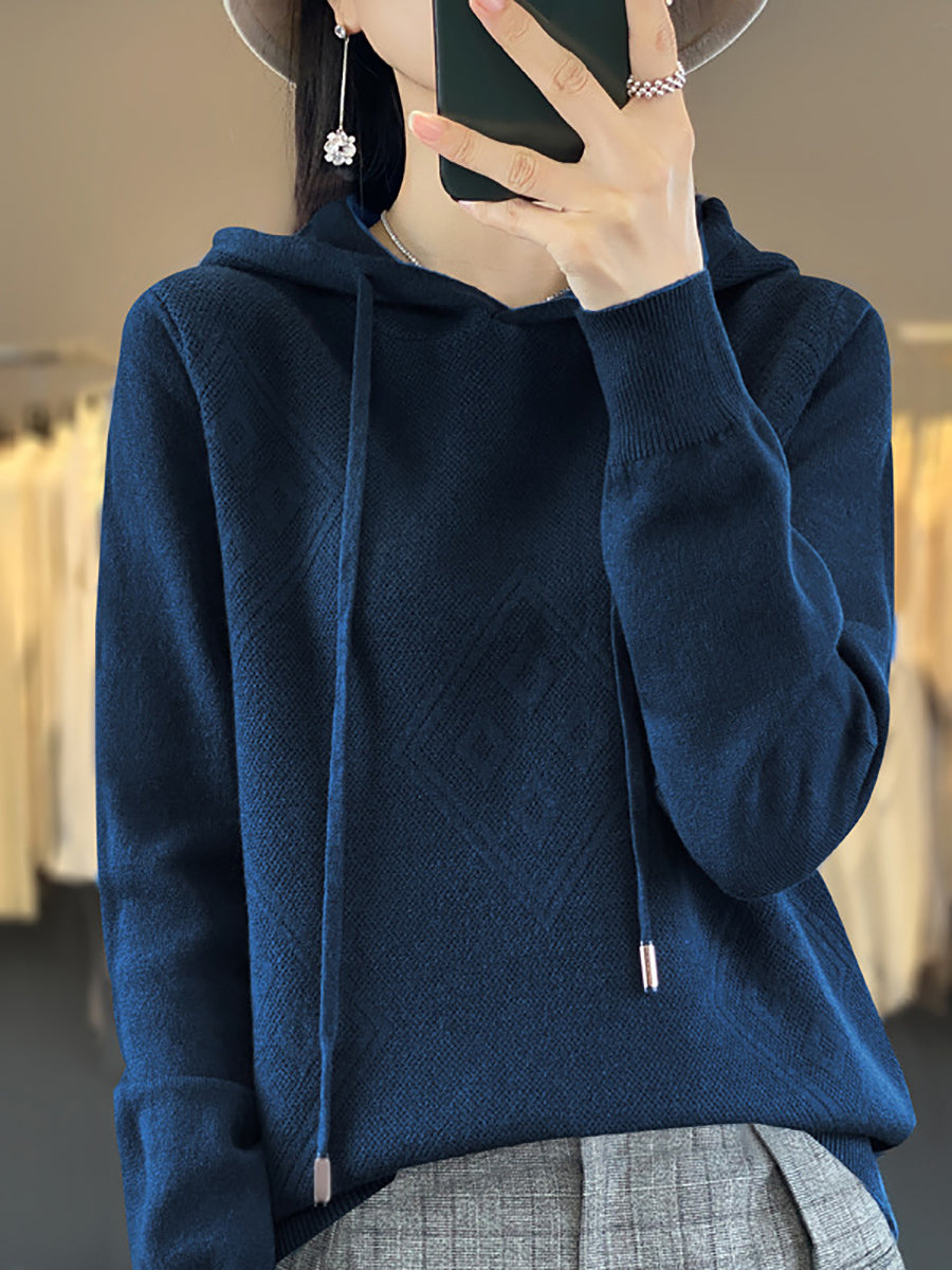 סוודר צמר סרוג עם קפוצ'ון ורוומבוס לחורף לנשים
