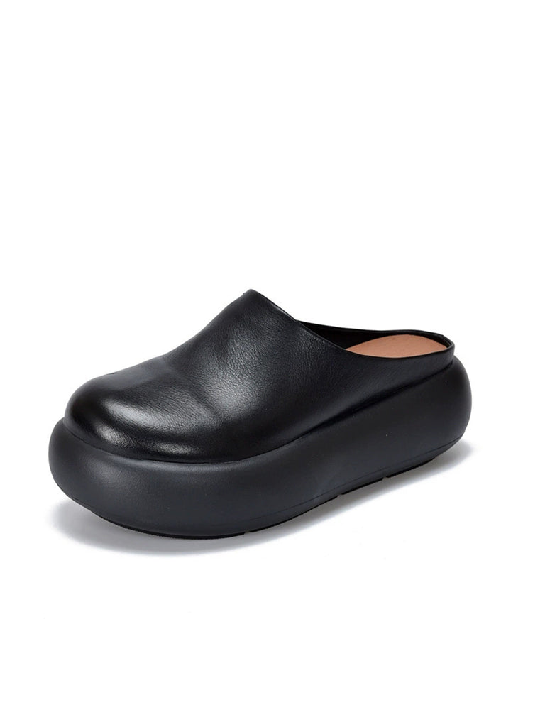 Women Summer Pure Color Soft Leather Platform Slippers