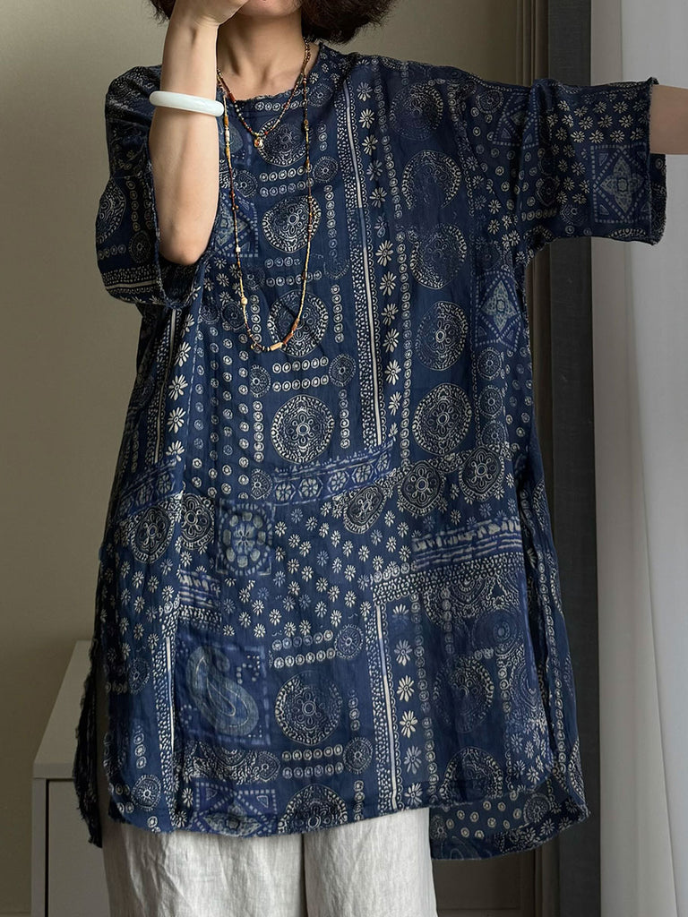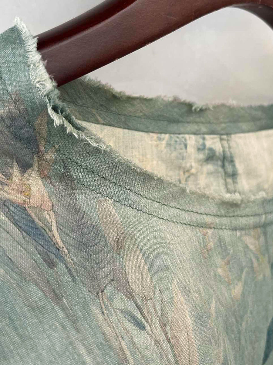 חולצת קיץ וינטג' פרחונית O-צוואר 100% ריימי לנשים
