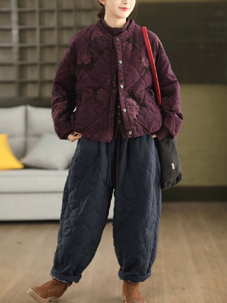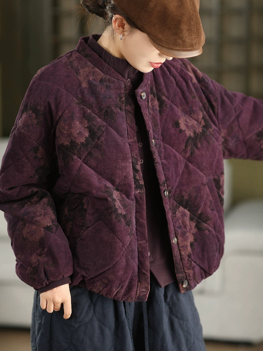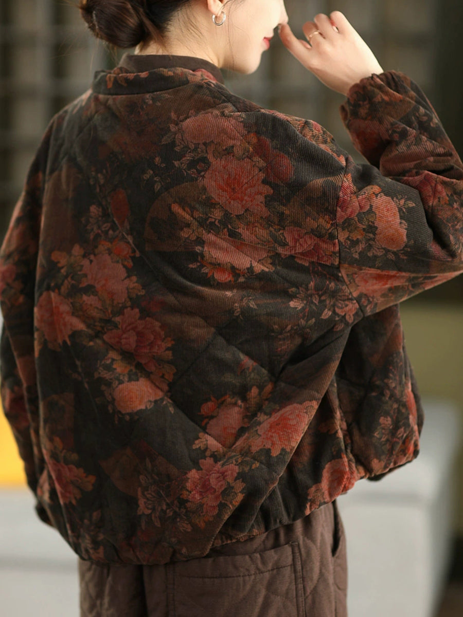 מעיל חורף וינטג' לנשים עם ריפוד 100% כותנה פרחוני